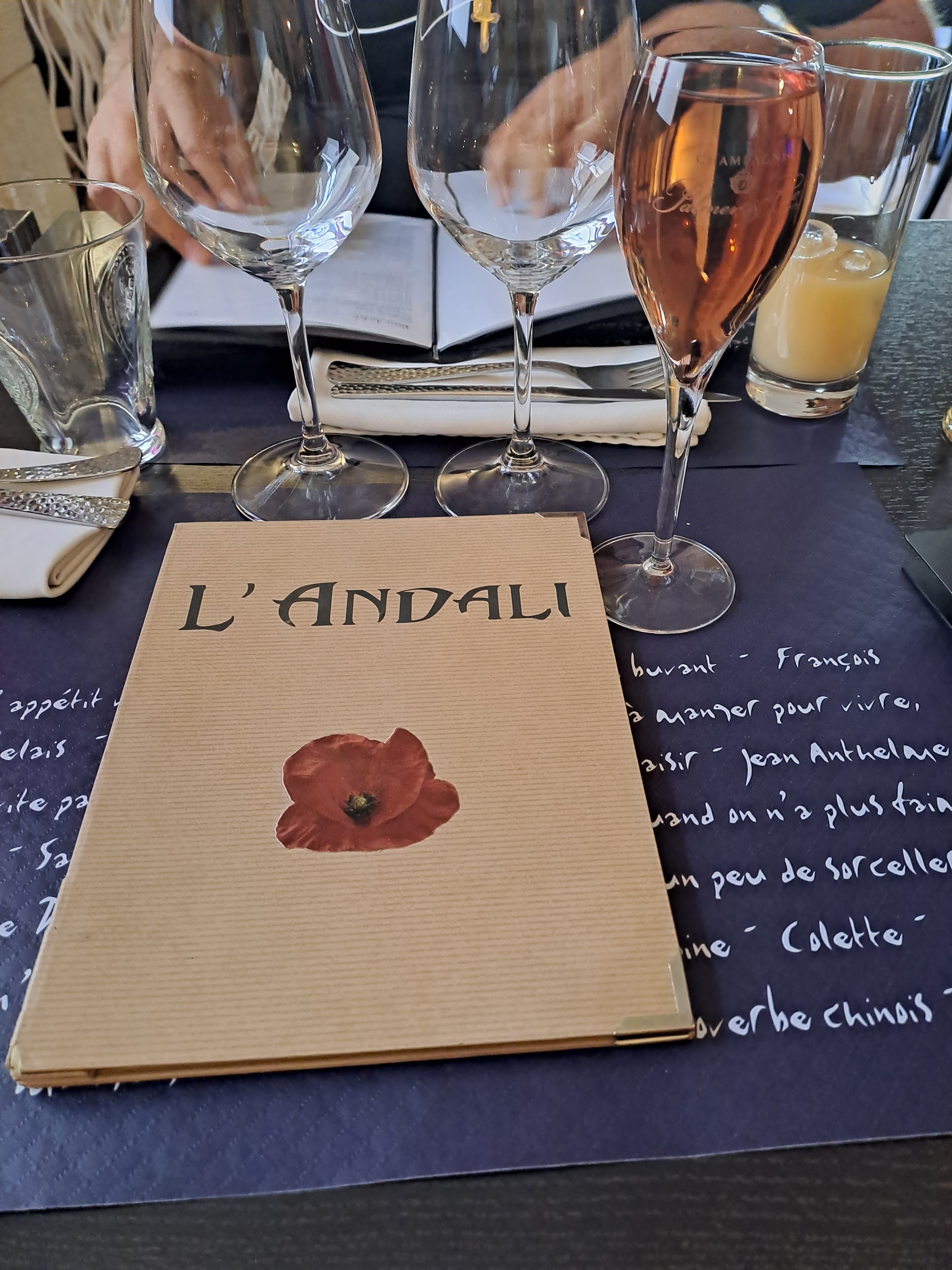 Superbe expérience à L'Andali 2 soirs de suite. Les plats sont bien presentés, un régal. Un très bon Chablis au verre aussi. Menu a 34e. Top