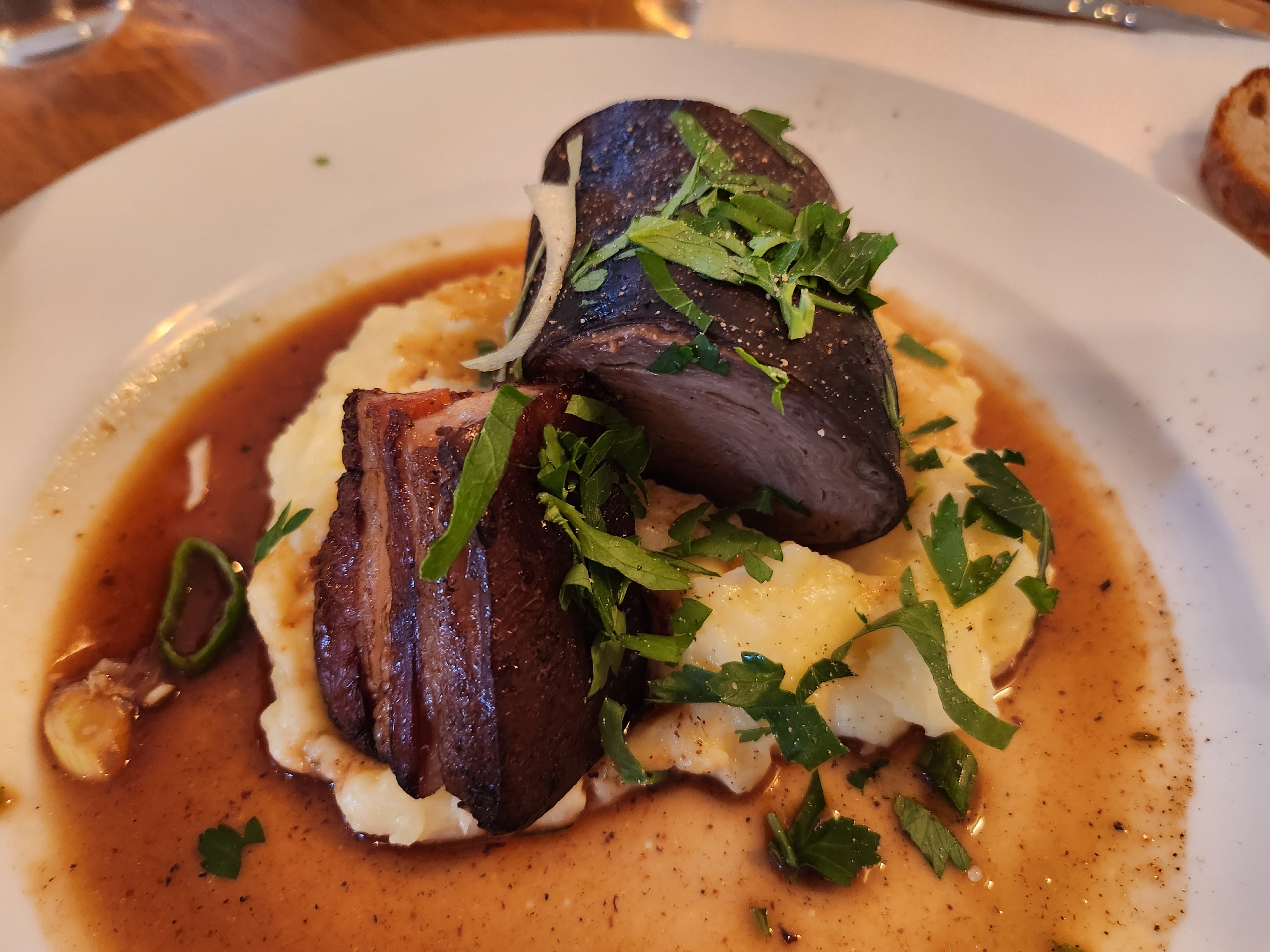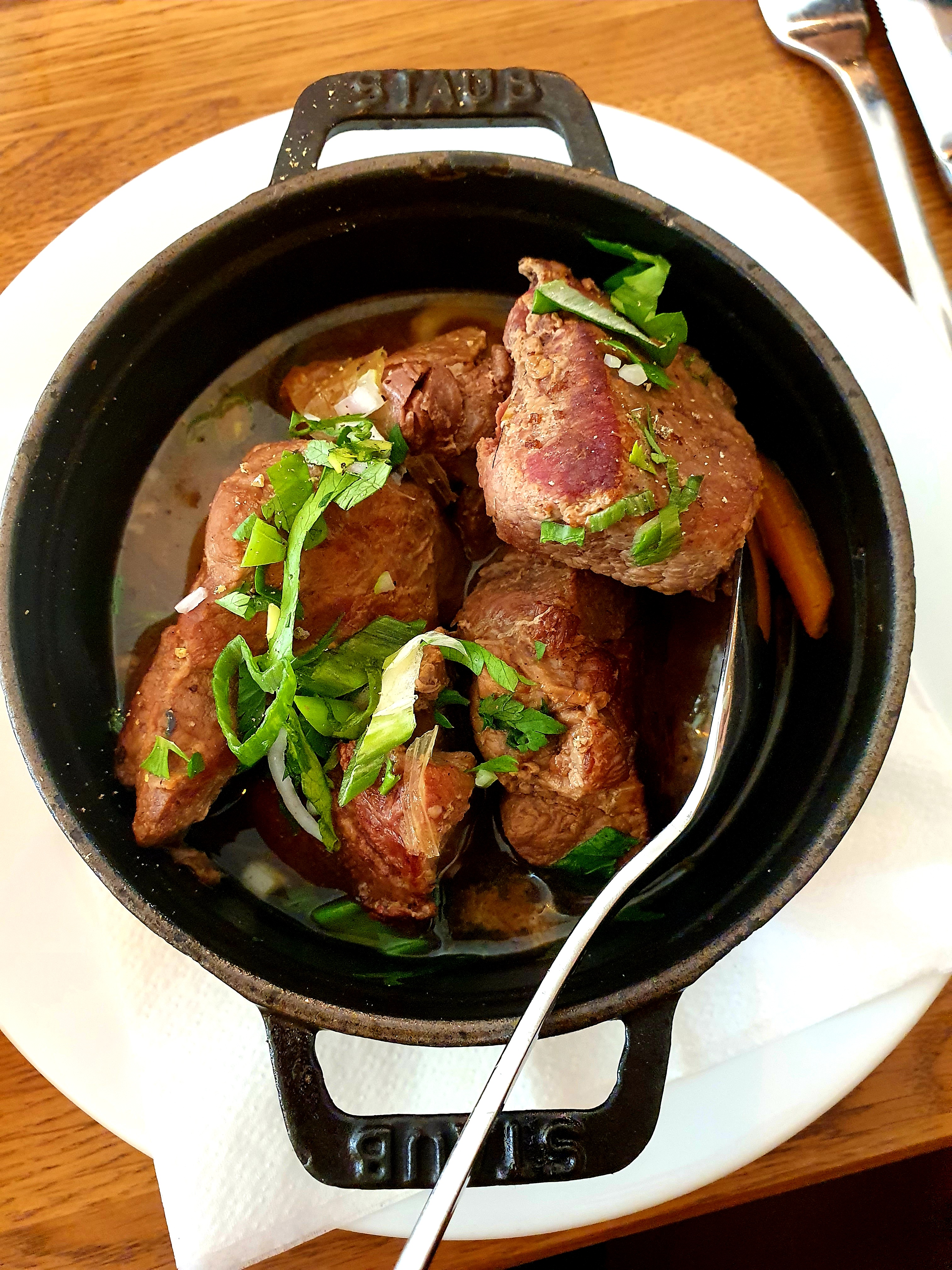 J'ai ADORE! Le veau tendre, pomme de terre au gratin, le dessert (kouign amann) un délice!... Serveuse agréable et personnel sympa. Un peu d'attente mais on était une table de 10. Ça valait le coup...Je recommande. Merci!🙏🏽