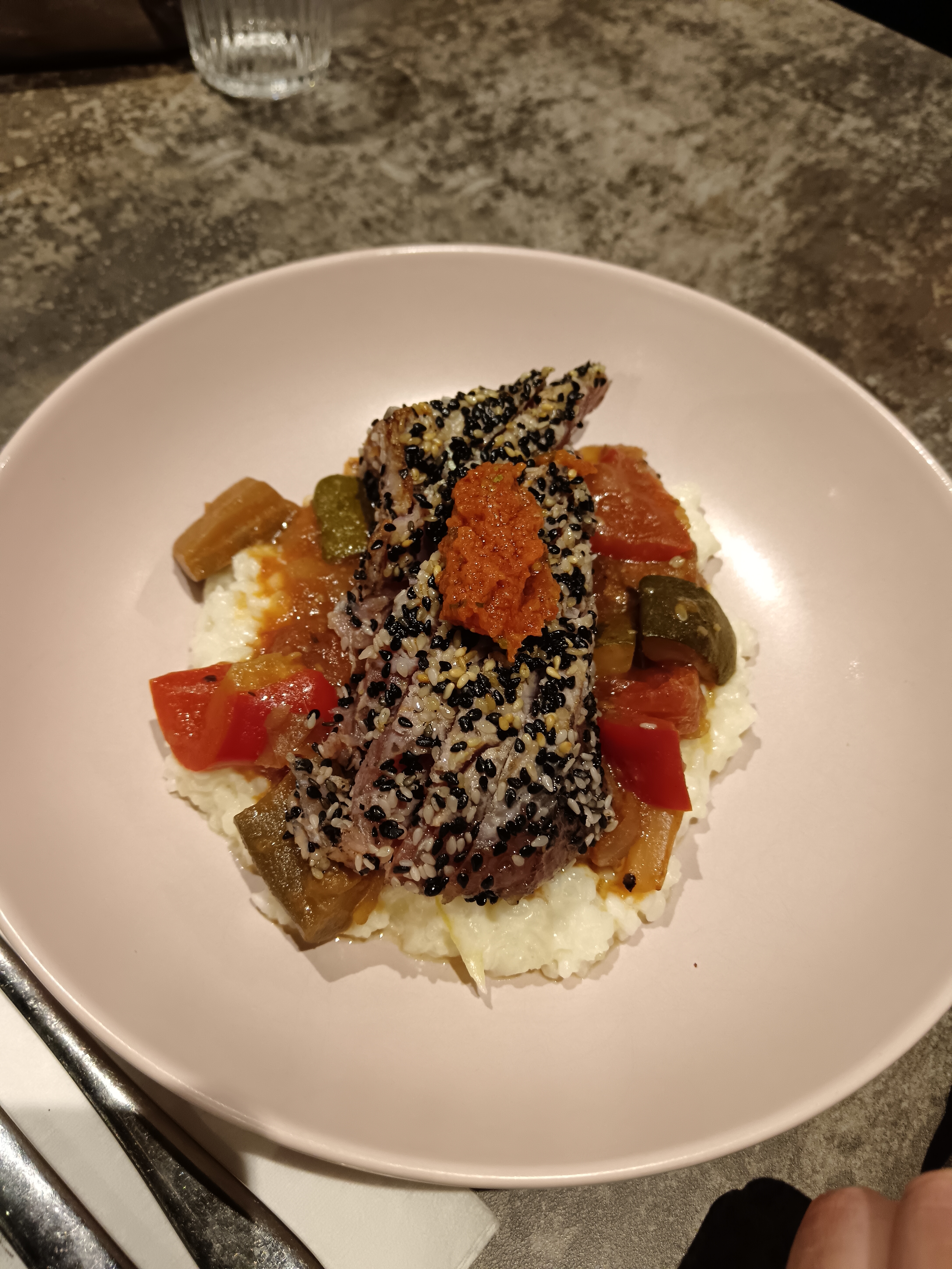 Petit raté ce jour là En effet le poisson du jour est arrivé quasi cru dans l’assiette , très vite rectifié. Premier fois que ça arrive, pourtant on y vient régulièrement. On a tous droit à l’erreur… on n’en tiendra pas rigueur😉
