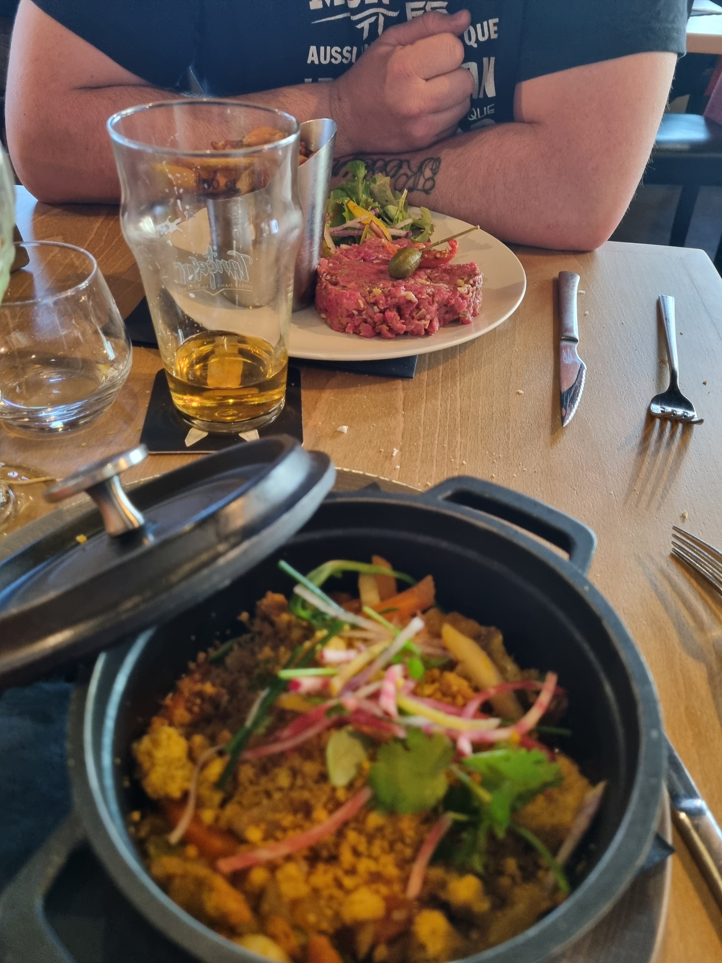 Très bon repas , service et personnel agréable ! Je recommande ce restaurant 👍 tartare au couteau juste excellent 😋