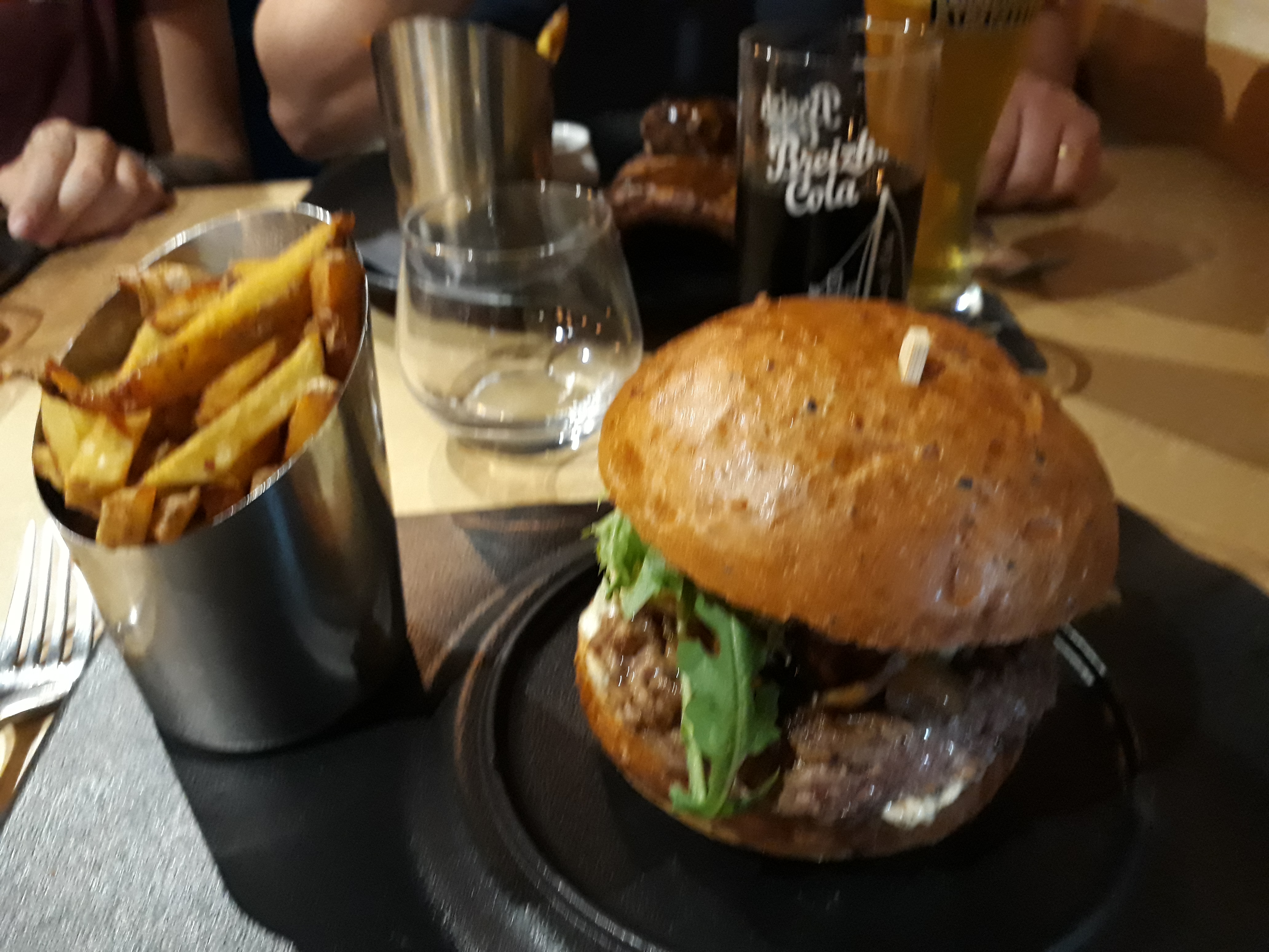 L'Accueil est chaleureux, La decoration est super sympa un mélange de matériaux brut qui font très bien ensemble et me plaise. J ai pris un hamburger ainsi qu une glace. Et franchement c etait juste délicieux, et savoureux. Merci pour votre accueil sympathique