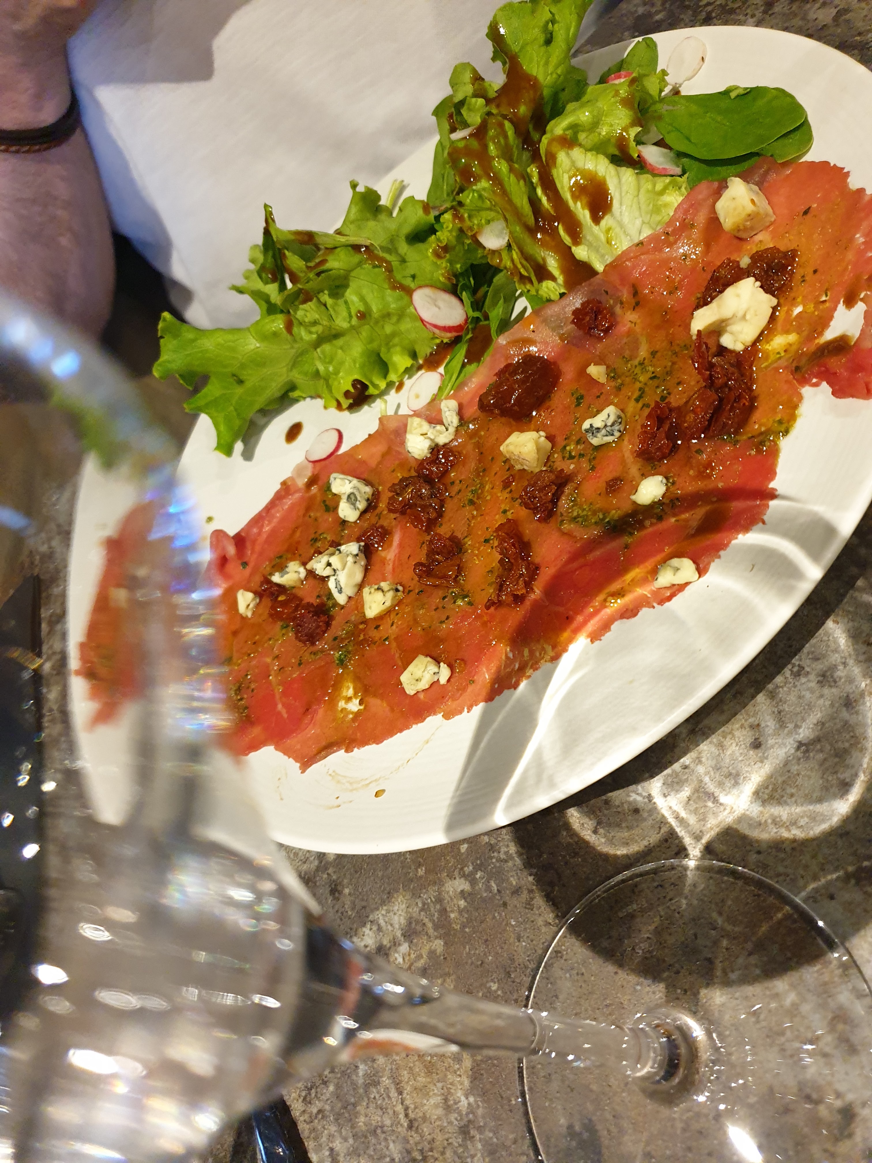 Cela fait plusieurs fois que je me rends dans cet endroit extrêmement accueillant et chaleureux, avec toujours un service personnalisé et de qualité, le personnel est très bien formé et sympathique. Le restaurant est très propre et soigneusement décoré. Même les serviettes en papier sont d’une très bonne qualité. Cependant, je pense que les pâtes « façon carbonara » actuellement à la carte sont à revoir… la charcuterie est d’une qualité indéniable. En revanche les pâtes ne sont pas salées, la crème insipide et fade, le parmesan ne fond pas et aucun supplément de fromage n’est apporté à table. C’est dommage, mais je reviendrai goûter les autres plats à la carte !!