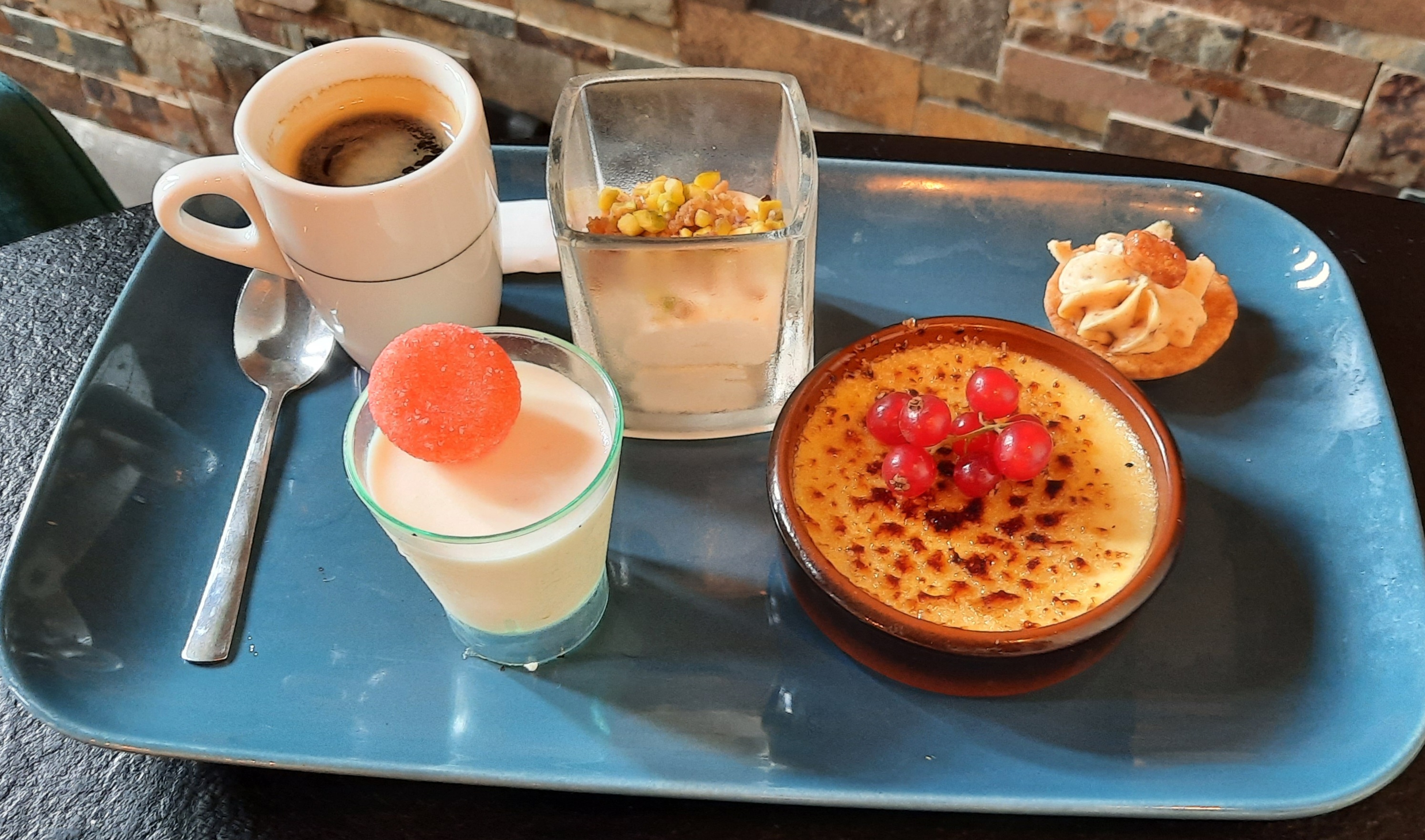 Déçue de cette deuxième expérience. Le premier dîner avait ravi mes papilles c'est pour cela que j'y suis retournée les yeux fermés avec une amie. Le déjeuner était bon, sans plus et pas très copieux. Je ne recommande absolument pas le café gourmand. Le brownie n'était absolument pas cuit, la crème pistache n'en avait pas du tout le goût, et l'autre pâtisserie était à moitié décongelée. Pour 60€ à deux personnes on s'attend quand même à un autre niveau.