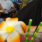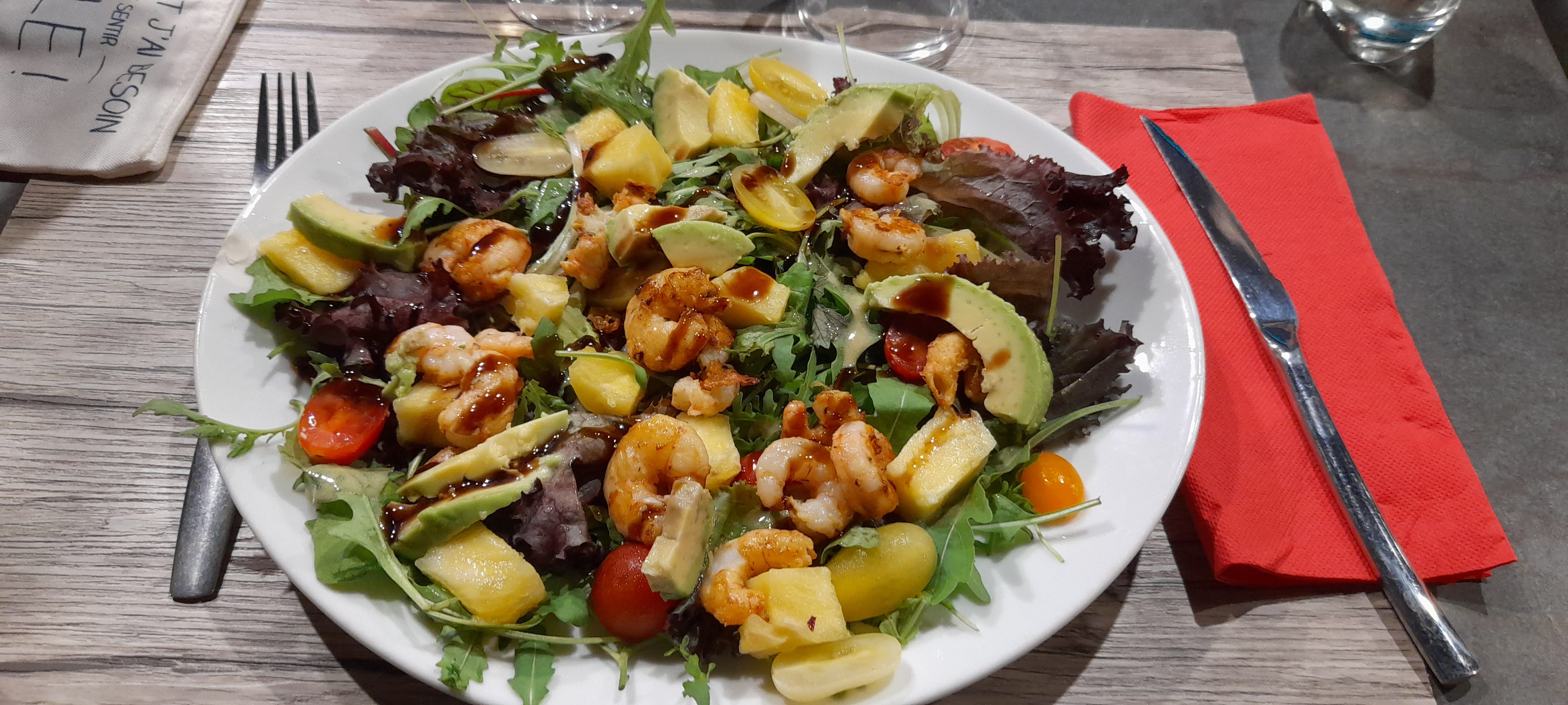 Un très bon repas entre amis 1 salade catalane 2 salade exotique 3 Filet de merlu sauce citronnée 4 Gambas flambées