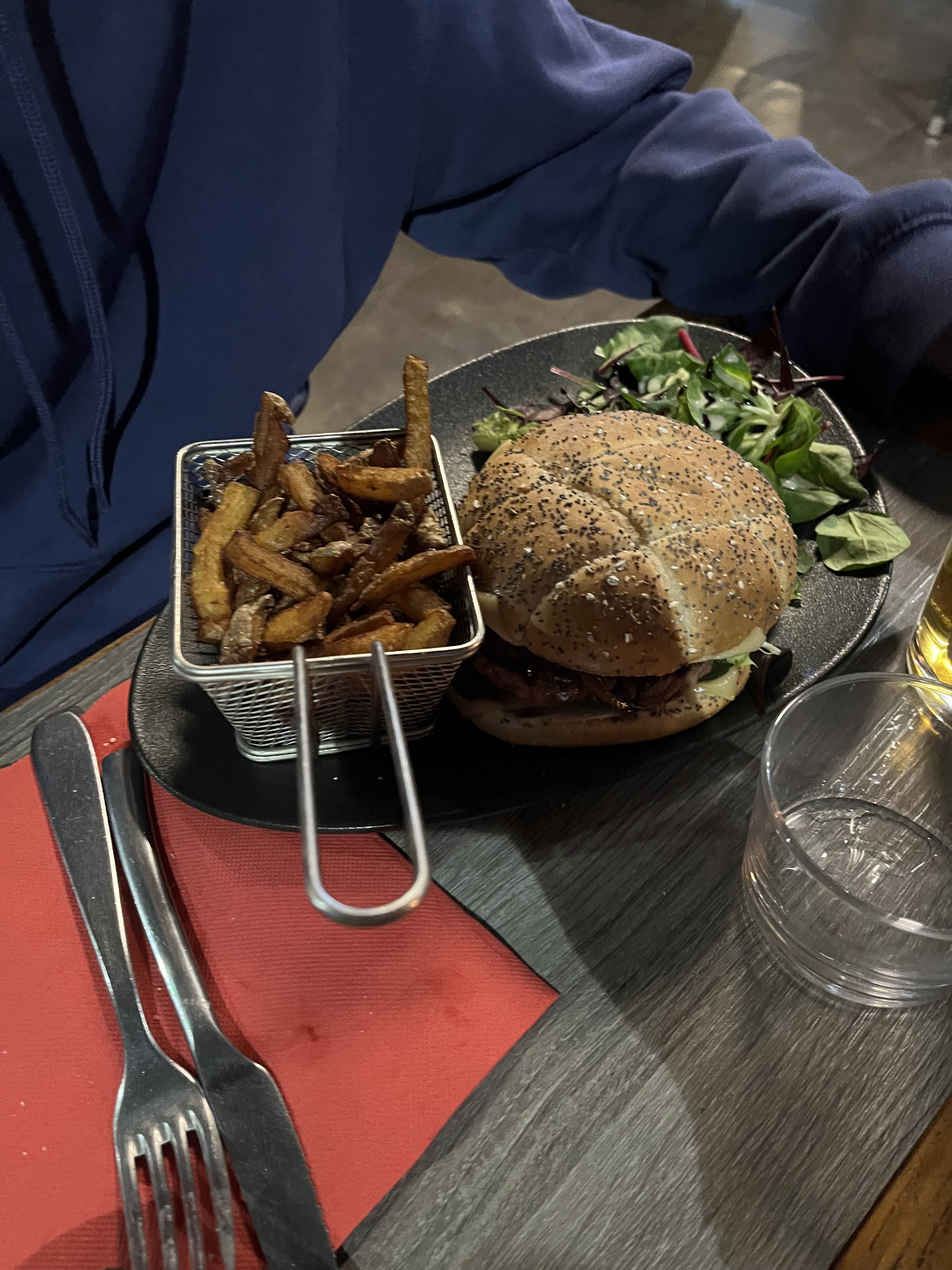 Serveuse gentille Mais le reste.. plats très longs à arriver (quasi 1h d'attente), frites froides, fromage pas fondu dans le burger et surtout c'est cher pour ce que c'est..