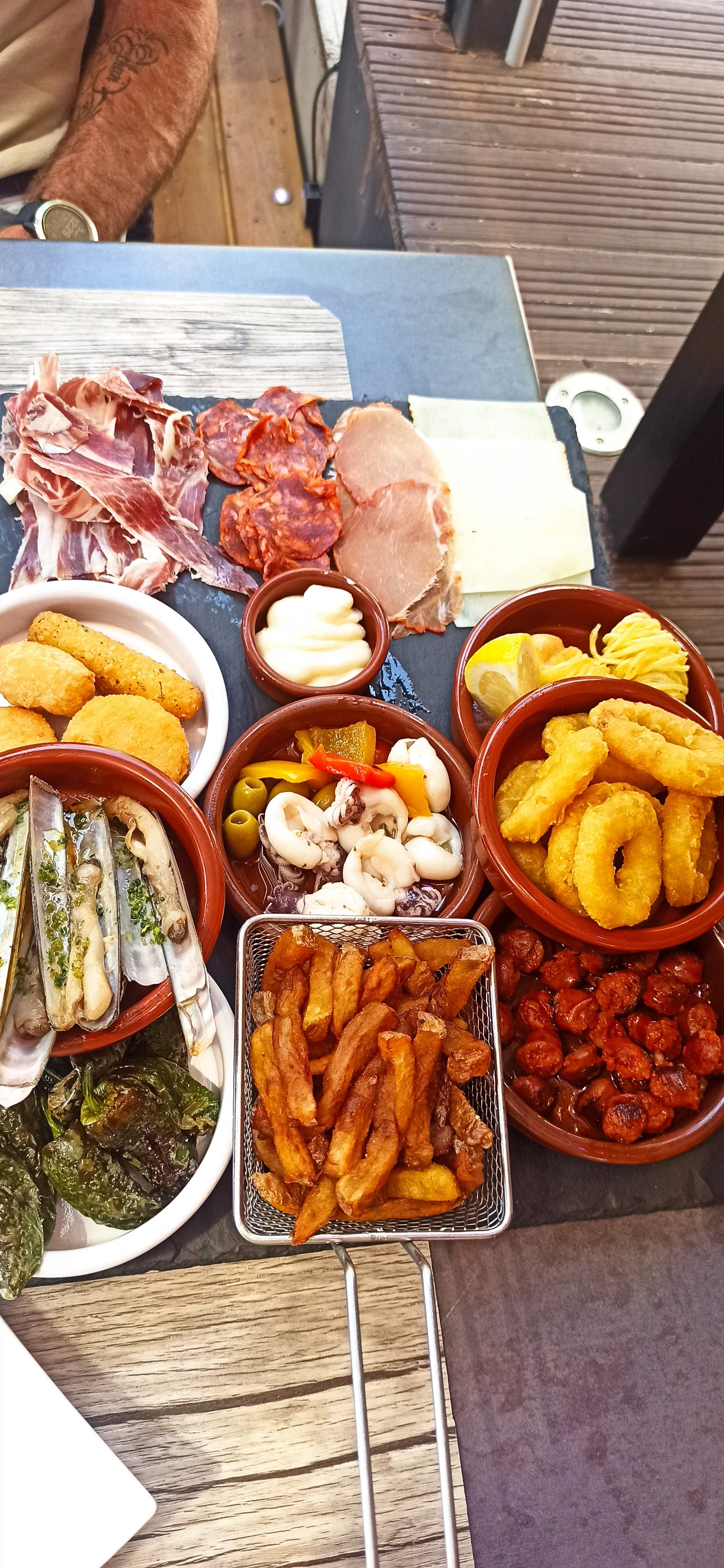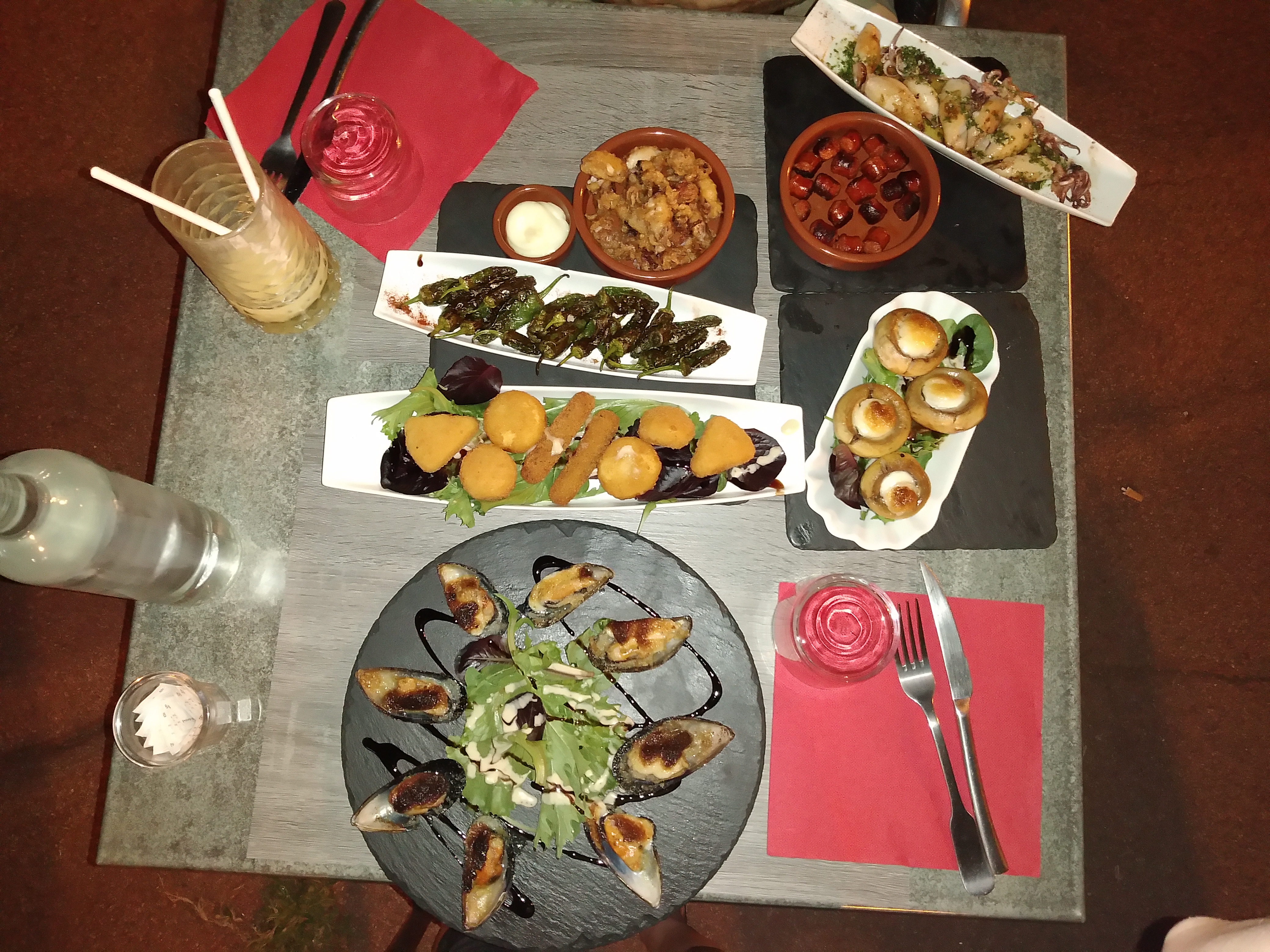 Super restaurant a tapas on connaissait pas ,nous y retournerons sans problème, prix abordable, seul petit bémol pour les moules à l'aïoli un peux trop grasse à mon goût, mais c'est mon avis personnel, tout le reste au top ,serveur très professionnel et très souriant, pensez à réserver pour une table en extérieur