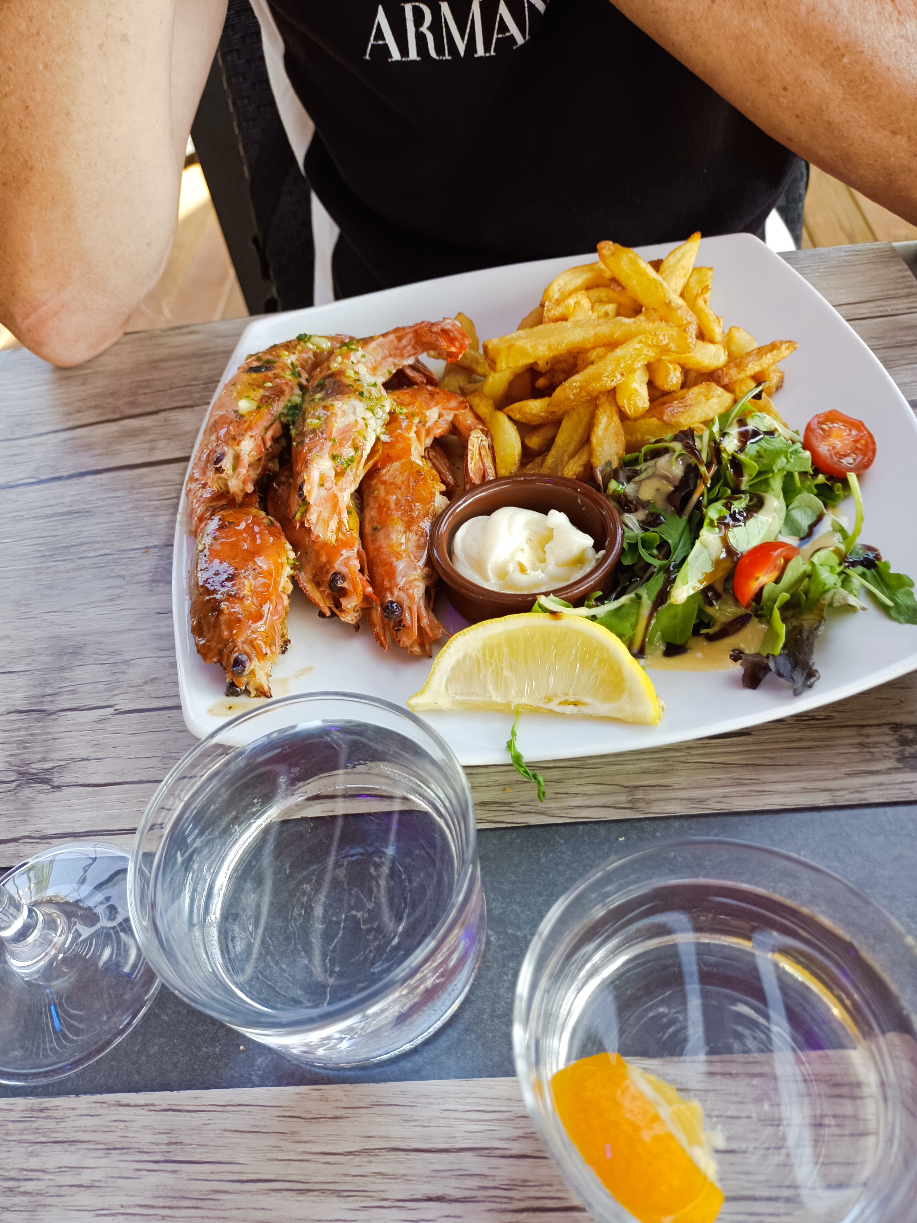 Un moment qui aurait pu être agréable si il n y avait pas 1h30 d attente pour avoir le plat .un problème certain au niveau de la cuisine c est sur mauvaise organisation ou manque de personnel .Le jeune serveur ne savait pas quoi nous dire il était mal à l aise pour nous . Et les vacanciers sont pas tous là. Bon courage pour la saison. Les gambas étaient fraîches et bonnes ça console. Bon été à tous.