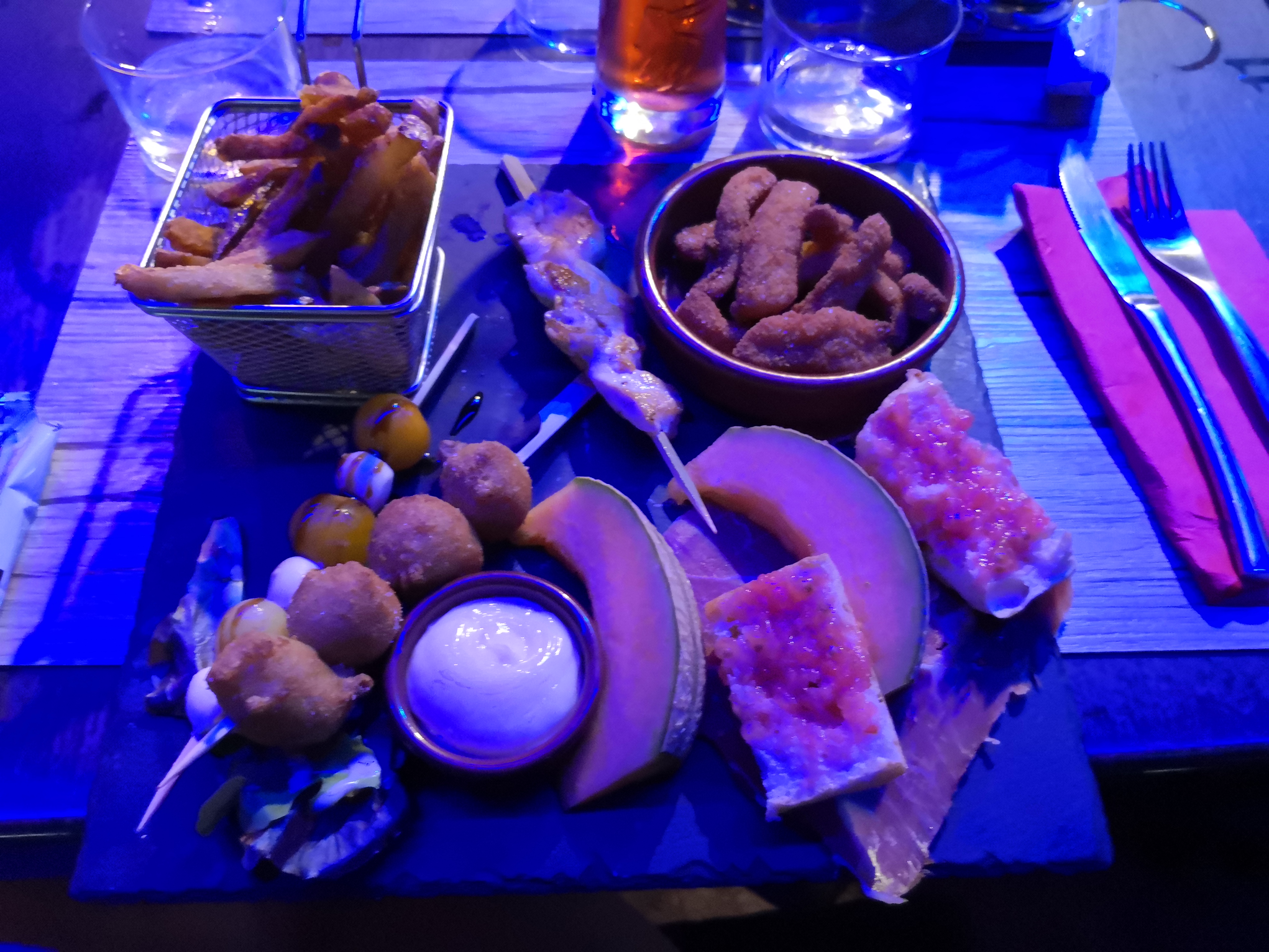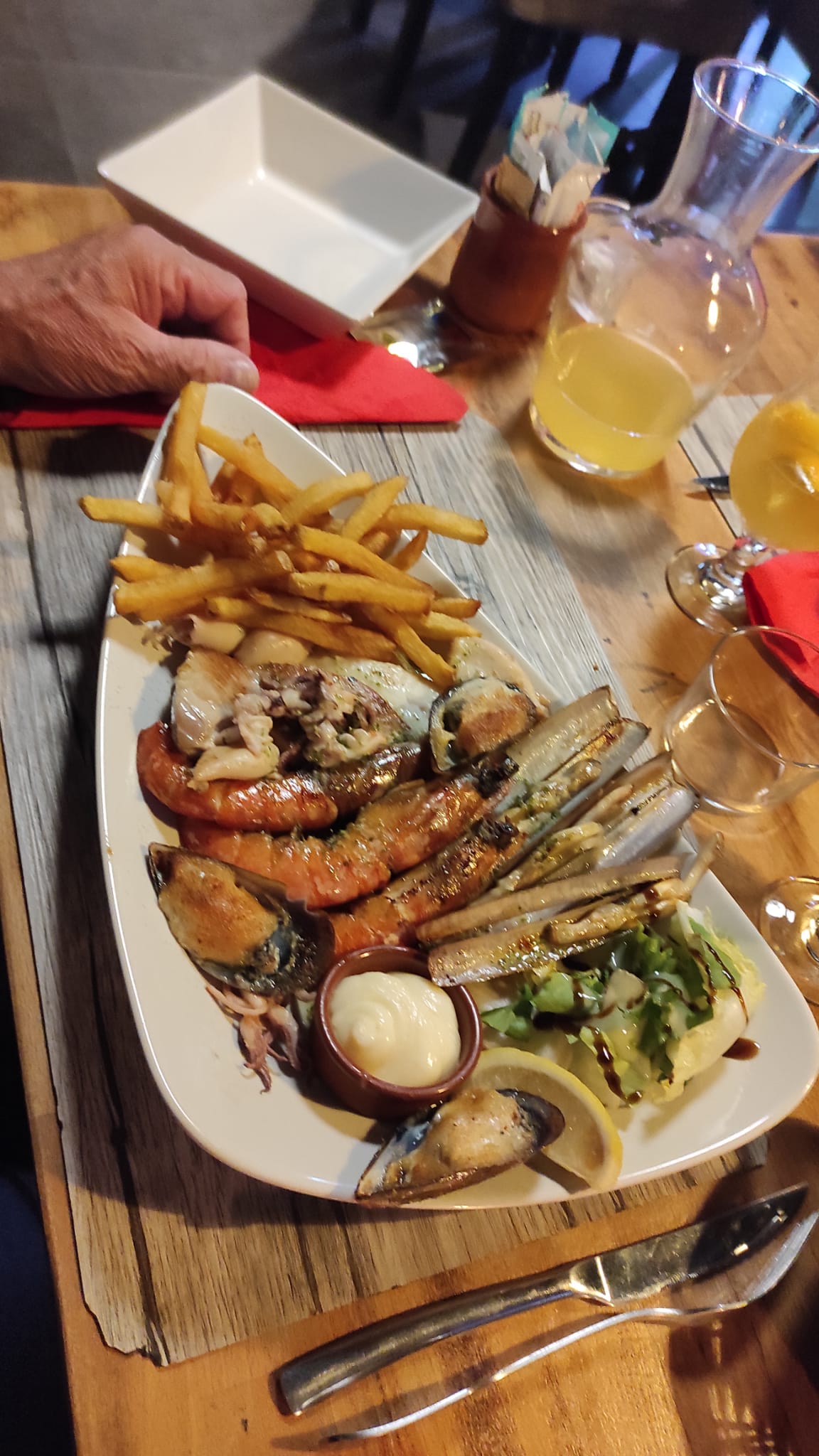J'étais invitée apéros rien à dire ensuite très long pour la commande et très déçue par l'assiette de tapas moules ailoli c'était de la mayonnaise ! L'assiette de couteaux rien à dire le serveur pas aimable nous rapportant 2 moules pas gratinées sauce soit disant ailoli non et non ! Vexée et déçue dommage.