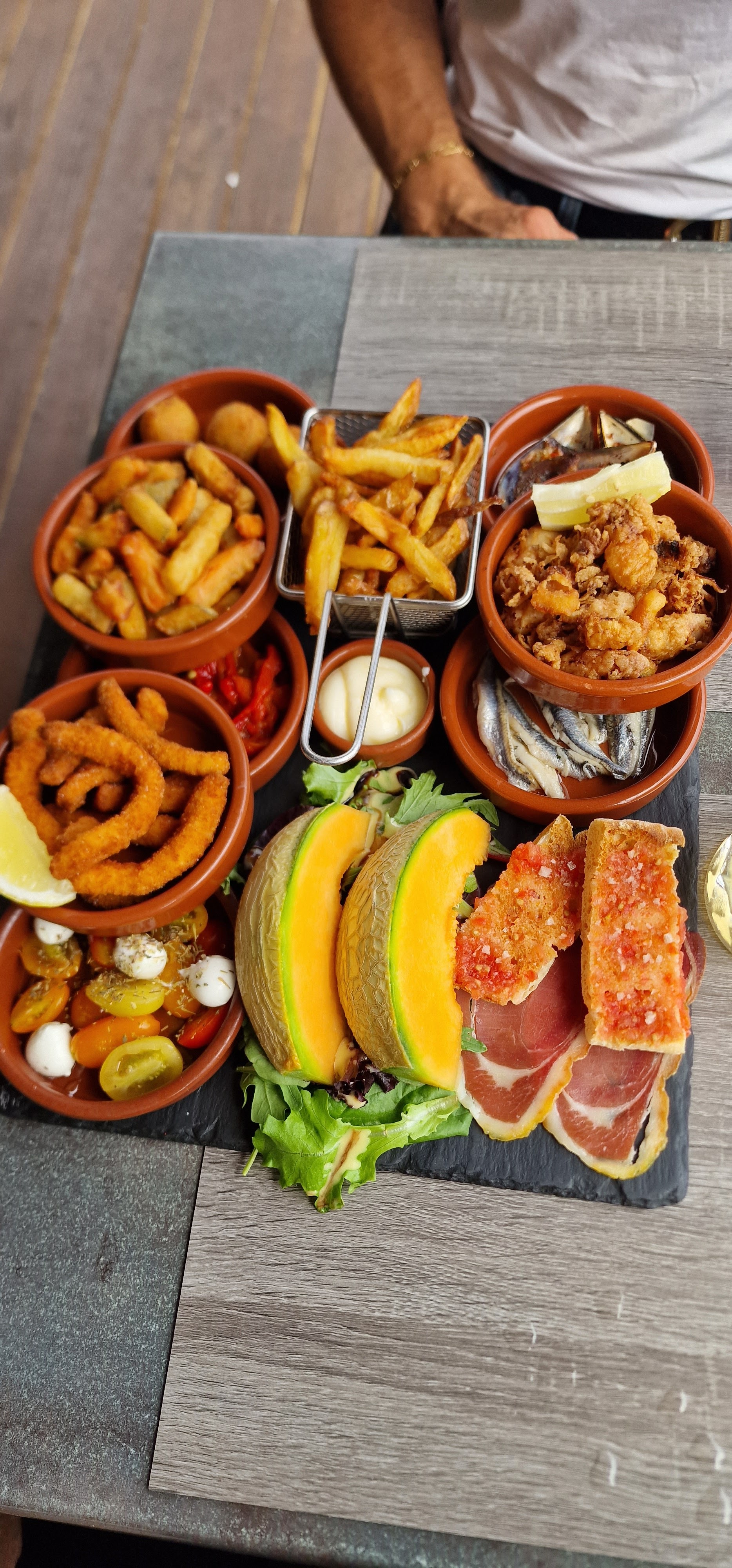 Très bon restaurant pour les tapas, large choix de planche et antipasti ! Les cocktail sont bon et l'ambiance agréable. Parfois beaucoup d'attente en pleine saison même en ayant réservé... Quelque petite déception sur le service car suite à plusieurs demandes on nous a un peu oublier(pas de couteau, pas de pain, pas d'eau, demande d'un pichet de vin qui n'est jamais arrivé...) Je recommande tout de même se sont les allez-à de la saison 😁