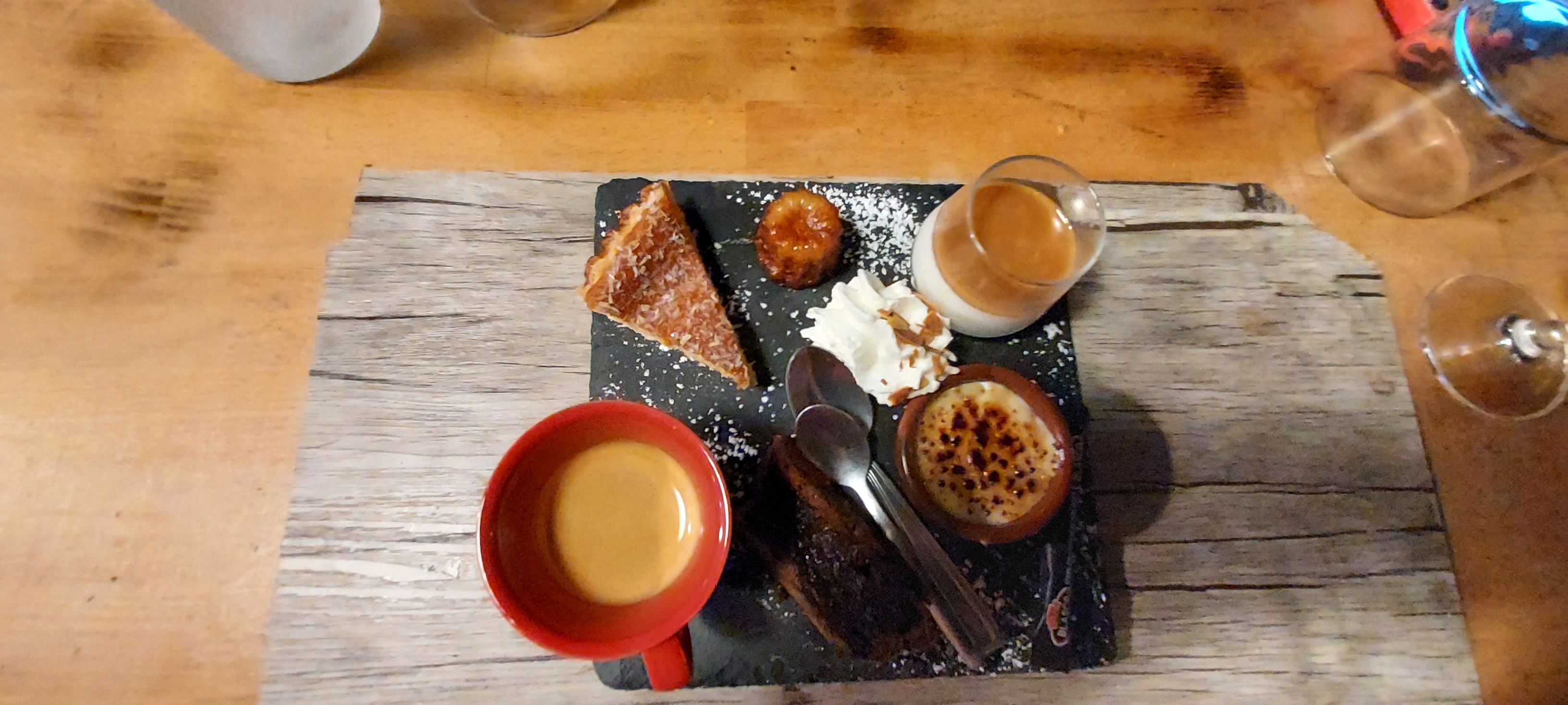 Ces tapas !!! Un régal, de plus un service rapide et efficace . Un café gourmand partagé car il y en avait largement assez pour 2 . Je recommande +++ .