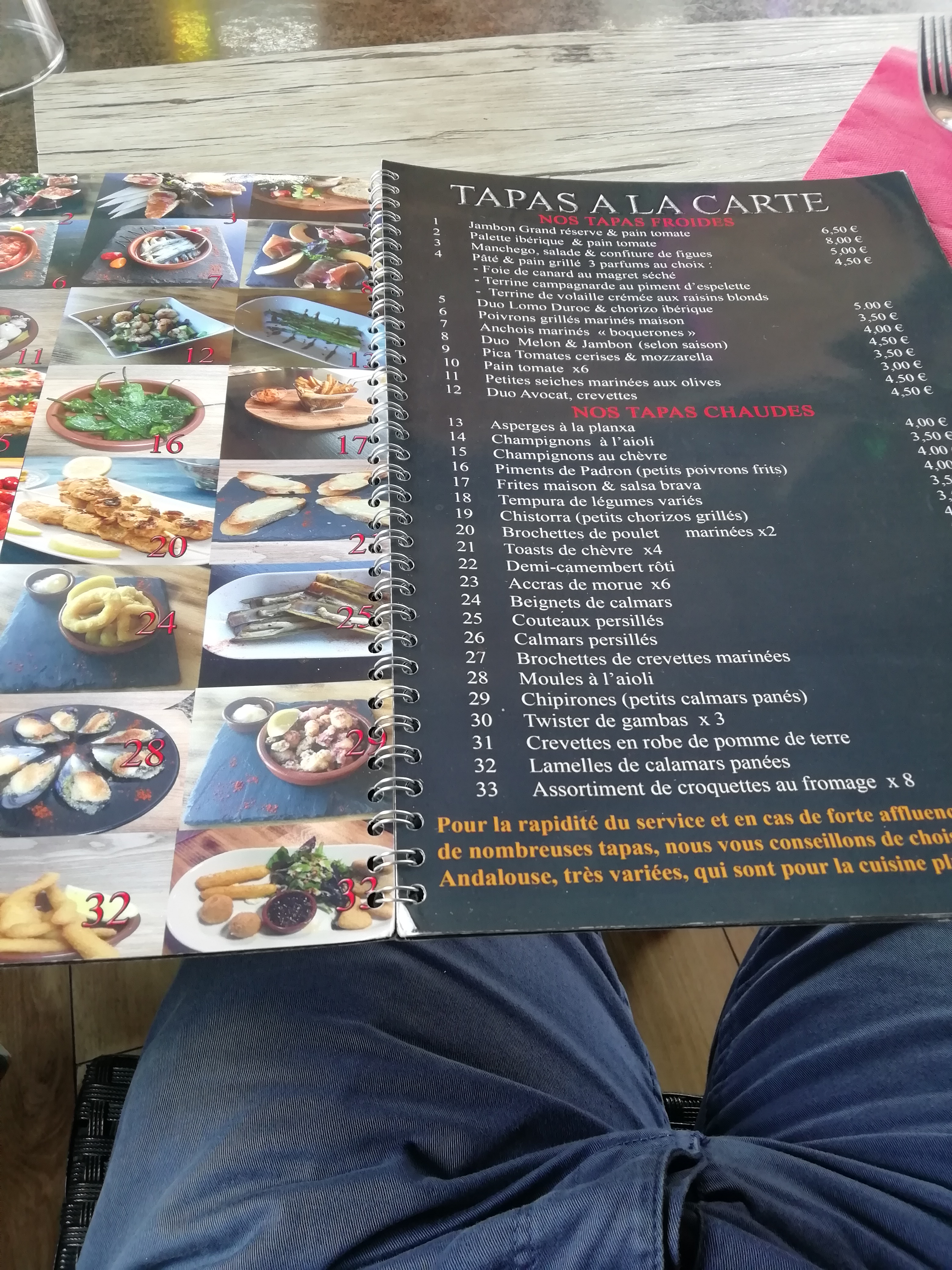 Vraiment de très bons produits. Pas cher. Pas de menu ce soir la par contre mais bon avec des tapas, pas besoin de menus!!! Un petit clin d’œil au serveur qui a effectué un bon service!!