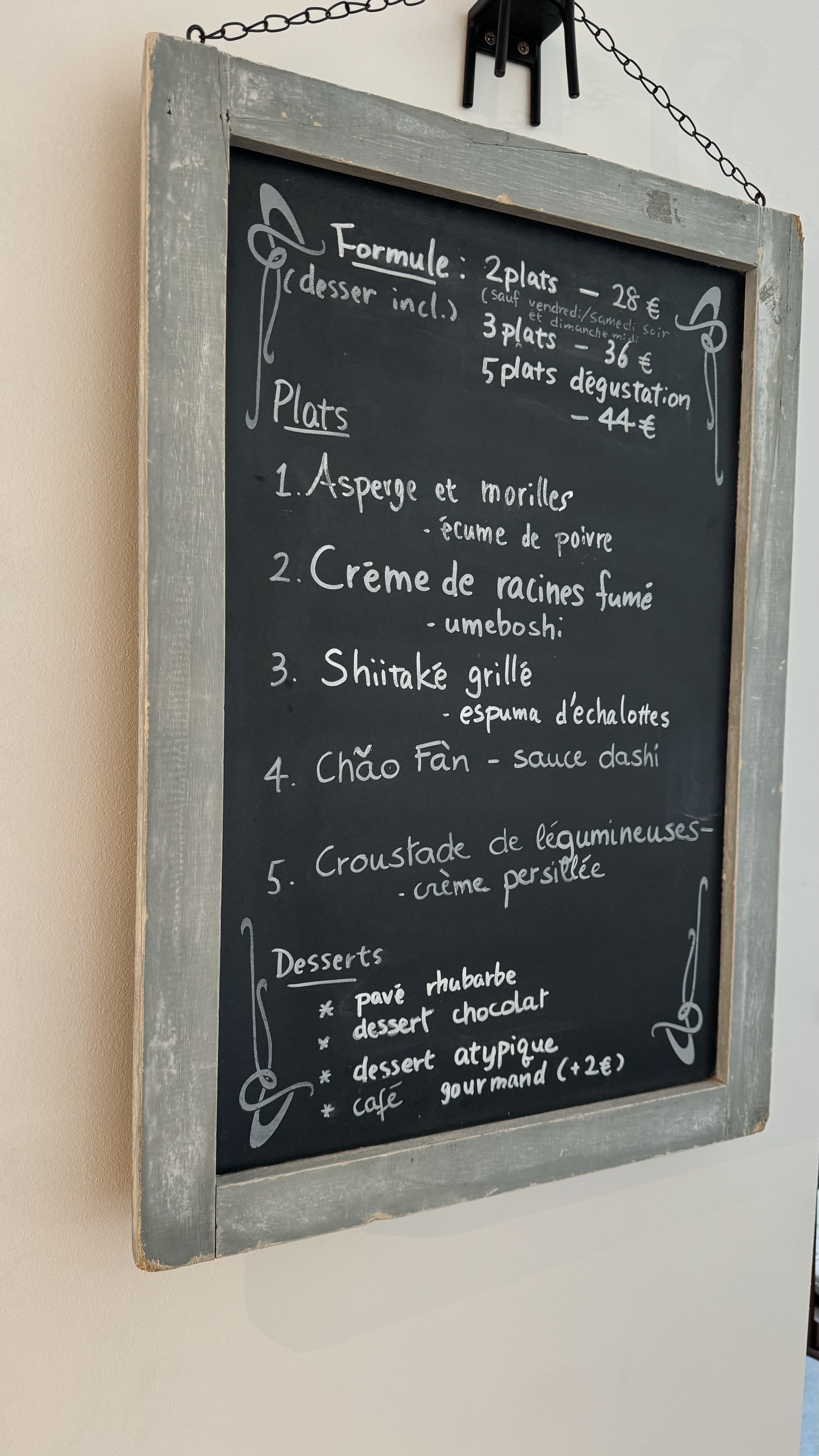 Cuisine végétalienne locale, esthétique et de qualité, digne d'un grand chef, à déguster pour découvrir de nouvelles saveurs. Formules 2, 3, 4 ou 5 plats avec un dessert au choix. Dommage que le service soit si lent, aussi bien pour la prise de commande que pour apporter les plats, ce qui fait que le repas avoisine les 3 h.