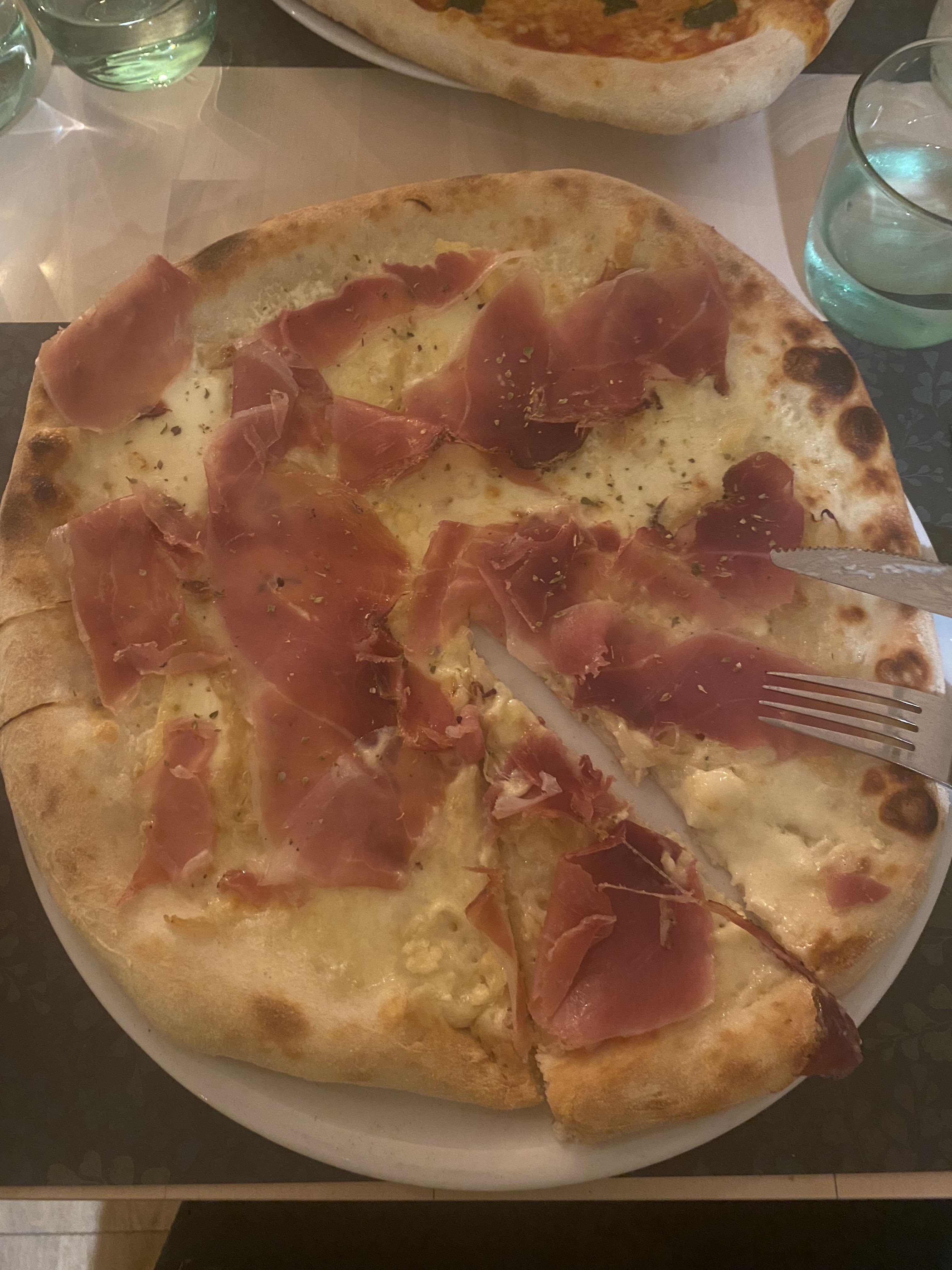 Très bonnes pizzas qui ont égayé notre arrivée après 7h de route.