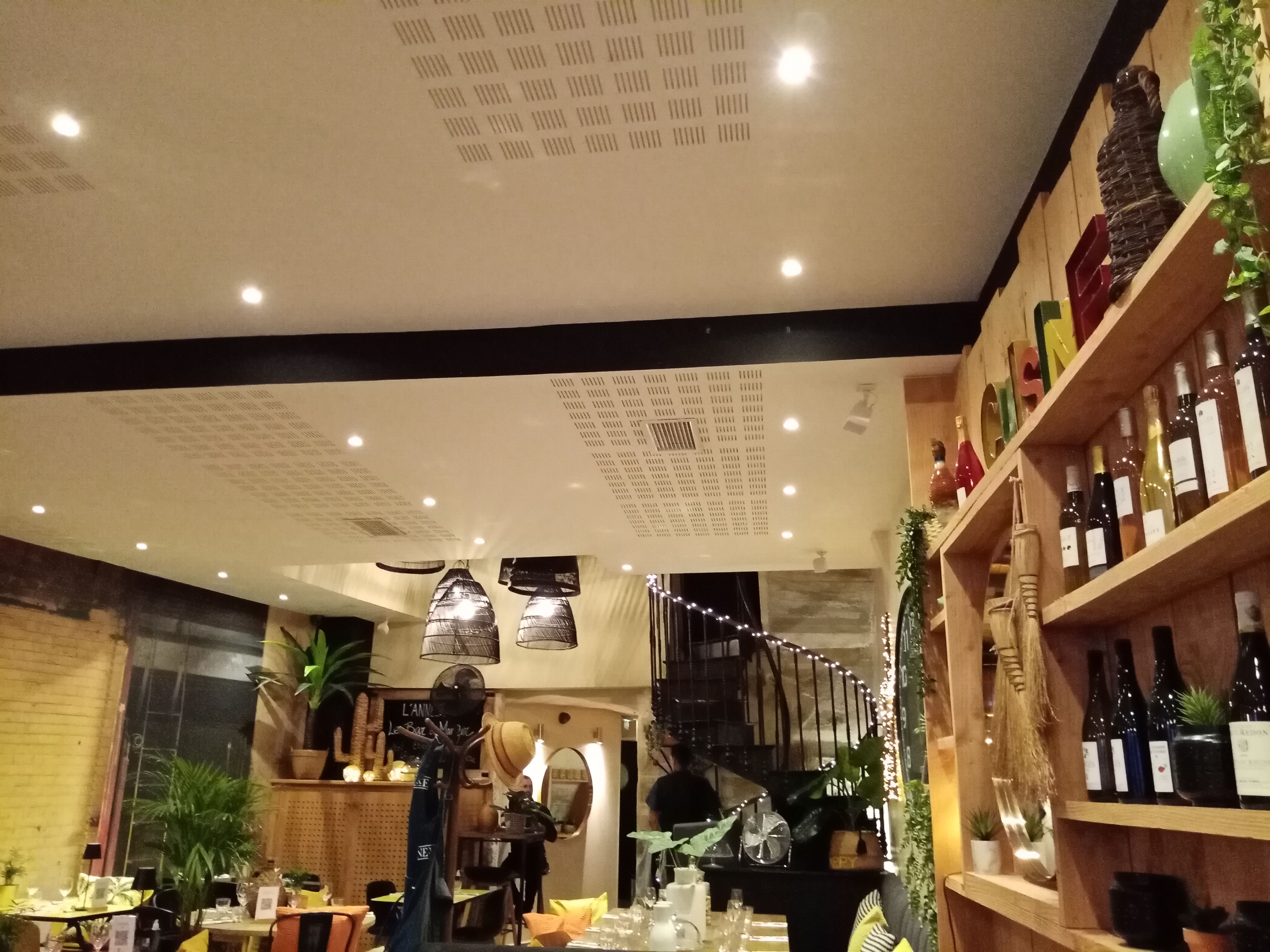 J'ai passé une soirée à ce restaurant, l'ambiance était conviviale et le restaurant est beau. La cuisine était bonne mais les plats étaient lent a arriver et la température des plats était moyenne. C'est plus un endroit pour se faire un apéro avec des amis qu'un diner en famille. I had dinner at this restaurant once, the ambiance was good and the restaurant is beautiful. The food was good but the service was slow and the food was getting cold. This place is more for a date than a family dinner.