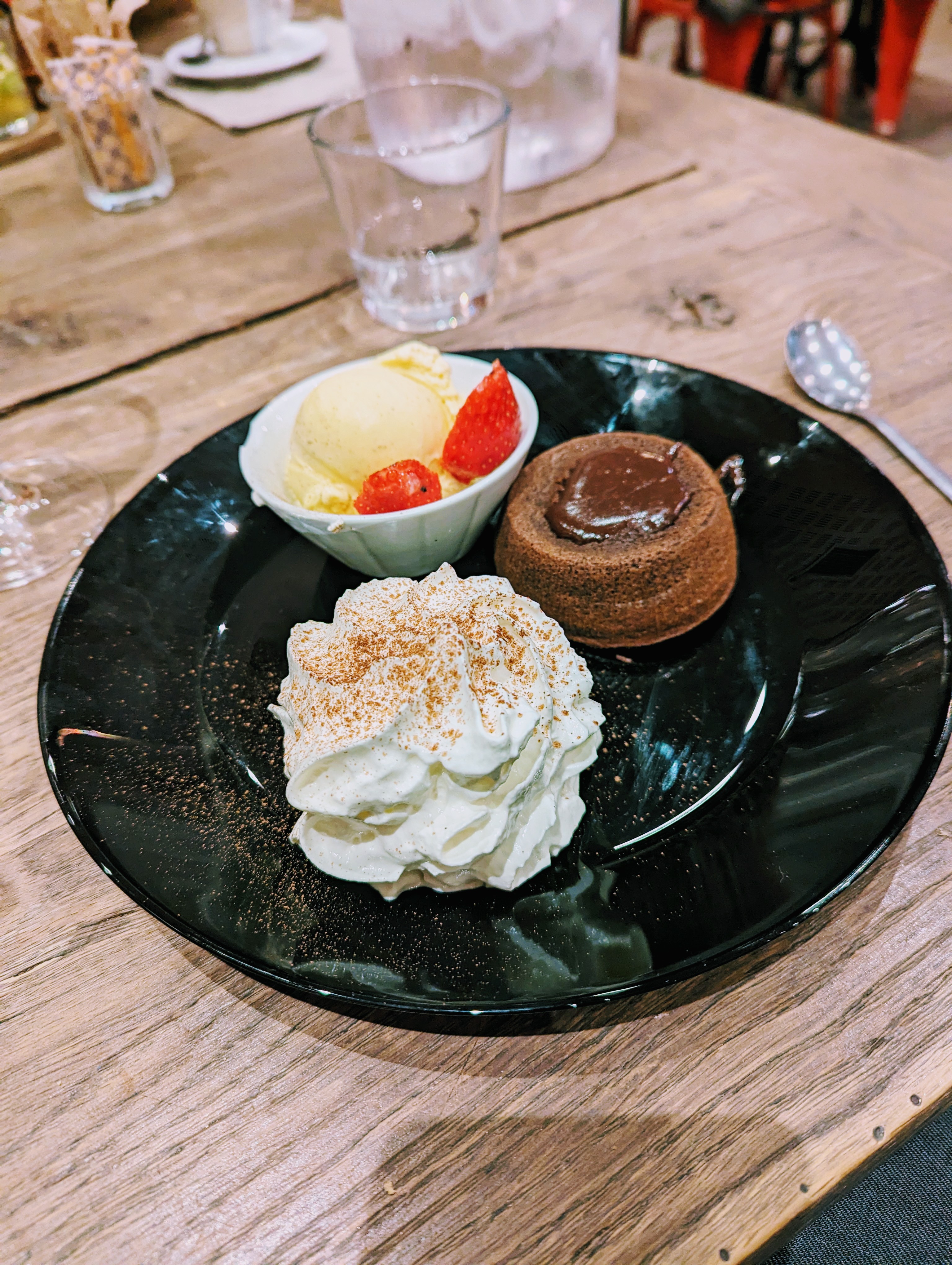 Accueil chaleureux, des plats frais et bien cuisinés. Un fondant au chocolat parfaitement coulant !!!
