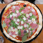 Heureux hasard. Pizza don bosco délicate et fraîche. Pâte assez fine une buratta avec jambon cru..Parfait Nous en avons eu pour notre fain et notre argent