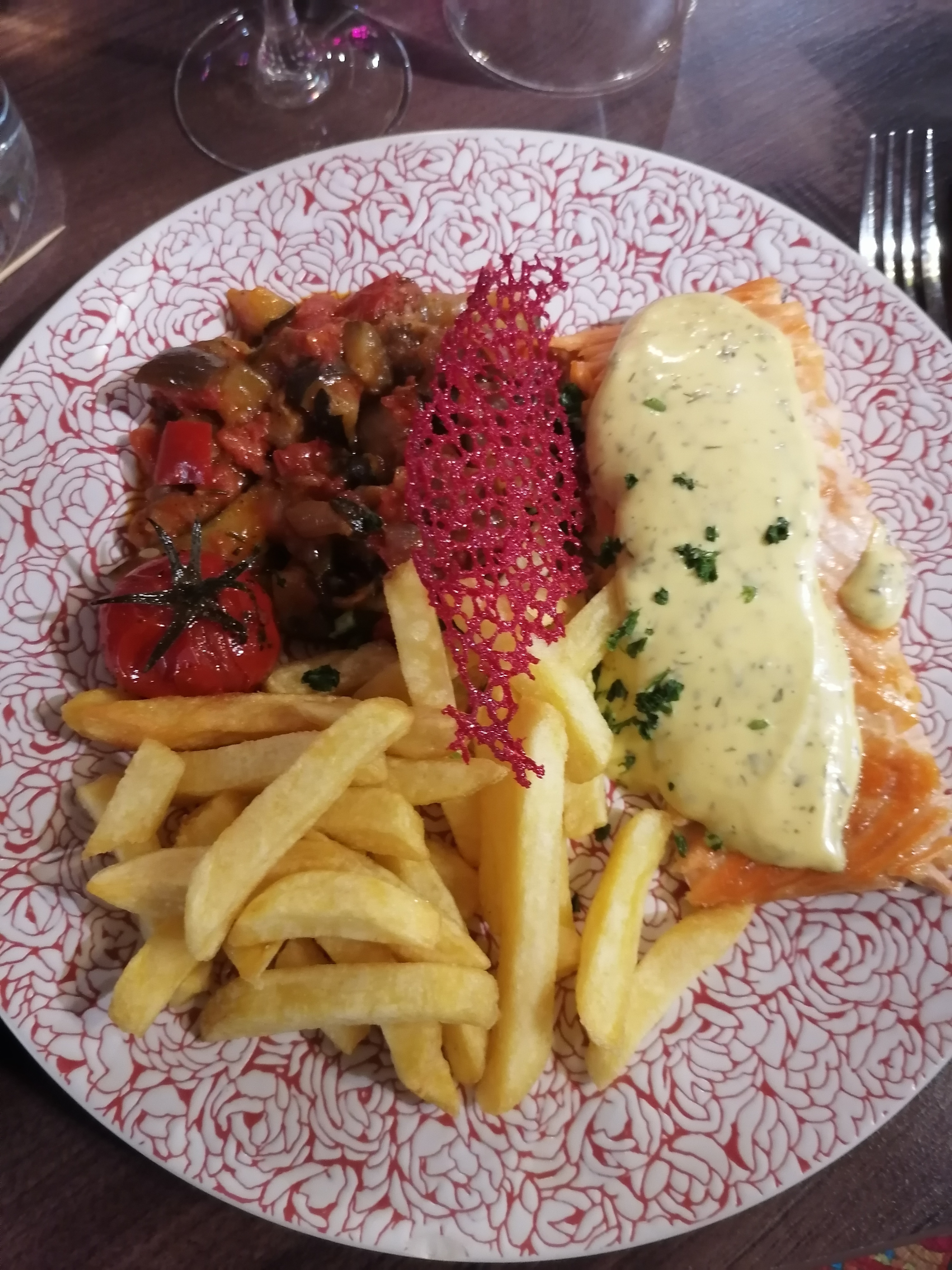 Arrivé dedans on tombe sur un lieu très beau et bien décorer. A table, les serveurs très serviable et attentif à nos besoin. Sur la carte pas beaucoup de choix et prix légèrement au dessus du marché. Le pavé de saumon très bon, bien cuit et bien présenté. En dessert, fondant au chocolat (qui est plus un moelleux) avec crème anglaise, je pense qu'ils sont industriels. En clair, vous pouvez y venir si vous voulez manger un bon plat mais soyez prêt à payer un peu plus cher.