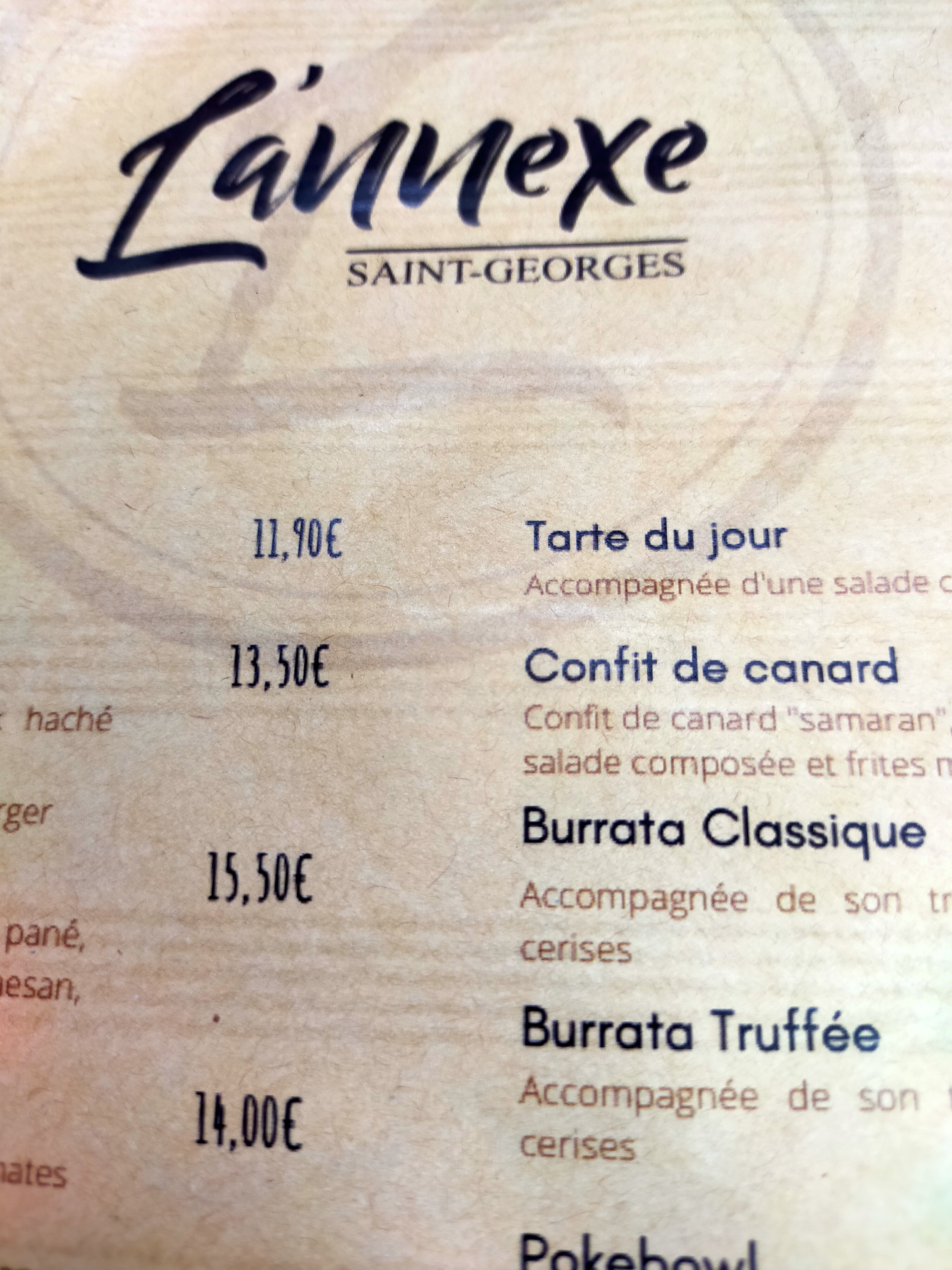 Bonjour les amies et amis j'ai découvert l Annexe il y a cinq ans . Une bonne table non une très bonne table des plats hyper variés et pour moi le luxe le prix est souple non très souples l'apéritif un délire avec le rouge pêche bref venez testez. On pourra en parler j'y suis tousR les jours. Robertuschapeaupointus