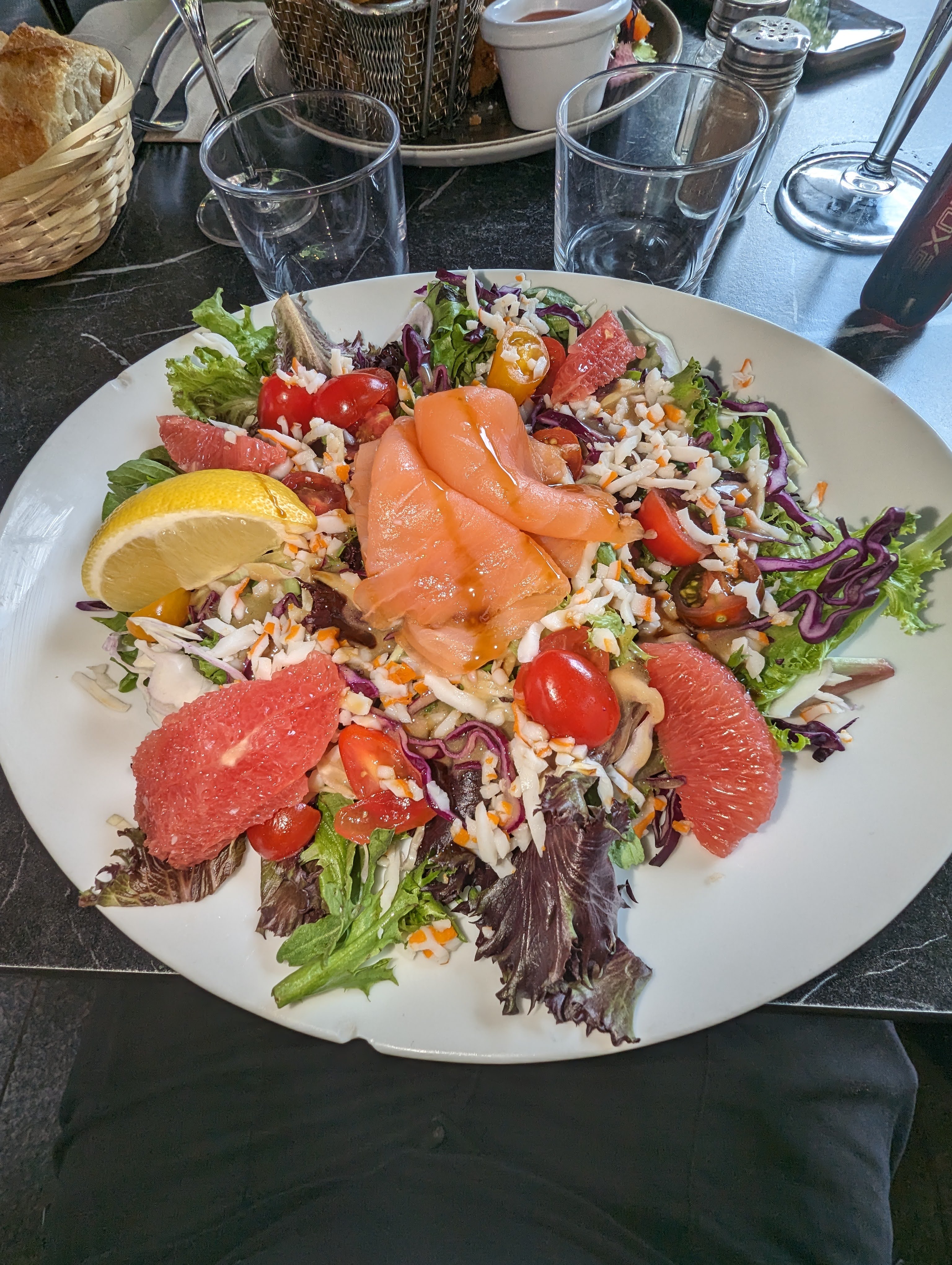 Très bonne découverte Des plats frais et copieux, pas trop chers au vu de l’emplacement, pour un petit break et une envie de bien manger c’est parfait