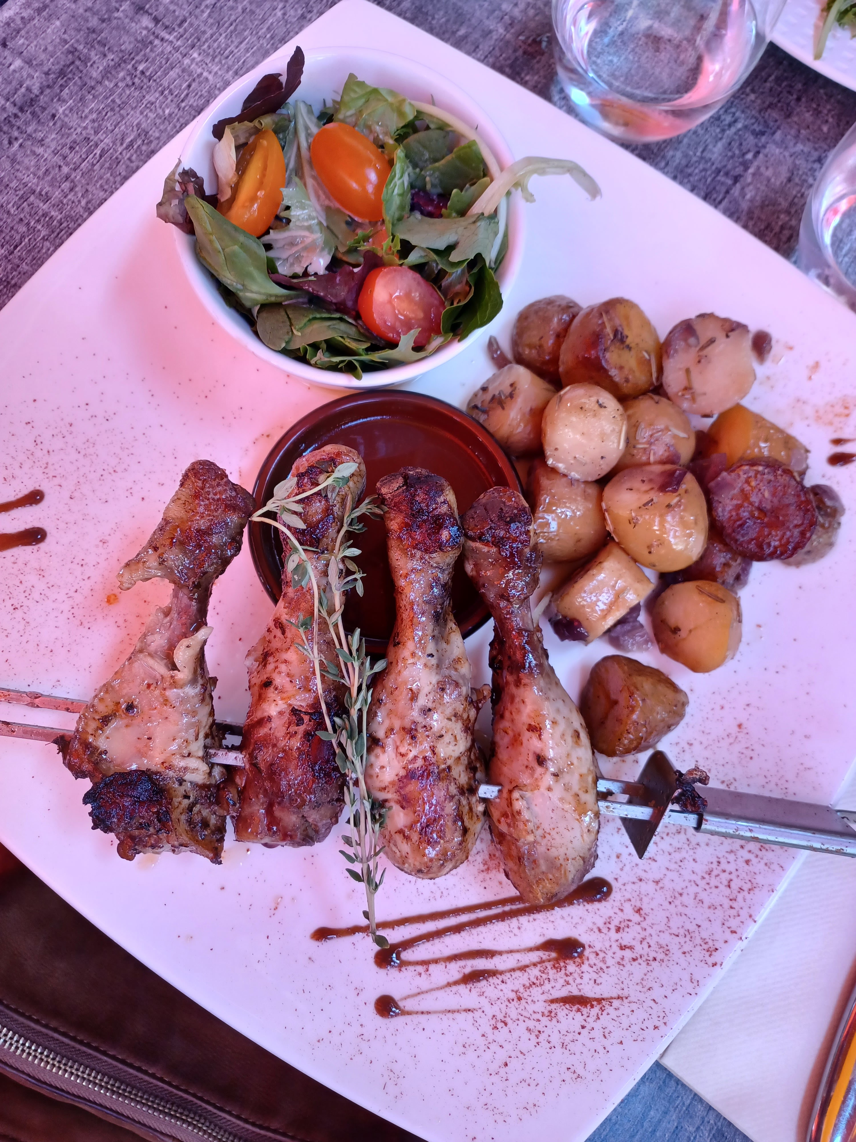 Très bon restaurant ! La brochette de poulet était très bonne et les pommes de terre avaient du goût. La crème brûlée : un délice. Je recommande