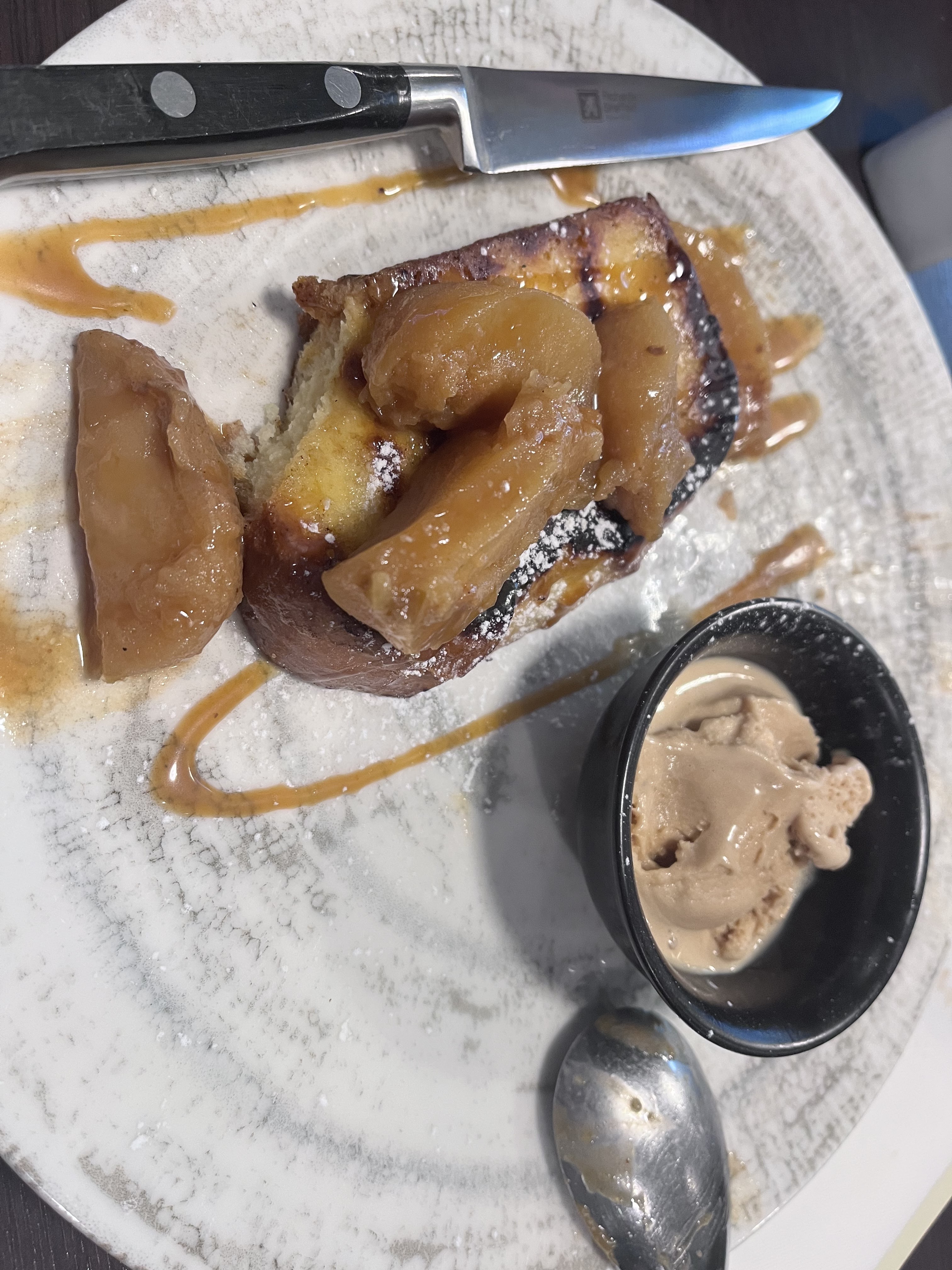 Très belle découverte Andouillette très goûtu et gnocchis à la truffe et camembert fabuleux La brioche perdue a bien conclue le repas