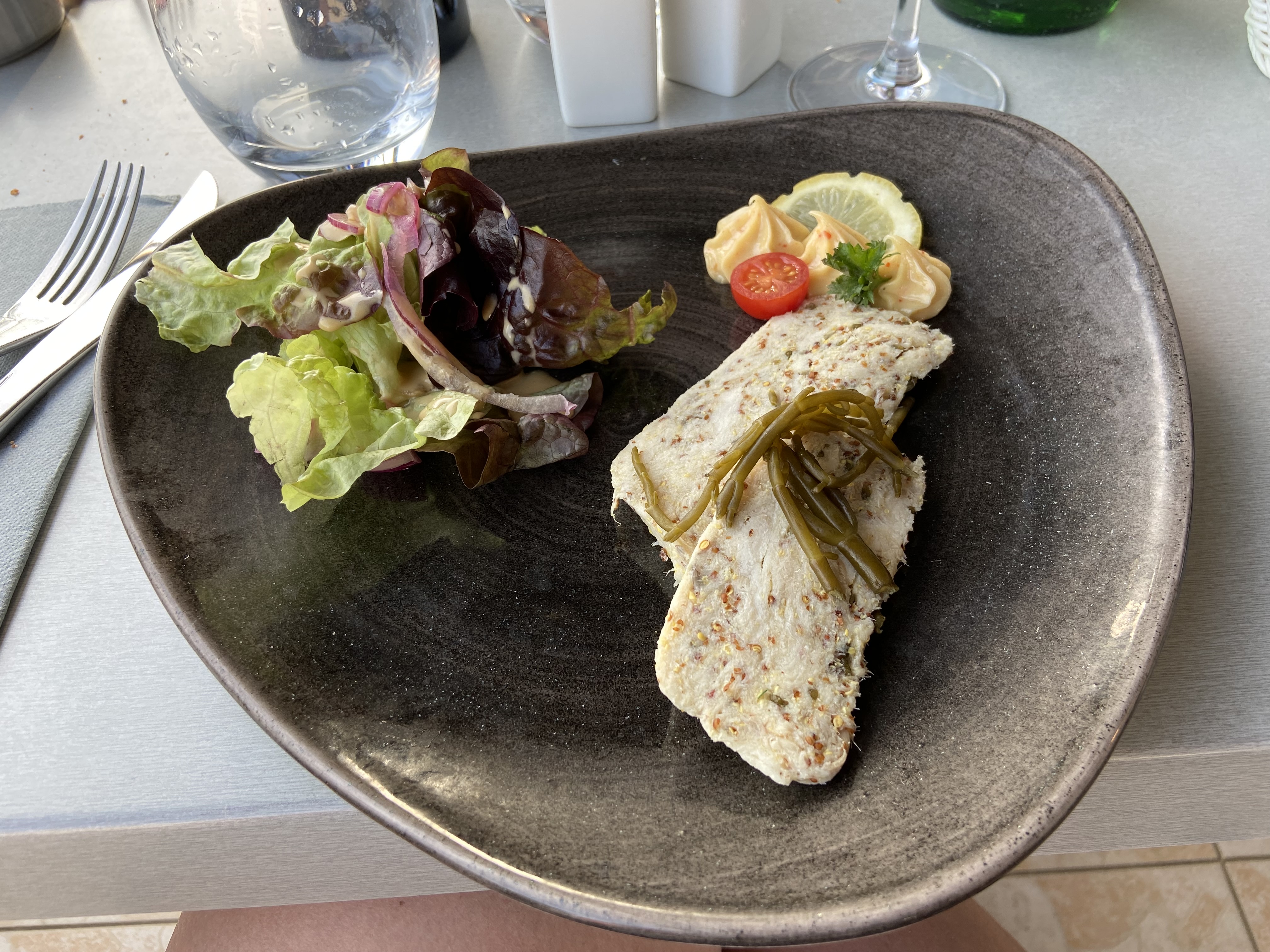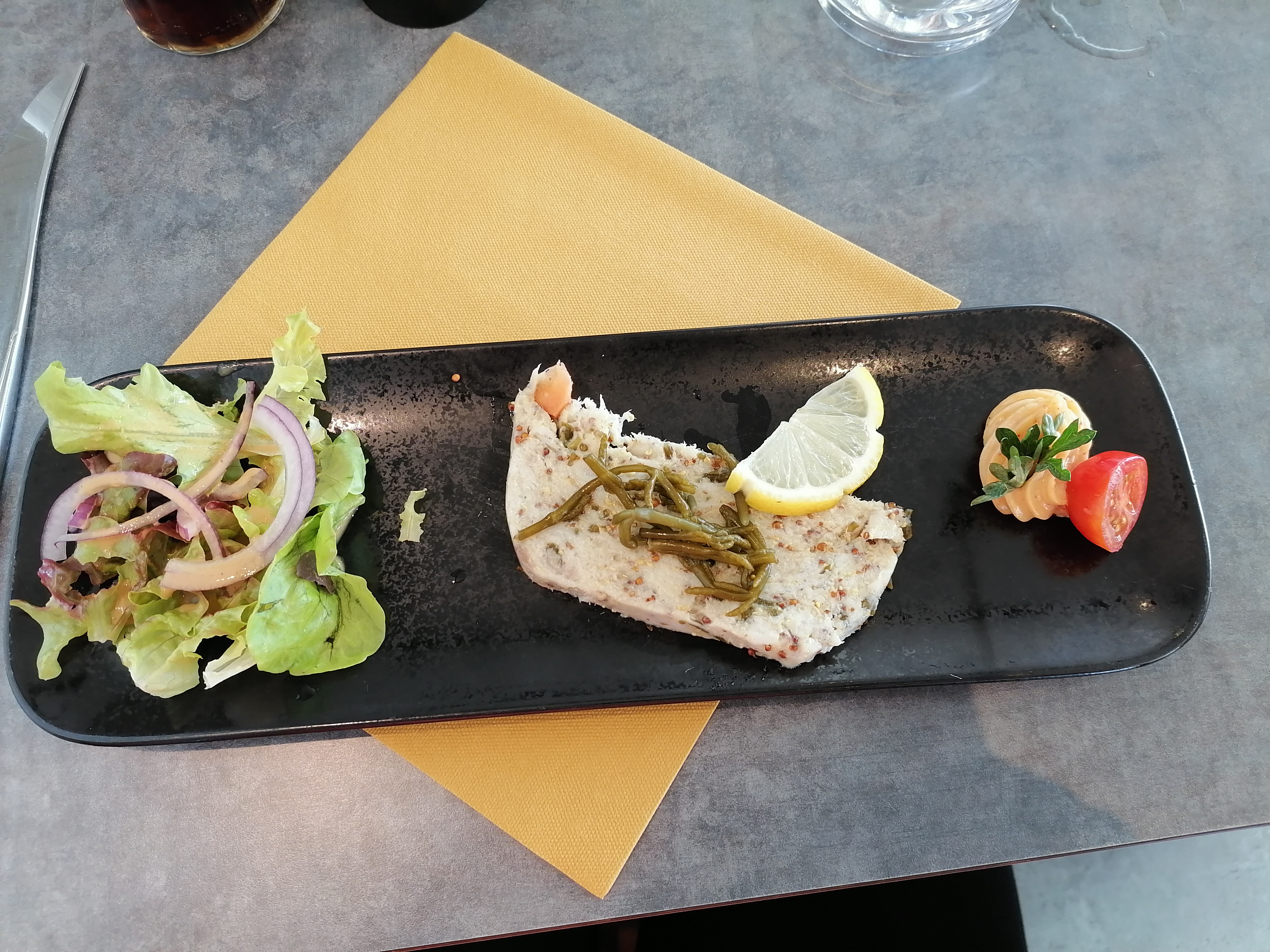 Un très bon repas,une jolie vue sur la mer,service souriant.rien à redire