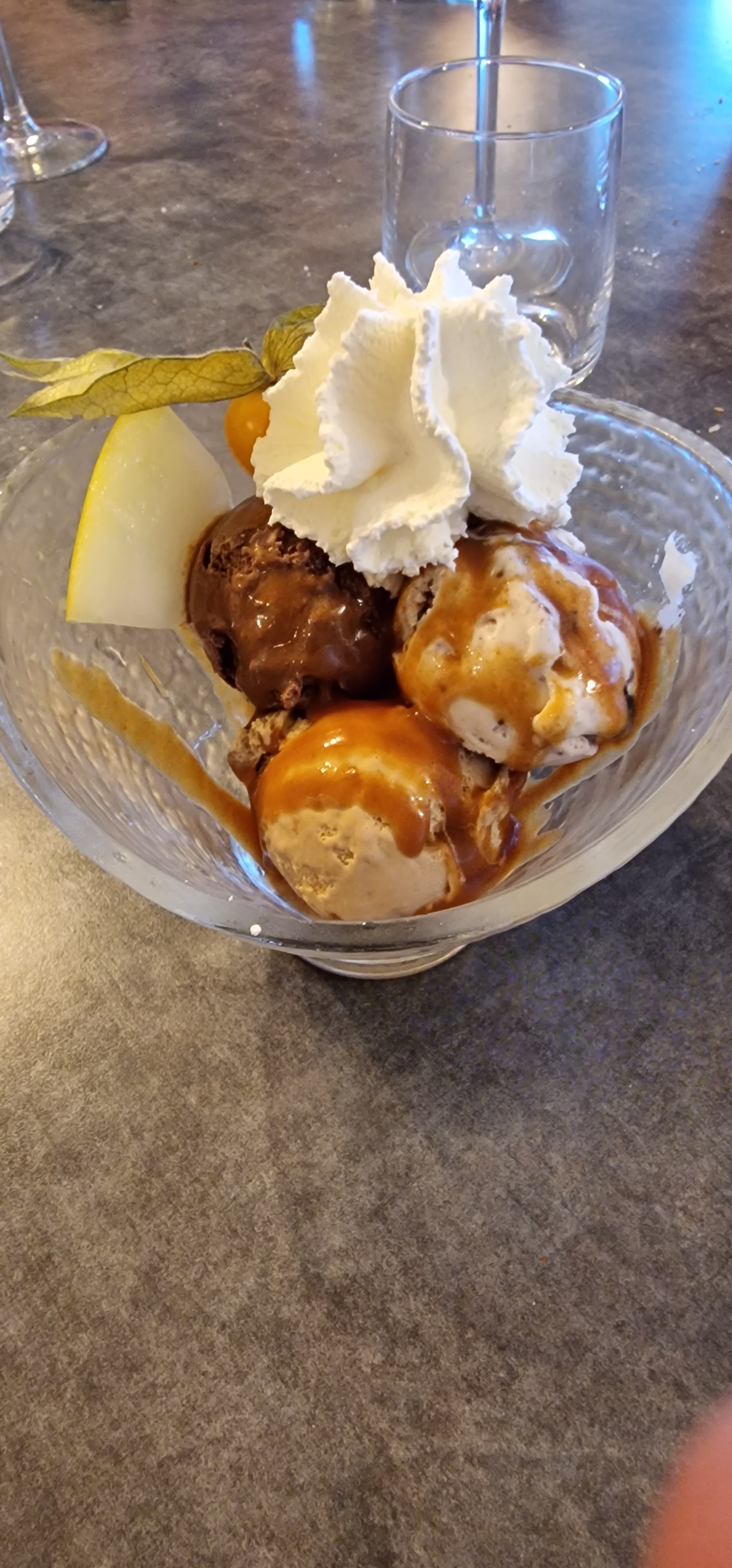 Je recommande !!! J'ai commandé le menu à 23e : vol au vent de champignons, poisson à la criée et deux boules de glace. Les plats sont délicieux, les serveurs sont très accueillants, le cadre est très sympa et l'ambiance au top ! Foncez ☺️