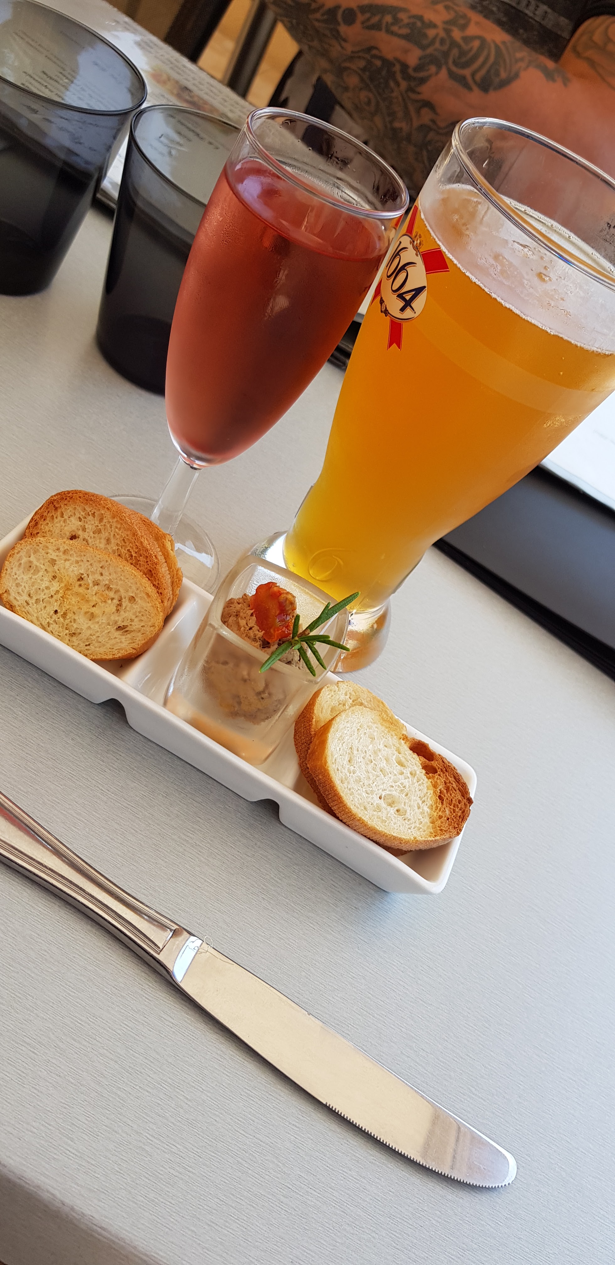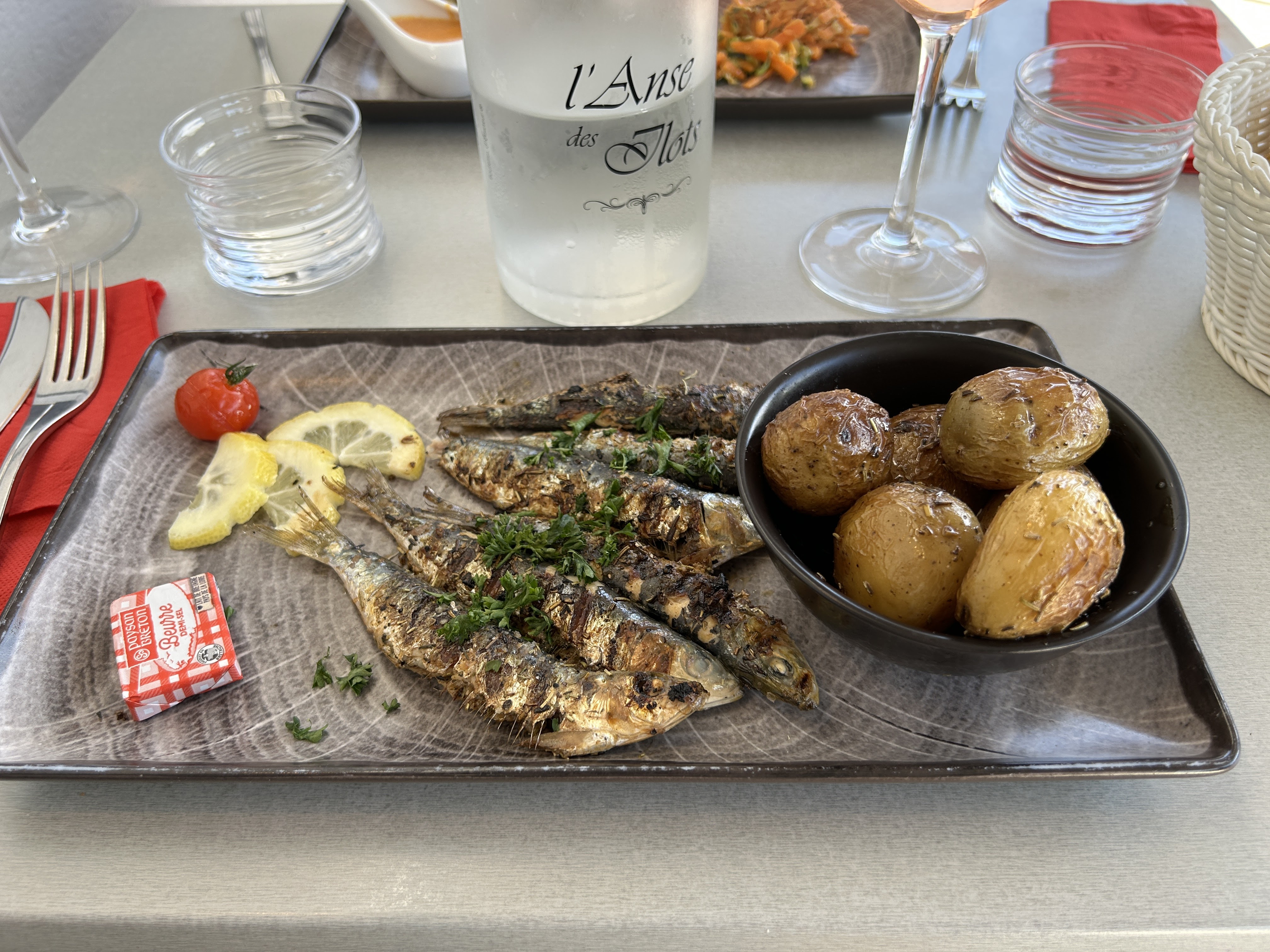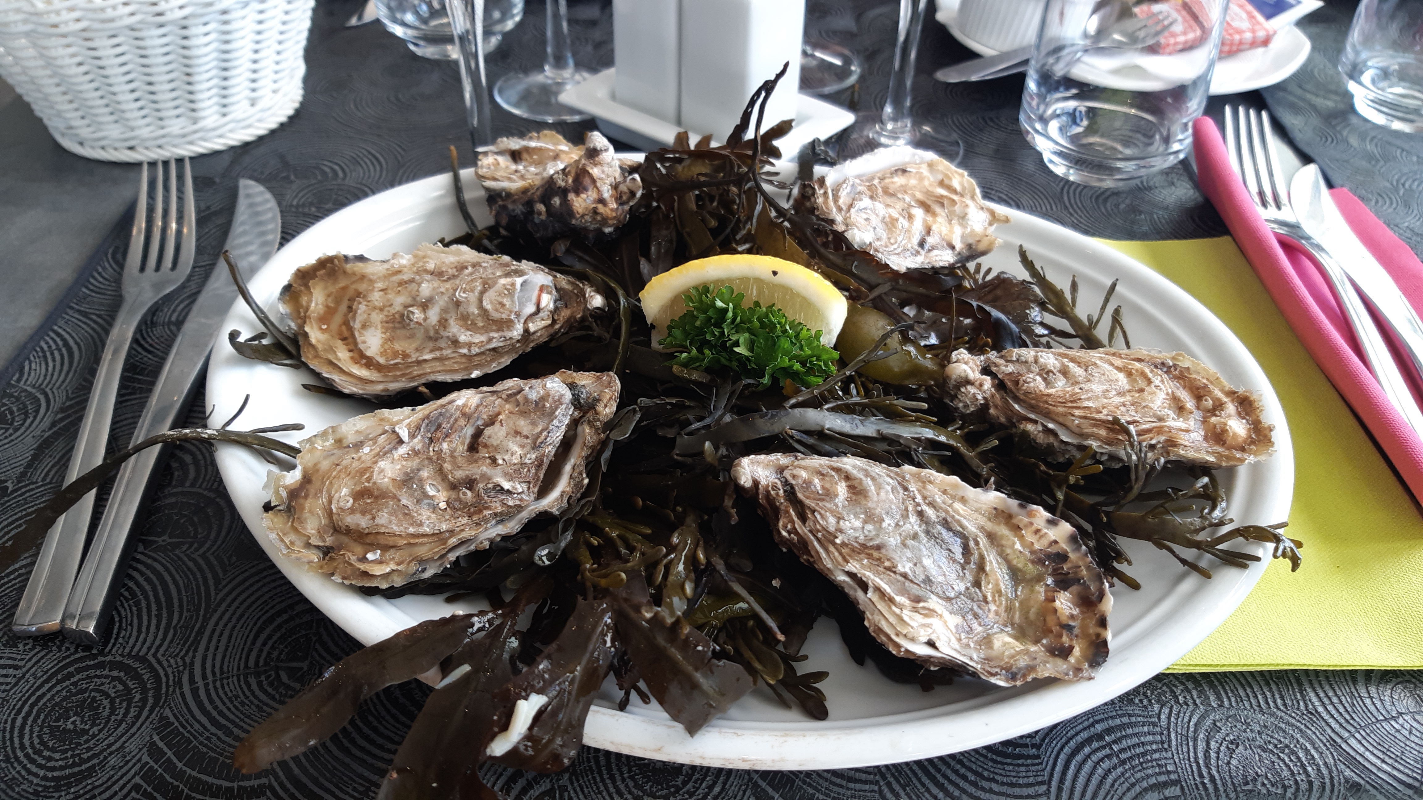 Premier restaurant bord de mer pour nous... juste un mot : à refaire qualité et fraîcheur des produits, présentation des assiettes très jolie, mais alors les moules au chozizo j'en ai l'eau à la bouche 🤤 apéro avec rillete de sardines. Repas enfants ( steak frite et moules à la crème frite) entree: terrine vendéenne / huîtres. Plat: merlu blanc accompagné de son beurre blanc au pain d'épices / moules au chorizo. Pour 3 enfants et 2 adultes tarif 82€... allez y les yeux fermés.