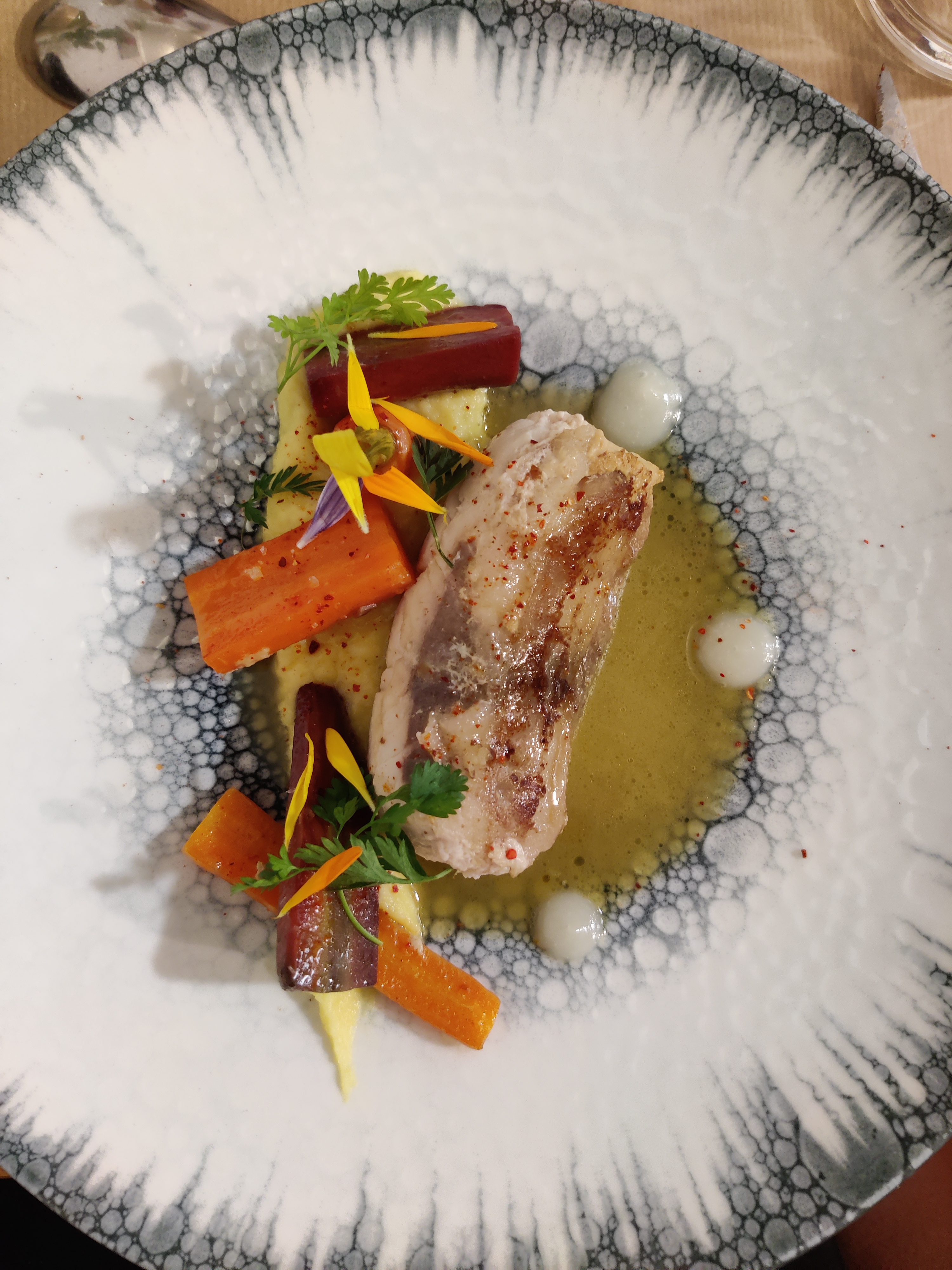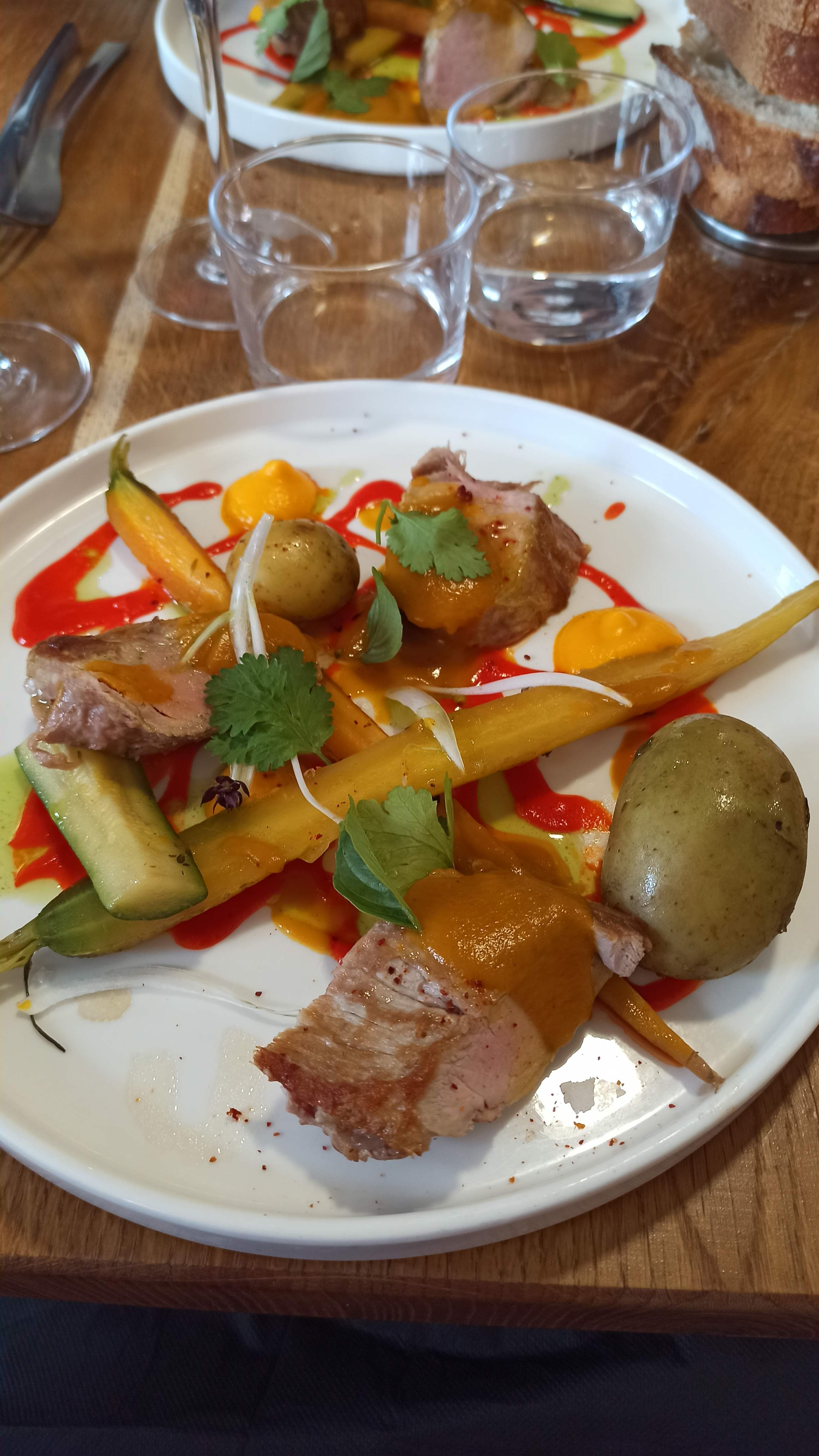 C'était un cadeau pour mes 40 ans et quelle belle découverte ce restaurant. Du début à la fin nous nous sommes régalés. Très original. L'entrée aux anchois excellente et le plat principal à base de cochon carotte et piquillos un délice. Mention spéciale pour sablé breton à la pêche, une tuerie. Équipe super sympa, service souriante. Nous avons aussi aimé le vin. Bref un restau avec des produits locaux comme on les aime.