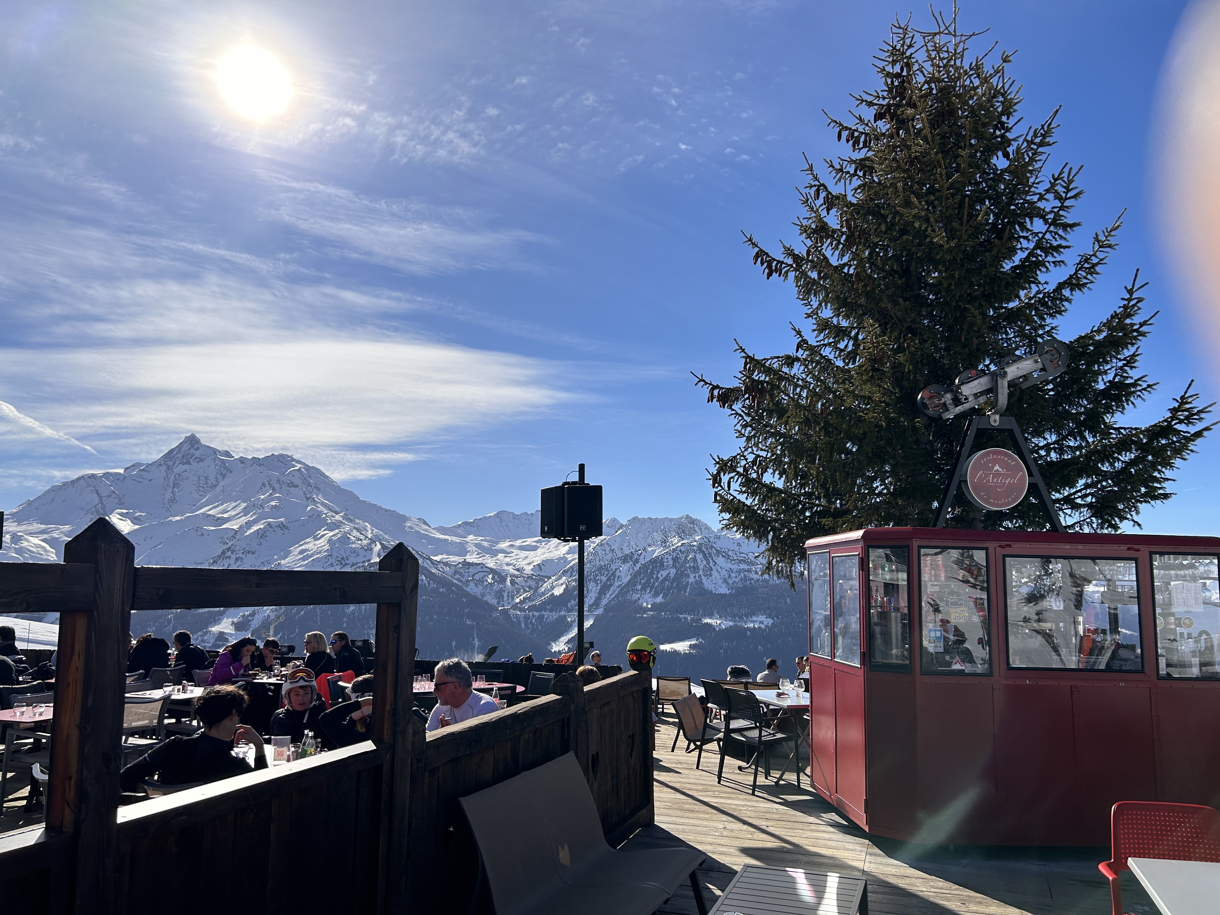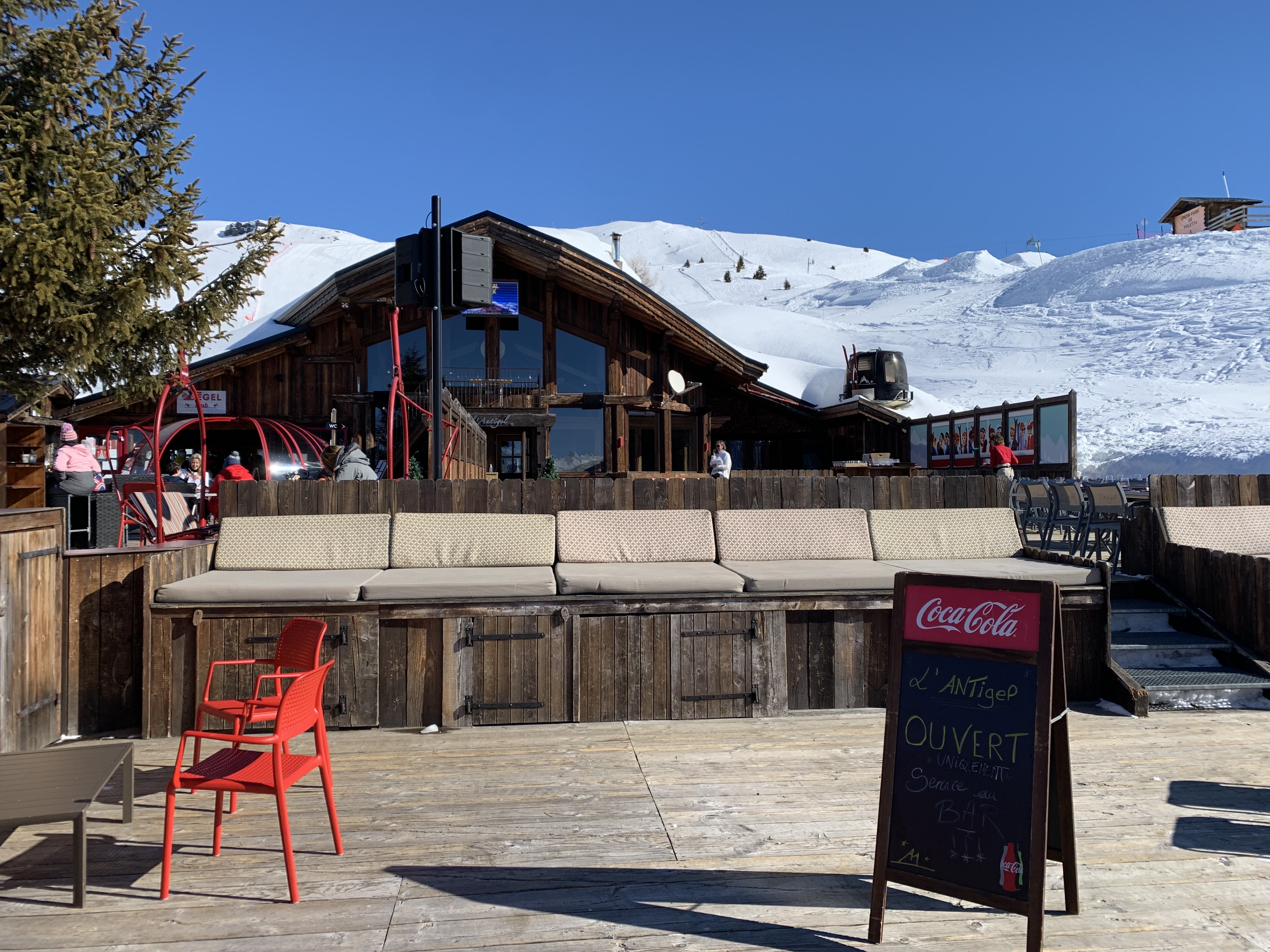 Bar d'altitude sur la piste bleu de la Rosière juste à côté du stade de slalom. Une vue magnifique sur Bourg St Maurice et la vallée des Arcs.