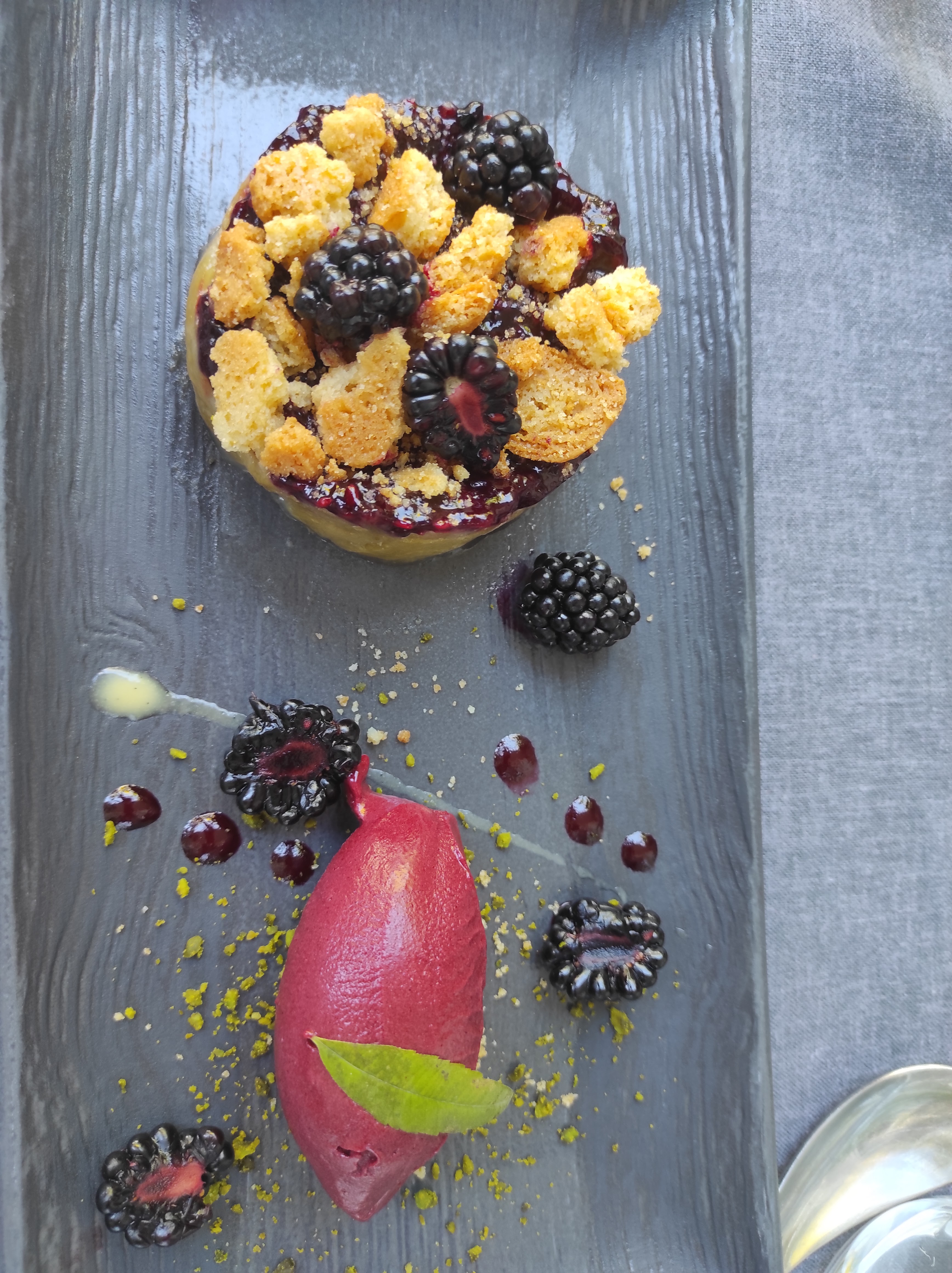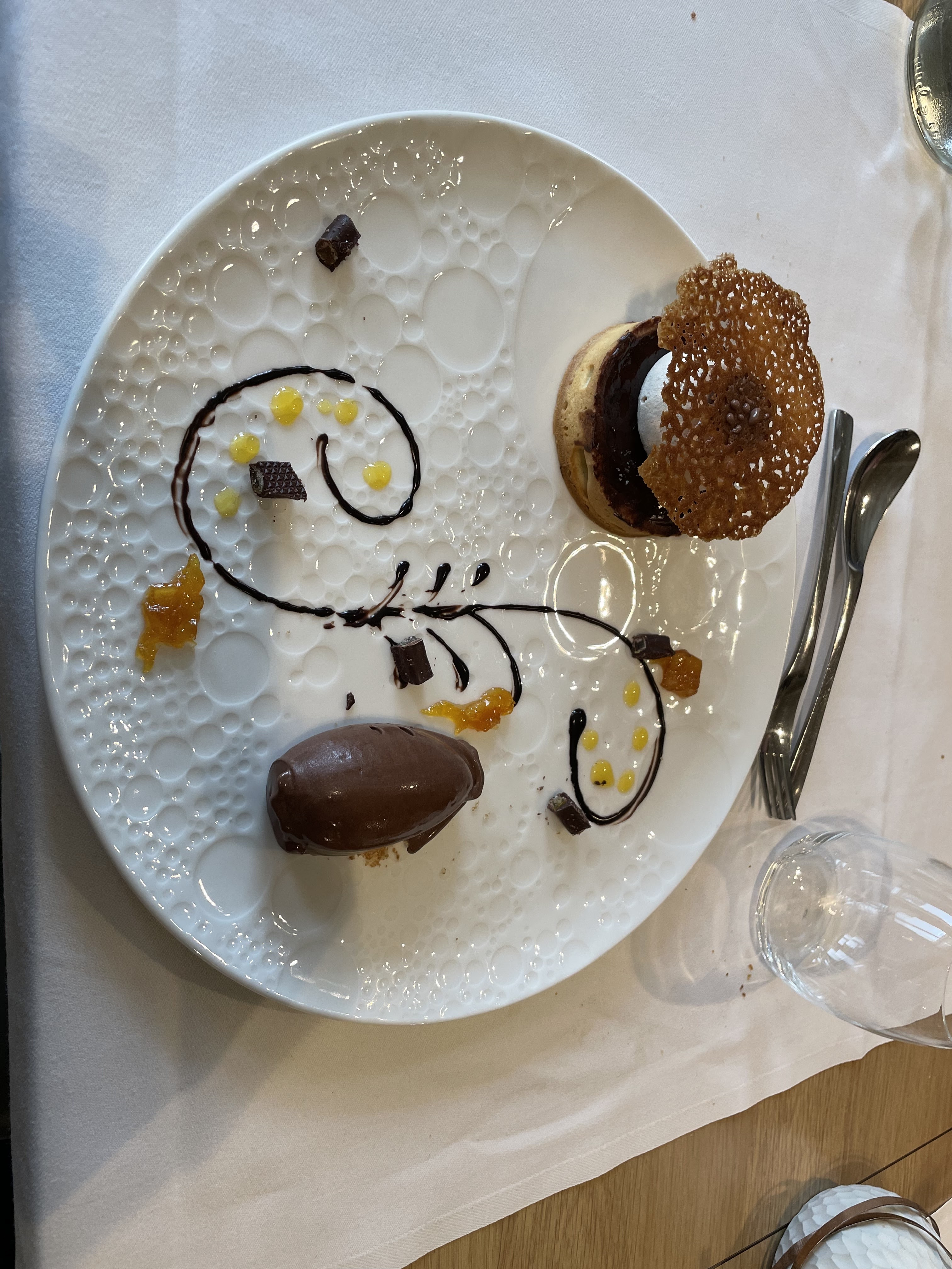 Dîner à trois… nous recommandons ce restaurant, les plats sont un régal tant pour les yeux que le palais… Les desserts en particulier la tarte rhubarbe et framboise très élaborée est un délice…. Accompagné d’un service à la hauteur😁