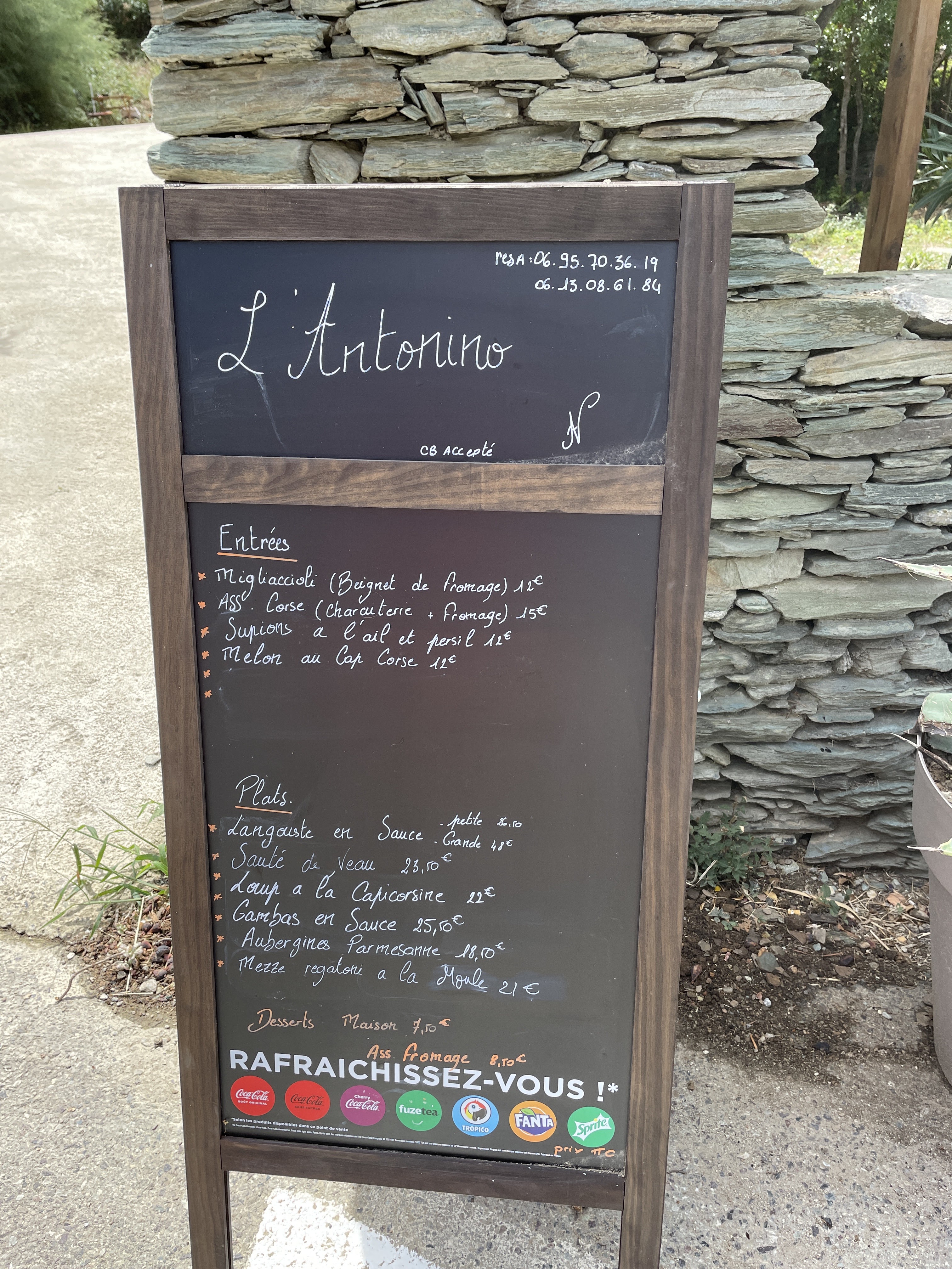 Bonsoir, aujourd’hui visite de centuri, village de pêcheurs, déjeuner chez l’Antonino, où nous avons passé un agréable moment, patrons jeunes et sympas, repas excellents ! Je recommande sans problème