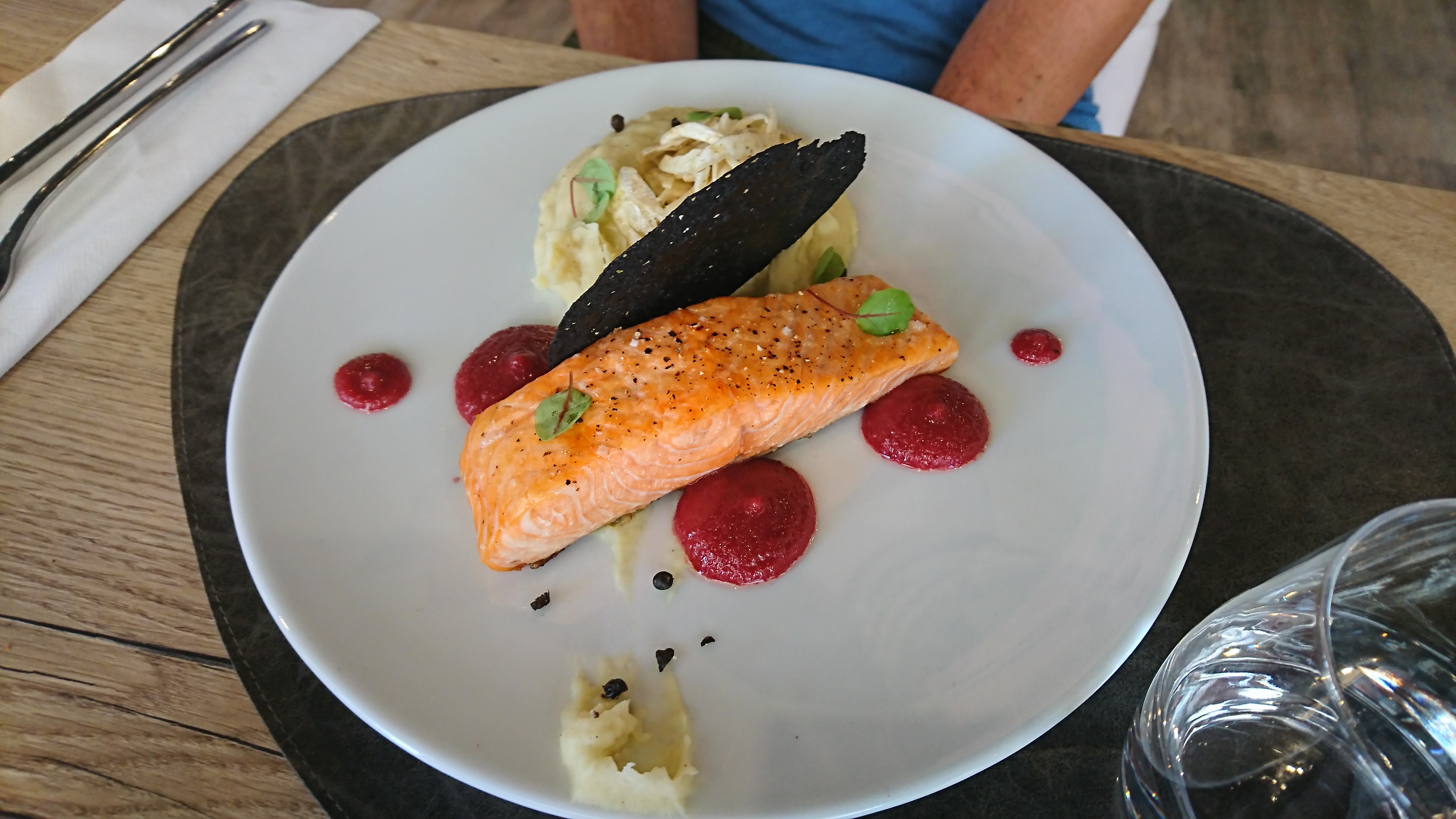 Restaurant gastronomique chic et élégant implanté en plein milieu des restaurant classiques et autres services de restauration rapide. Pour ma part j'ai commandé un risotto d'épeautre et un cabillaud poché. Le plat était très bon. Nous avons également pu prendre un hamburger pour notre fils et celui-ci était plutôt conséquent et rassasiant. Le personnel est chaleureux et très agréable.