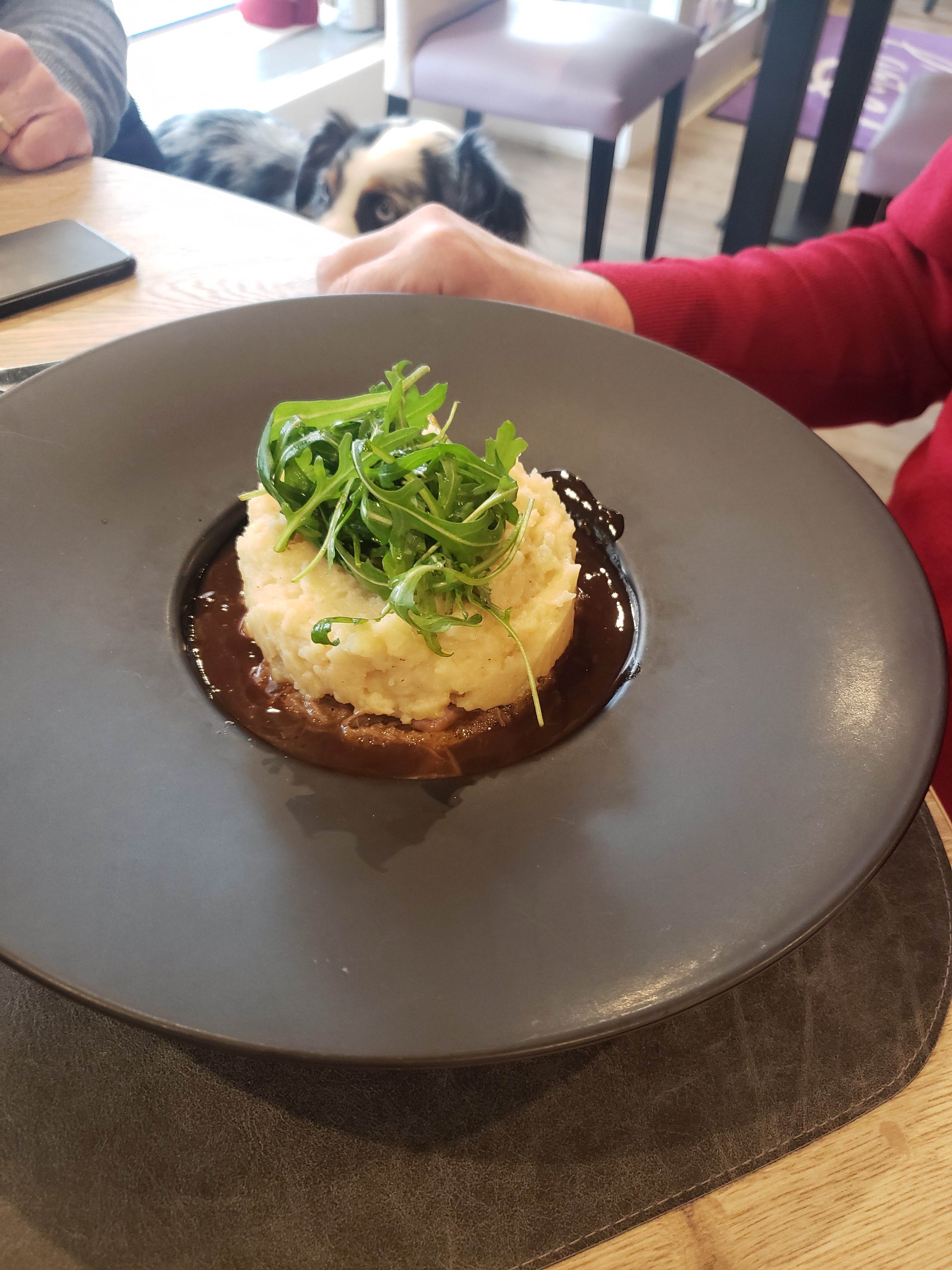 Intérieur cosy .Très bon accueil malgré notre retard de 30 minutes. Nous avons très bien mangé. Saumon de qualité en entrée, dos de cabillaud délicieux et mille feuilles revisité nous avons adoré. Encore un point, notre chien a été accepté. Restaurant à retenir et à conseiller.