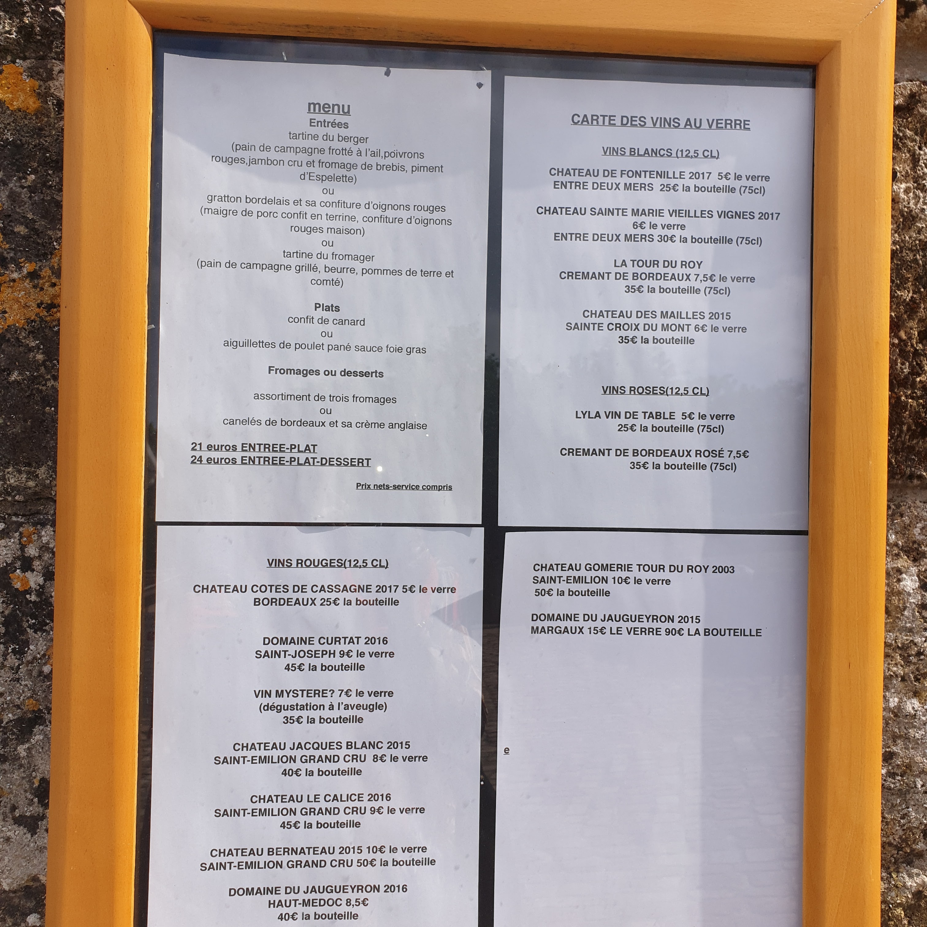 Trop bon 18 ou 20 euro entrée plat dessert un régal et puis ce vin 🍷 saint emilion grand cru chateau bernateau