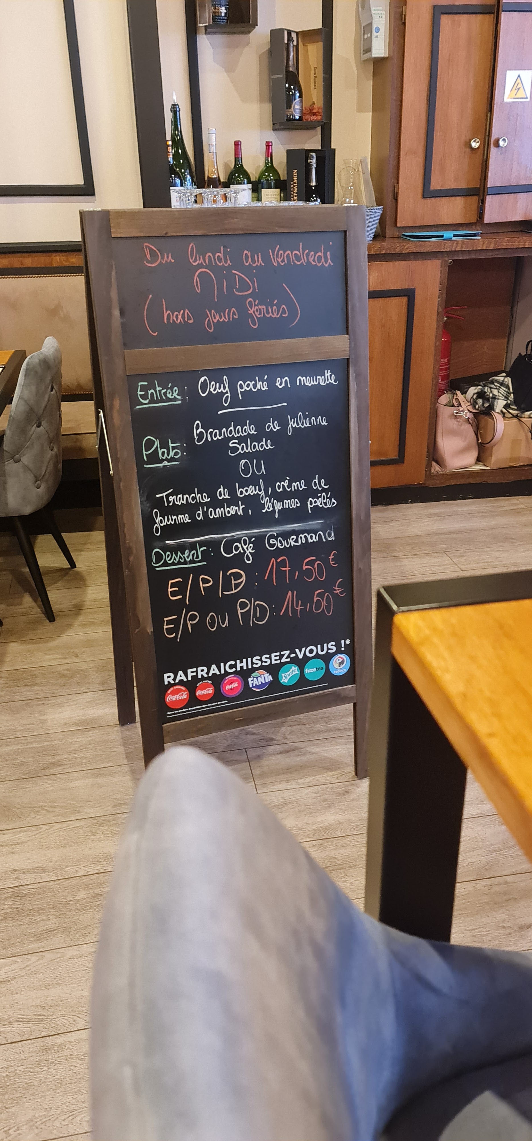 Changement de propriétaire mi 2017. Donc. Bilan. 6.5/10. Les plus: Produits frais, verrine de fruits frais surprenante et agréable en fin de repas, assaisonnement quasi juste, rapidité du service. Les moins : quantité modeste d'où prix un peu elevé, café rude, vin banal, serveuse un peu stressée mais c'est le debut, produits un peu trop cuits.