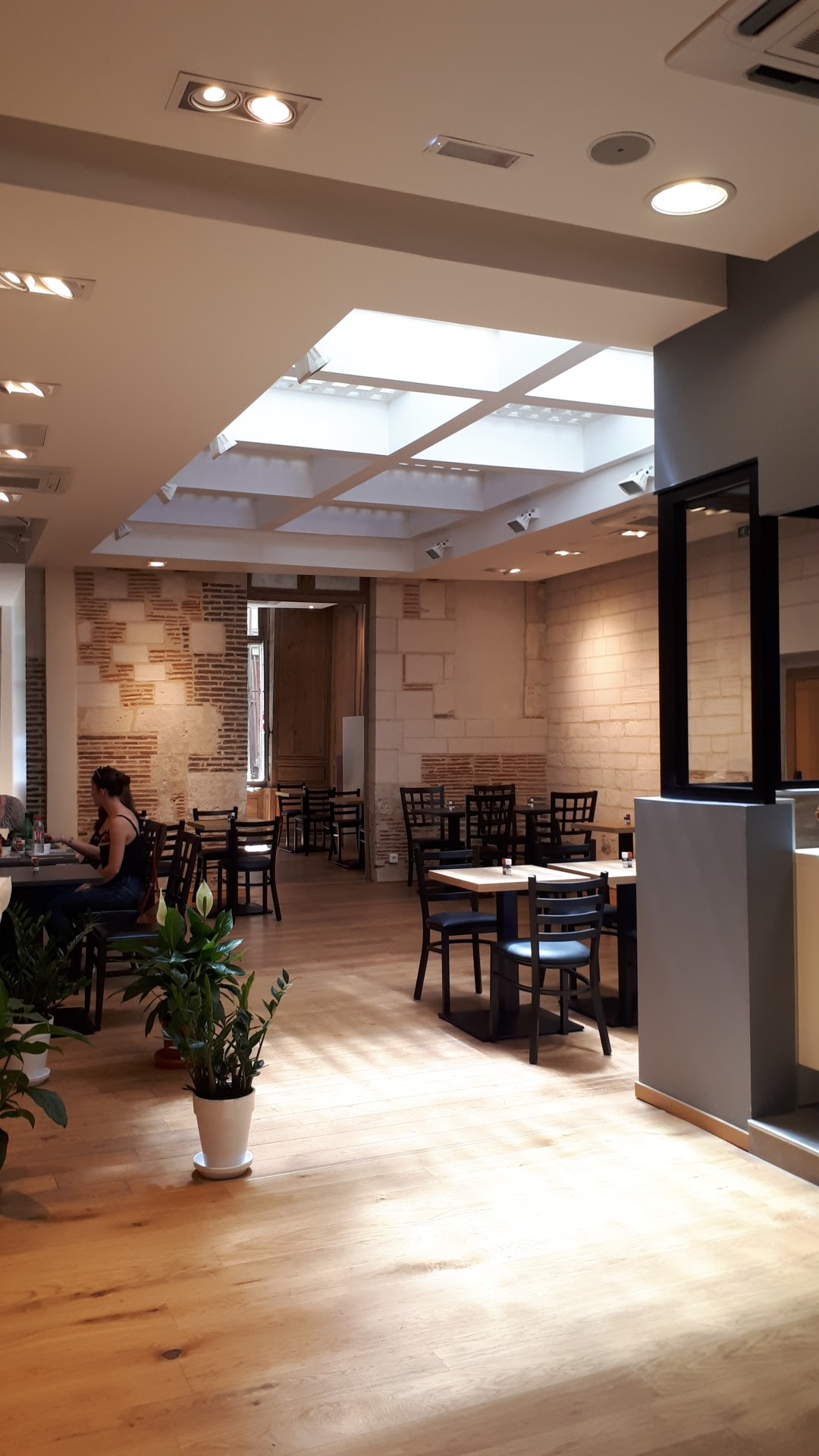 endroit très agréable et climatisé.les prix sont corrects. ex 8.5€ pour une grande boîte de pâte. il n y a qu une seule sorte de pâte. il y a une grande et belle salle en vielle pierre a l arrière.