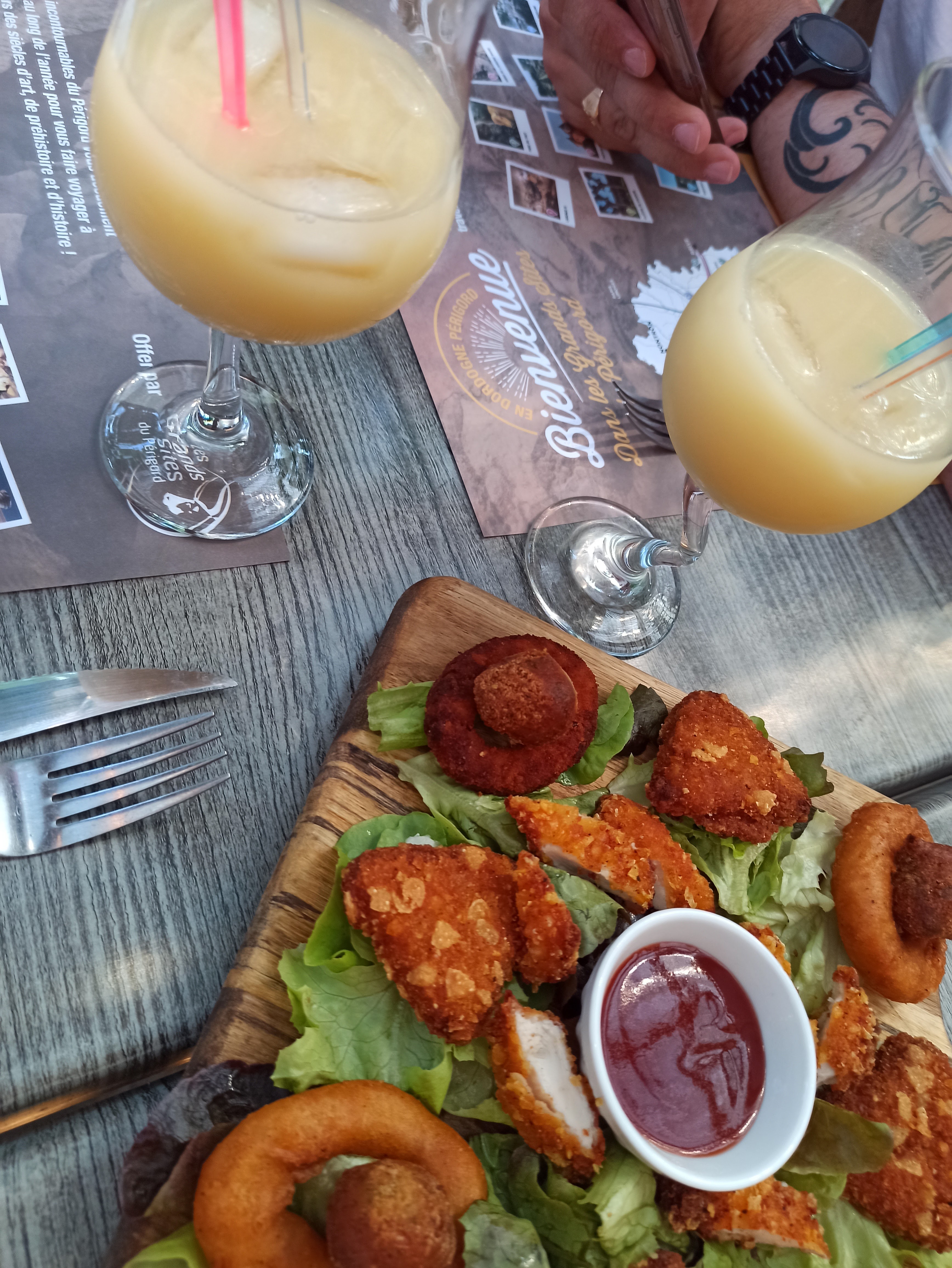 Nous avions parcouru tout le Bugue avant de trouver cet endroit et nous n'avons pas été déçus. Nous avons reçu un accueil chaleureux et une ambiance agréable et relaxante. Je peux recommander le Rum Punch, c'est exactement ce que fait !!!! Délicieux . Merci pour cette belle soirée