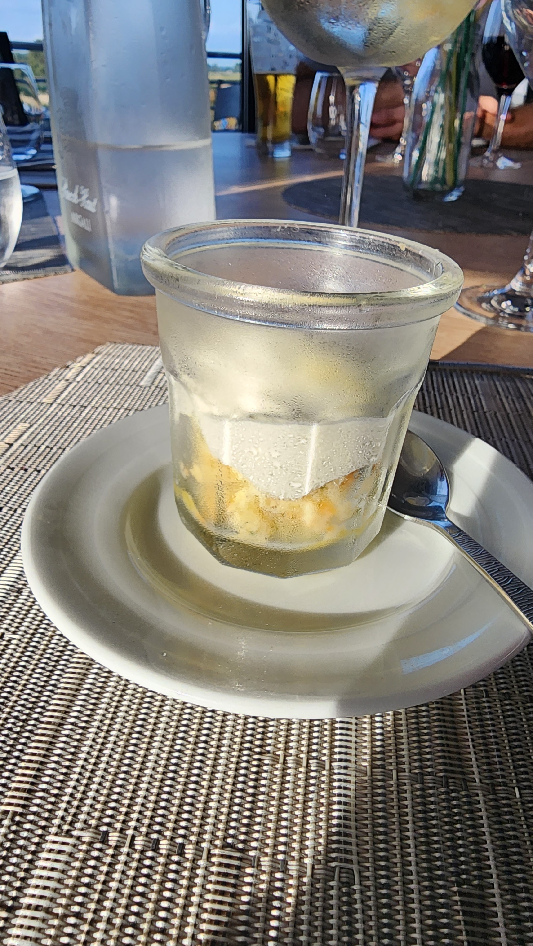 La vue était assez spectaculaire, nous n'avons pas pu manger car ils ne servaient pas l'après-midi, alors nous avons juste pris un vin, ce qui était bien 😉