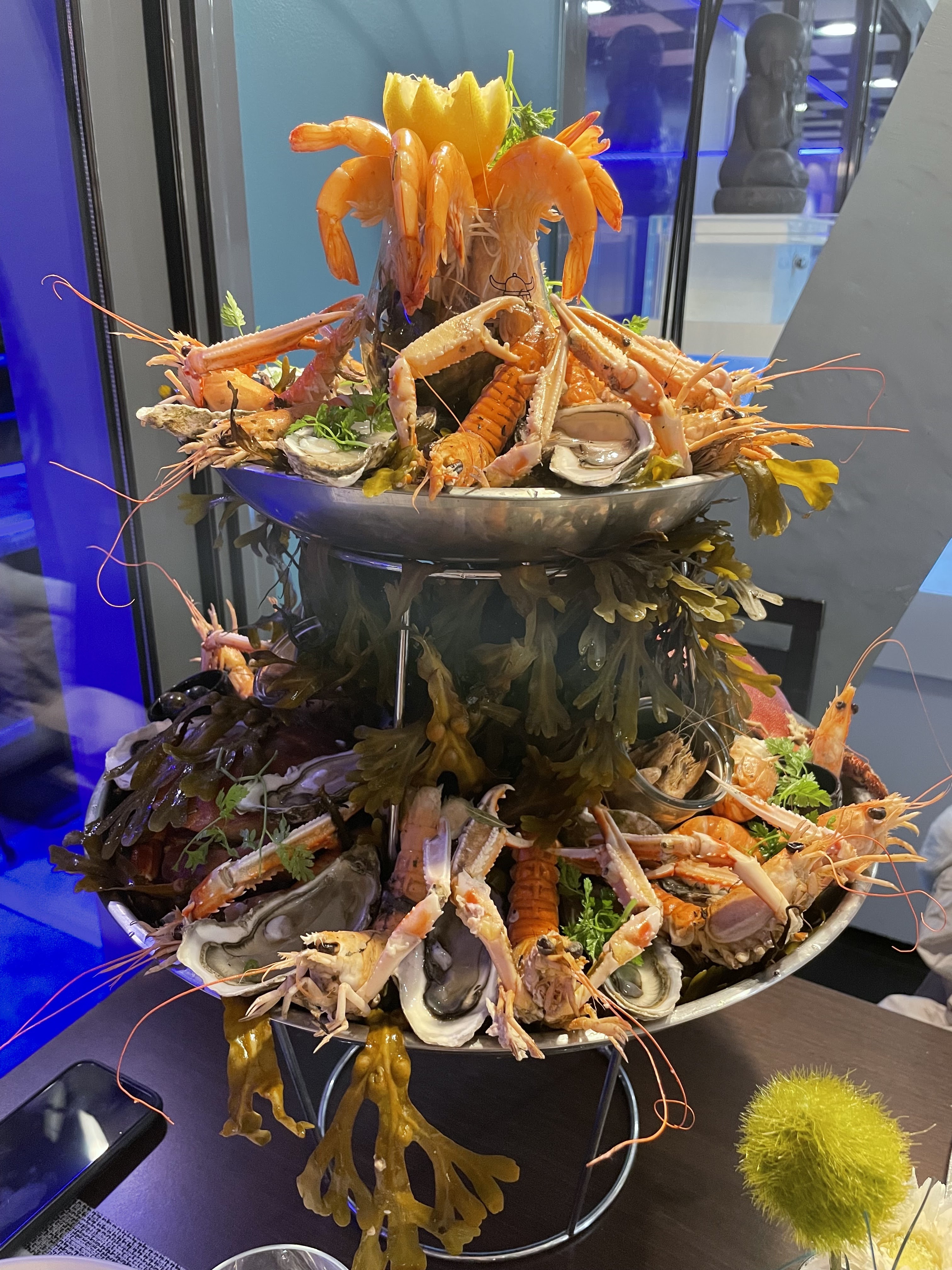 Je veux commencer en disant que je vis localement et que j’ai mangé de nombreux plateaux de fruits de mer au fil des ans, mais celui-ci était de loin le plus beau plateau de fruits de mer de tous les temps, c’était la perfection. Le dessert était bon aussi. Les serveurs étaient également très gentils avec nous, mais nous parlons français. J'ai remarqué que les clients non francophones n'avaient pas la vie aussi simple que nous, donc si vous ne parlez pas français, cela pourrait être un défi, alors soyez patient et gentil ! La photo ci-jointe est un plateau pour 3 !