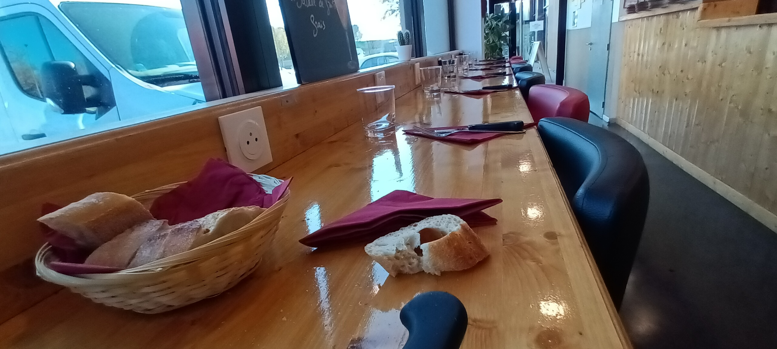 Un grand parking pour vous accueillir et un beau restaurant qui donne envie de rentrer et s'installer. points positifs : la cuisine est très bonne et il y a pas mal de tables. Les serveurs et serveuses sont polis et souriant. Point négatif (et c'est bien dommage) : J'étais seul à manger, et du coup on m'a proposé un coin à l'entrée du restaurant (j'ai tenté d'avoir une table ailleurs mais on m'a assuré que c'était compliqué s' il y avait du monde qui venait à plusieurs de me proposer une table). De ce fait, on m'a installé sur une sorte de comptoir et je me suis senti vraiment à l'écart et pas dans l'ambiance du restaurant. De plus à chaque client qui venait, étant en face de la porte, on se prend le froid... En sachant que je suis venue à l'ouverture à 12h, et qu'il y avait plein de place de disponible... C'est bien dommage car sinon tout était plutôt pas mal, mais je me suis vraiment senti à l'écart et isolé du reste des clients.