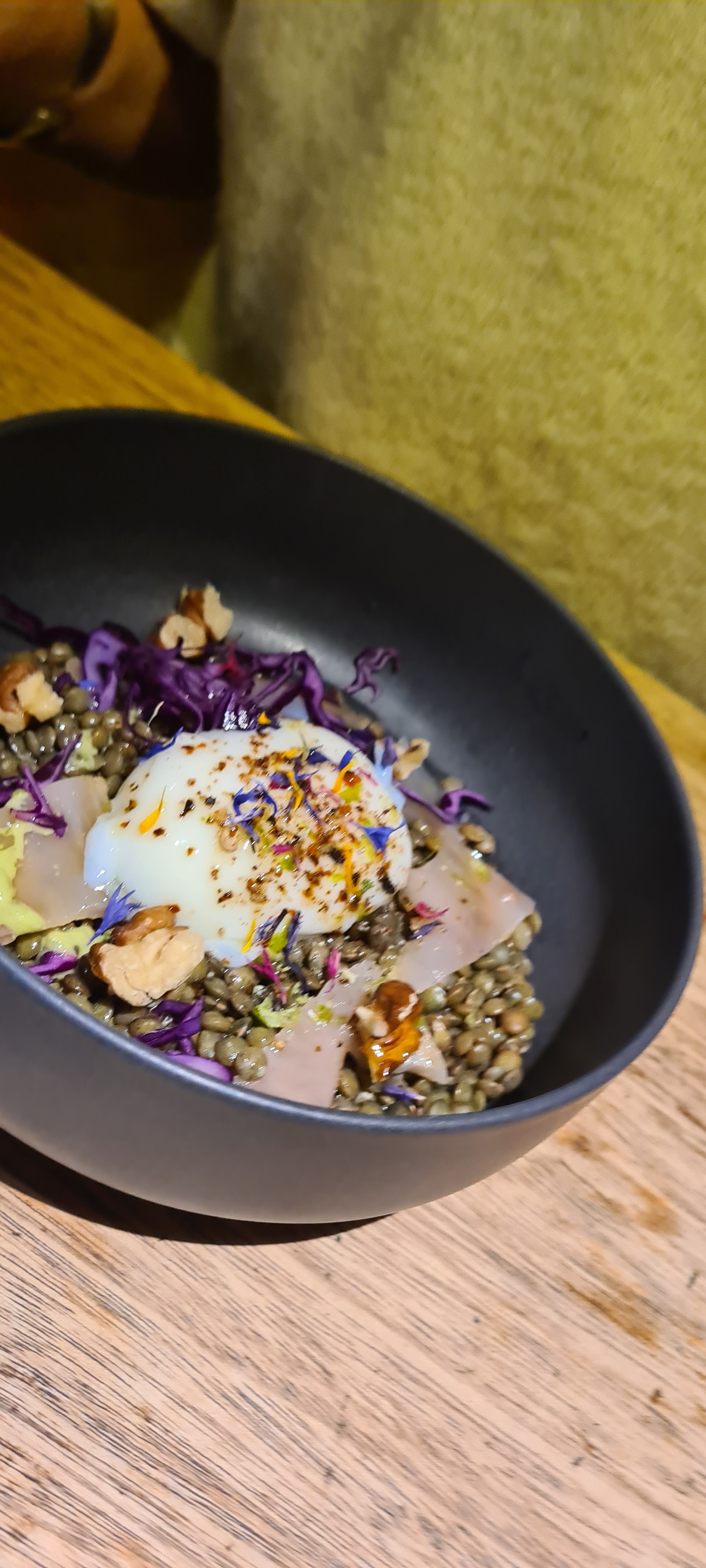 Accueil chaleureux, menu et vin délicieux... parfait comme l'œuf sur son lit de lentilles !