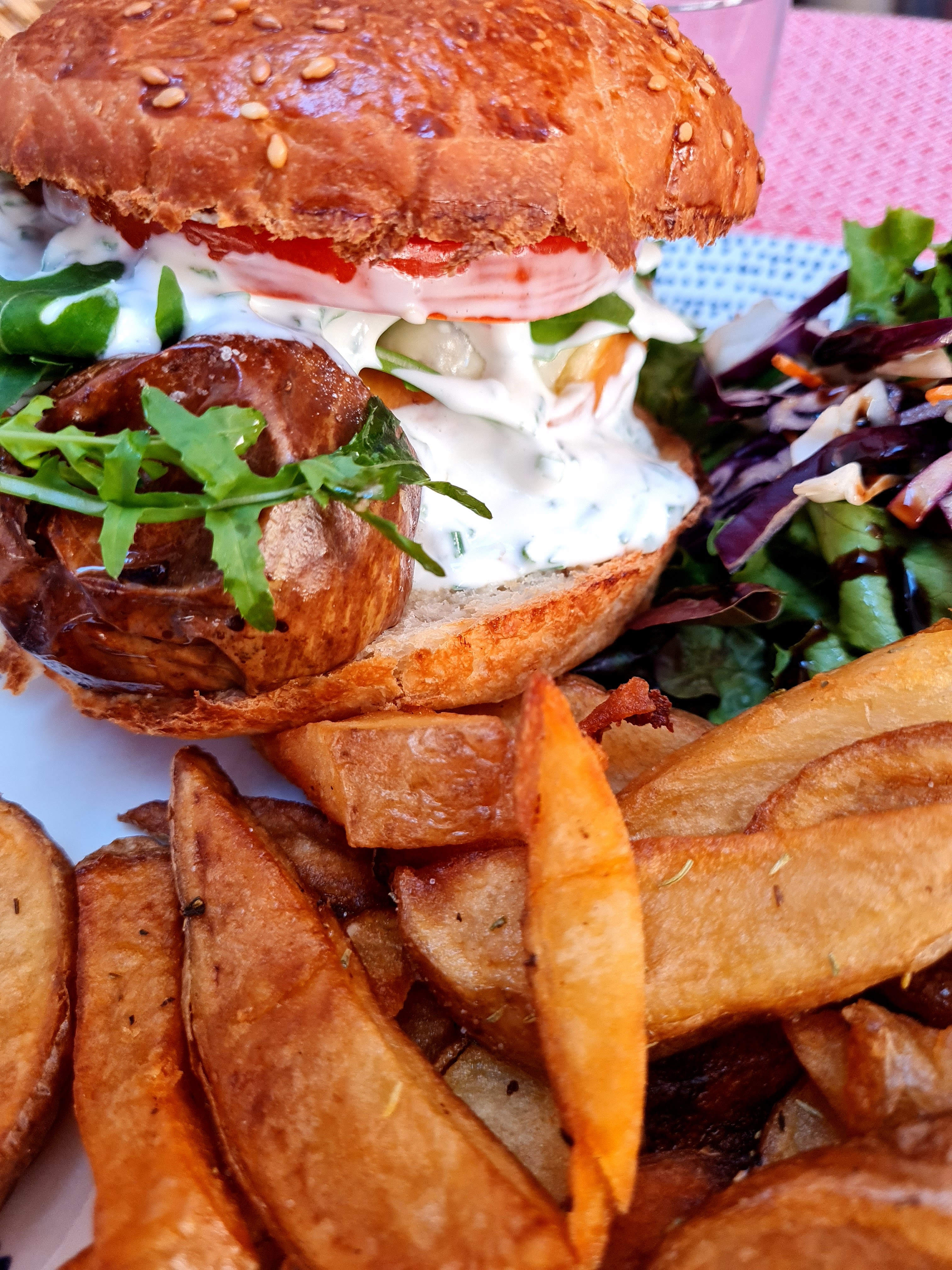 Trop bon. Un très bon burger végétarien, tout a un goût très bon. Accueil chaleureux .