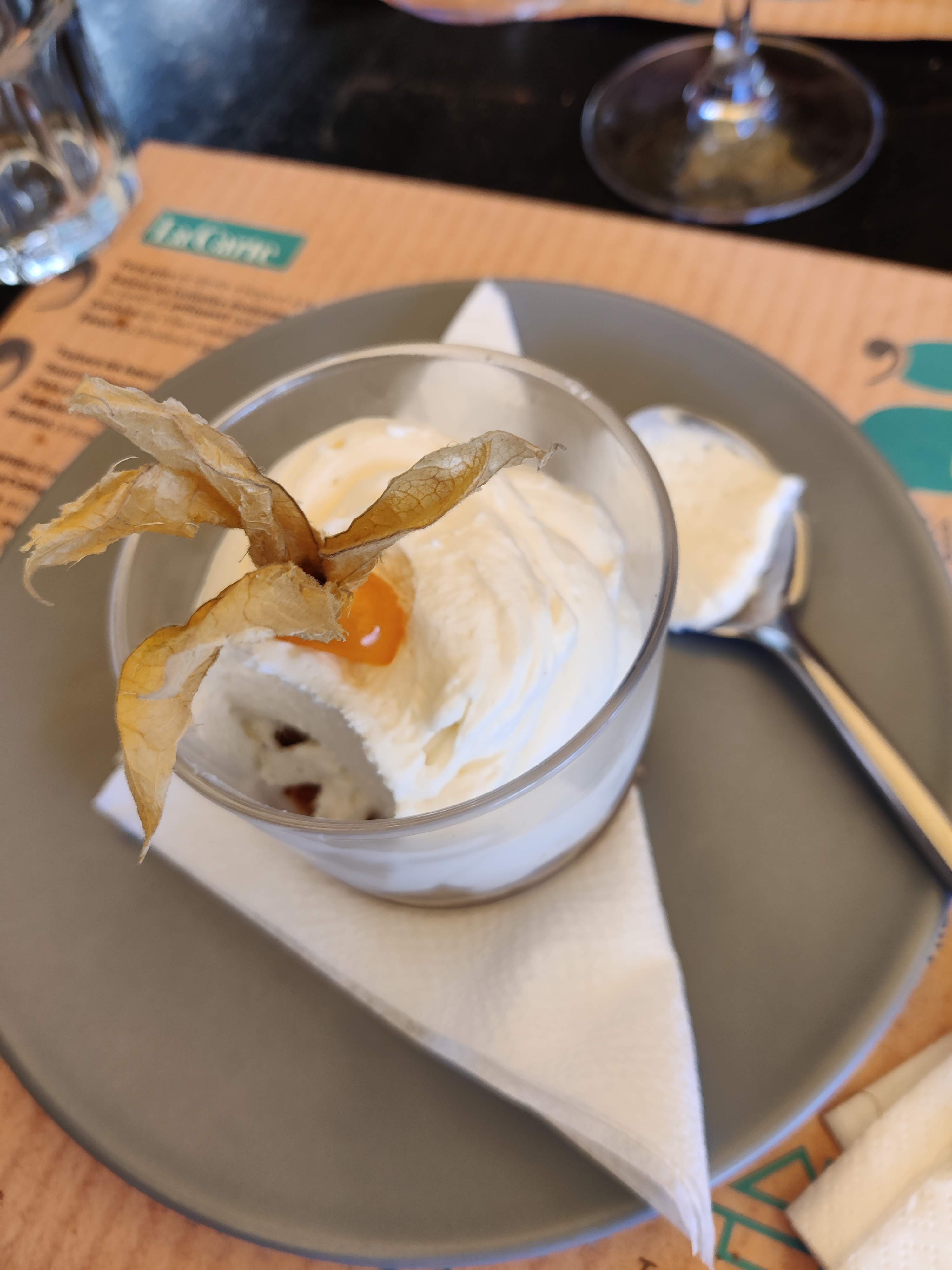 Nous avons pris le menu à 42€ pensant nous faire plaisir.une entrée très bonne un plat une souris d'agneau certainement cuite de la veille avec un gratin de pommes de terre à peine cuit. Une ratatouille décevante sortant certainement d'une boîte. Le dessert. Déçu nous n'y retournerons pas.