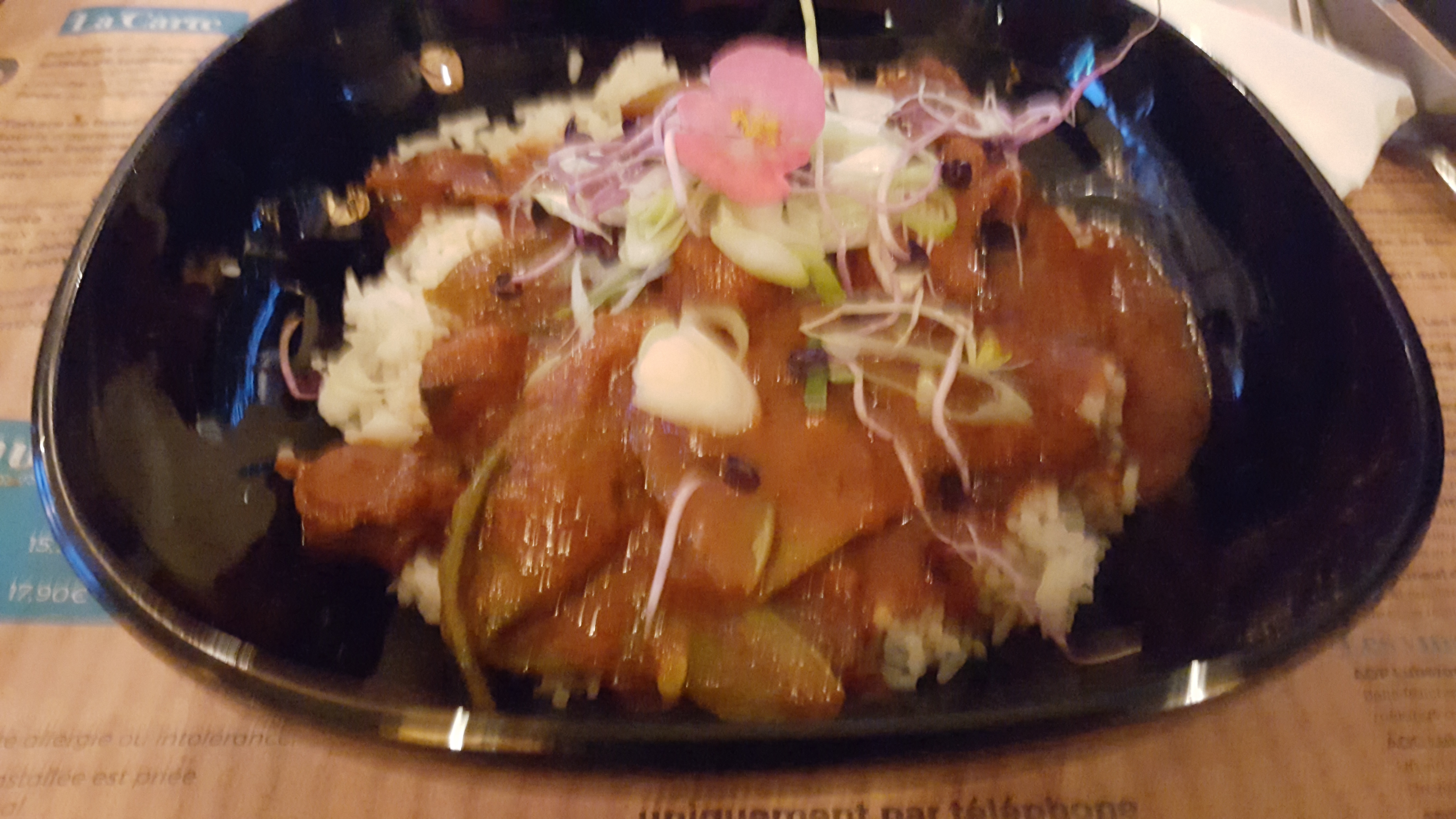 Je n'ai pas pu manger mon plat: poitrine de porc laqué au miel, je sais que le porc est une viande grasse mais là, il y avait 90% de gras. Vraiment pas bon.