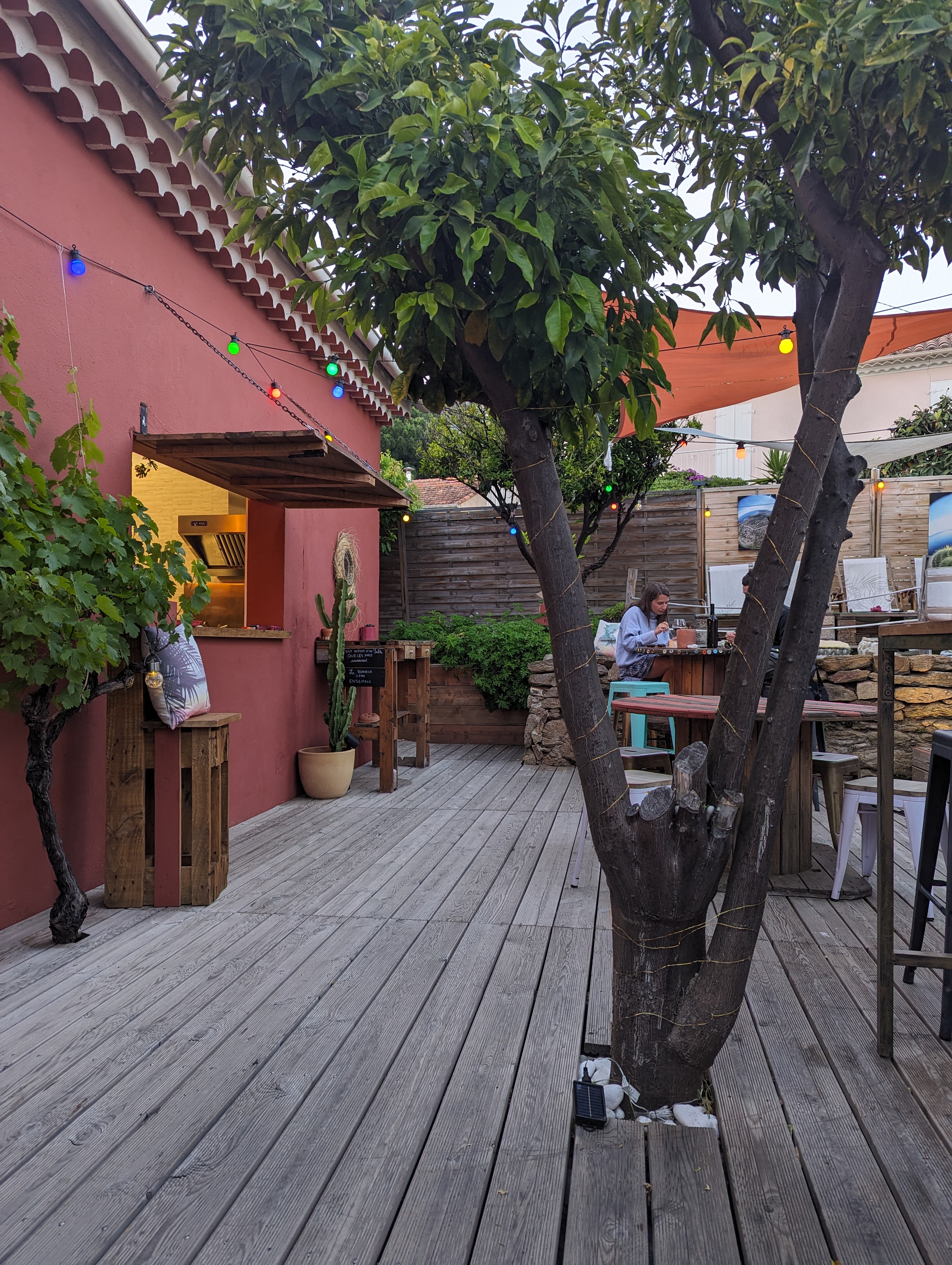 Il ne faut pas se fier à l'extérieur et oser franchir l'entrée pour découvrir un petit jardin secret et ombragé, des patrons qui maitrisent leurs sourcings mais pas leur bonne humeur 🤗 et si vous regardez bien vous verrez la mer où vous ne l’attendez pas 😉 parfait pour un apero gourmand. Allez y sans hésiter 🍹