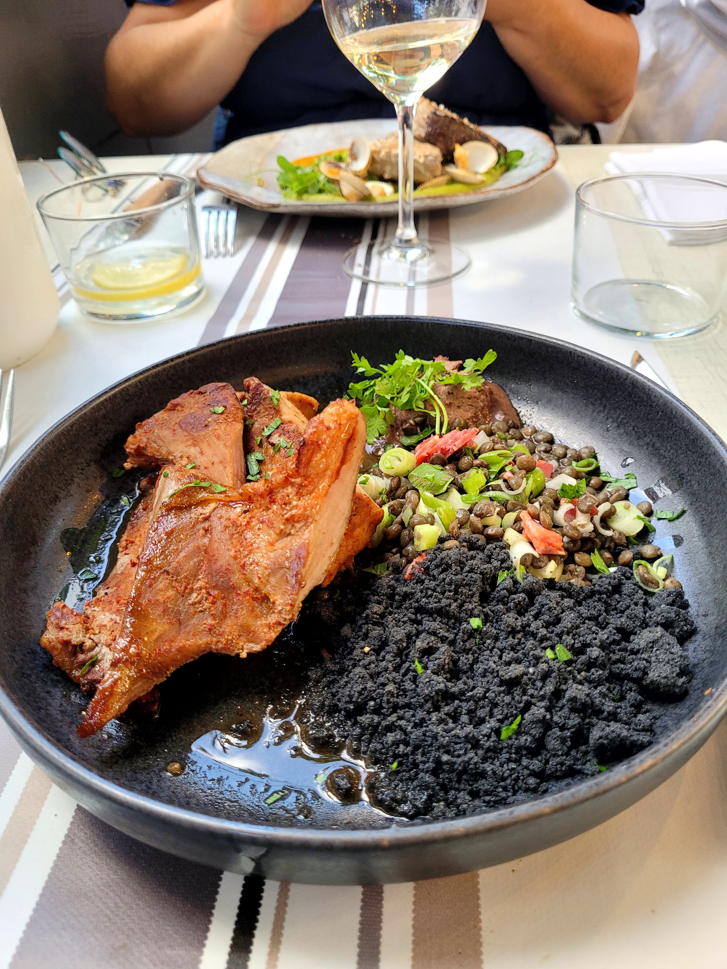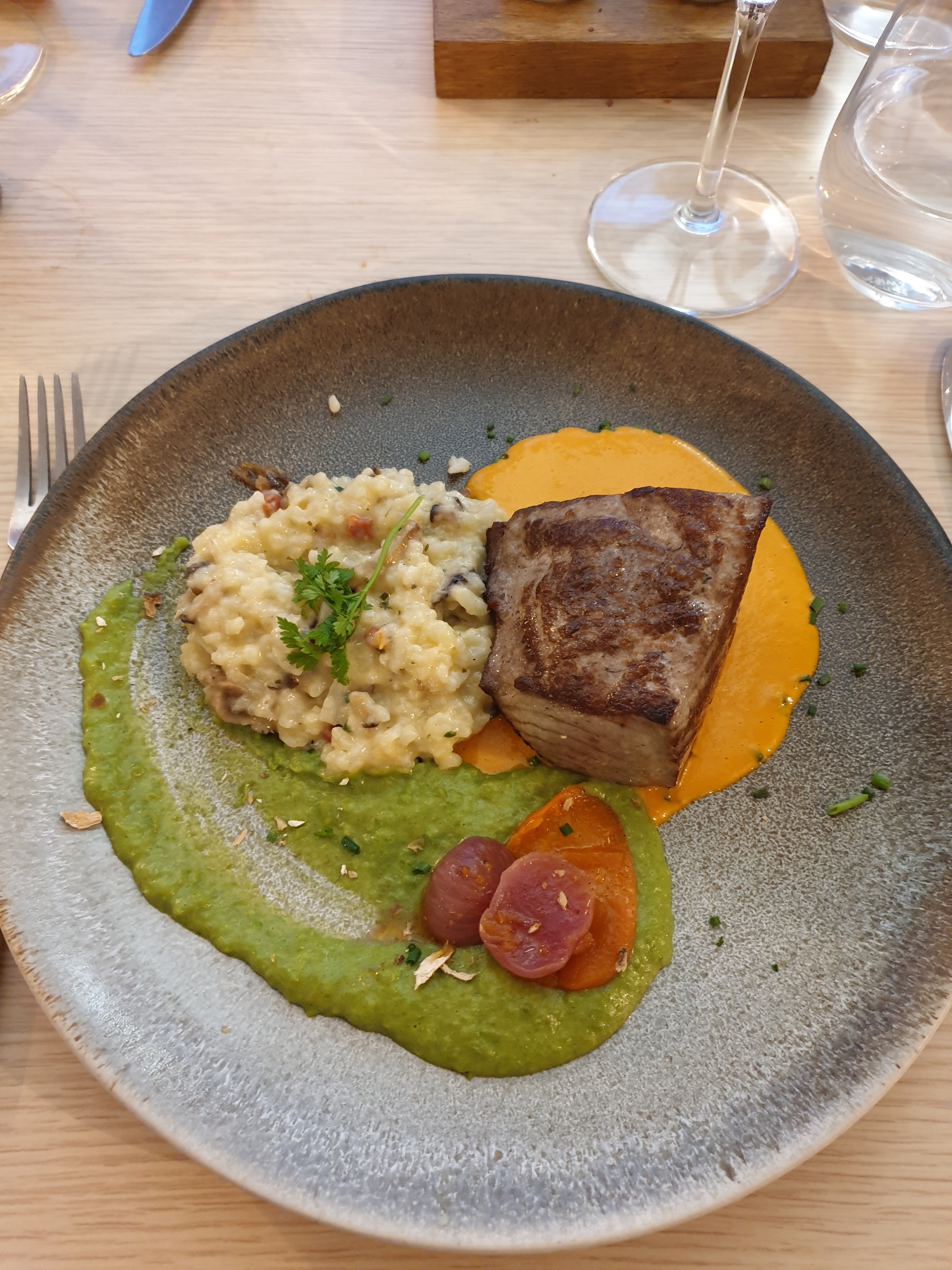 Restaurant et personnel très accueillant, conseil très avisé sur les vins associés aux plats. Terrasses très agréable et reposante et repas d'excellence. Un régal que ce soit pour les yeux ou les papilles. Un réel délice culinaire. Allez y sans aucune hésitation.