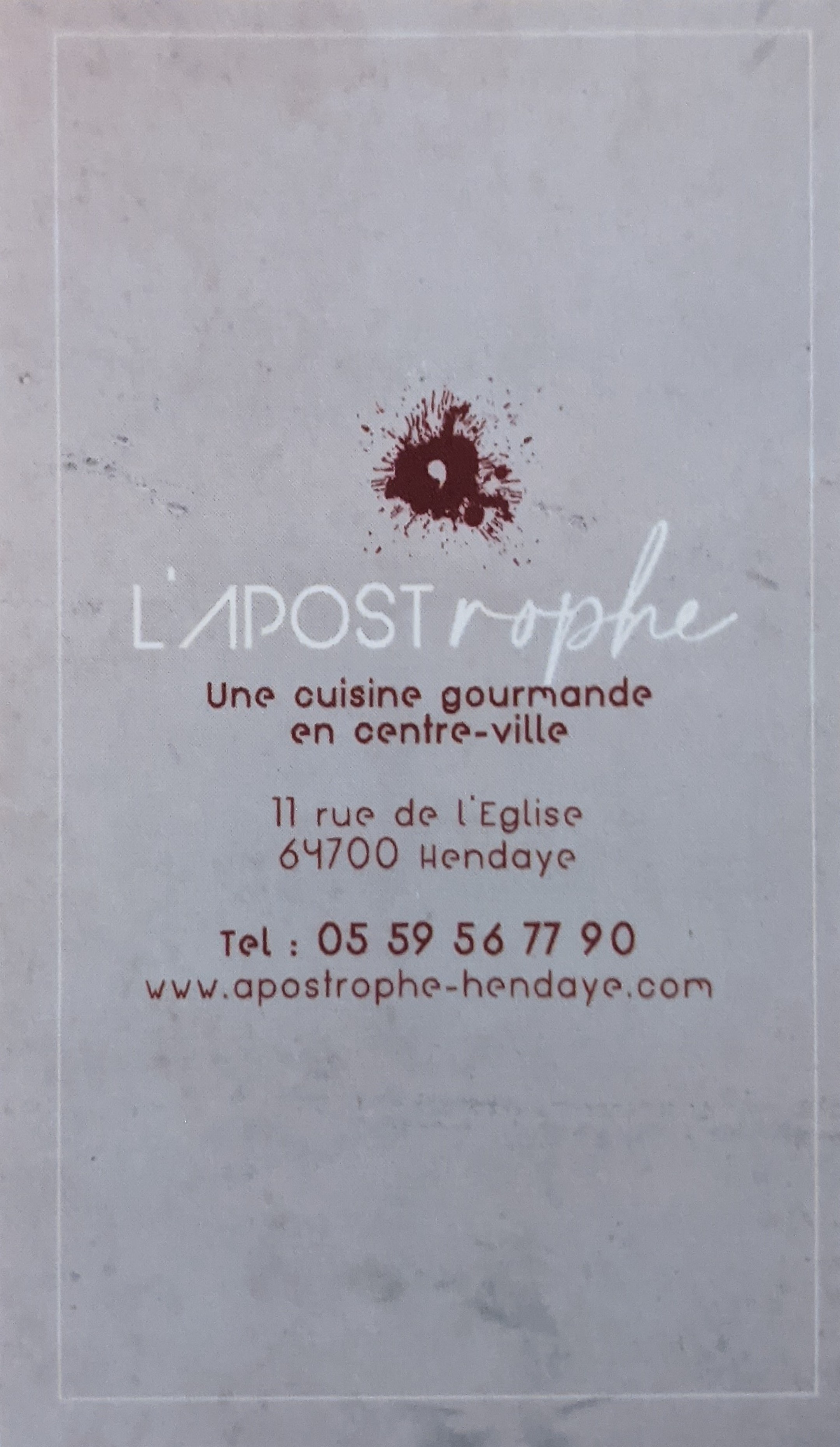 Voici toutes les informations sur le Restaurant français L'APOSTrophe Cuisine et Comptoir | Restaurant Hendaye qui ce trouve au 11 Rue de l'Église, 64700 Hendaye (64). Sur cette fiche vous trouverez les photos, l'adresse, les horaires d'ouverture, le numero de téléphone et les avis clients.Vous pouvez églement rédiger un avis si vous le souhaitez en bas de page.
