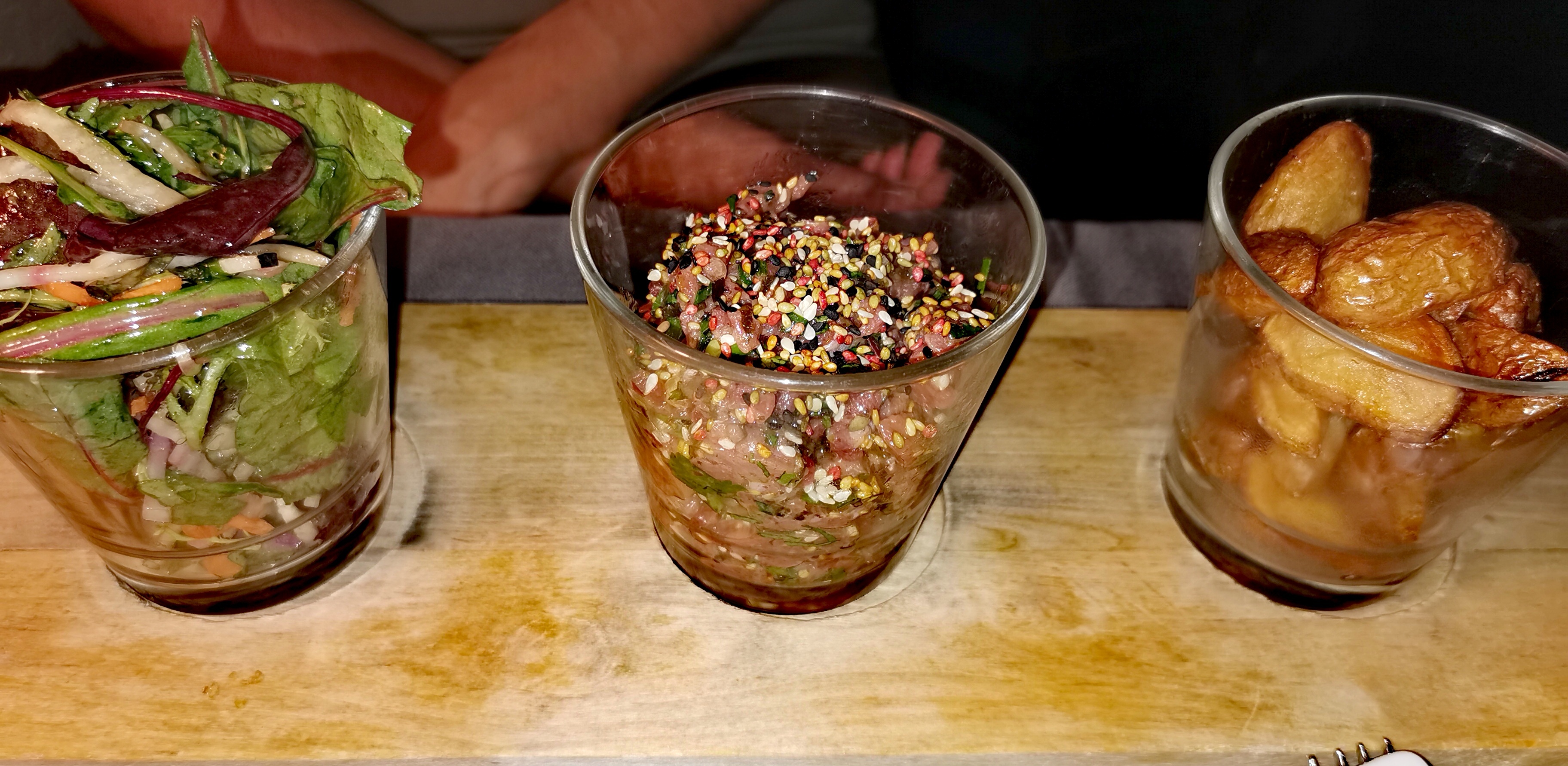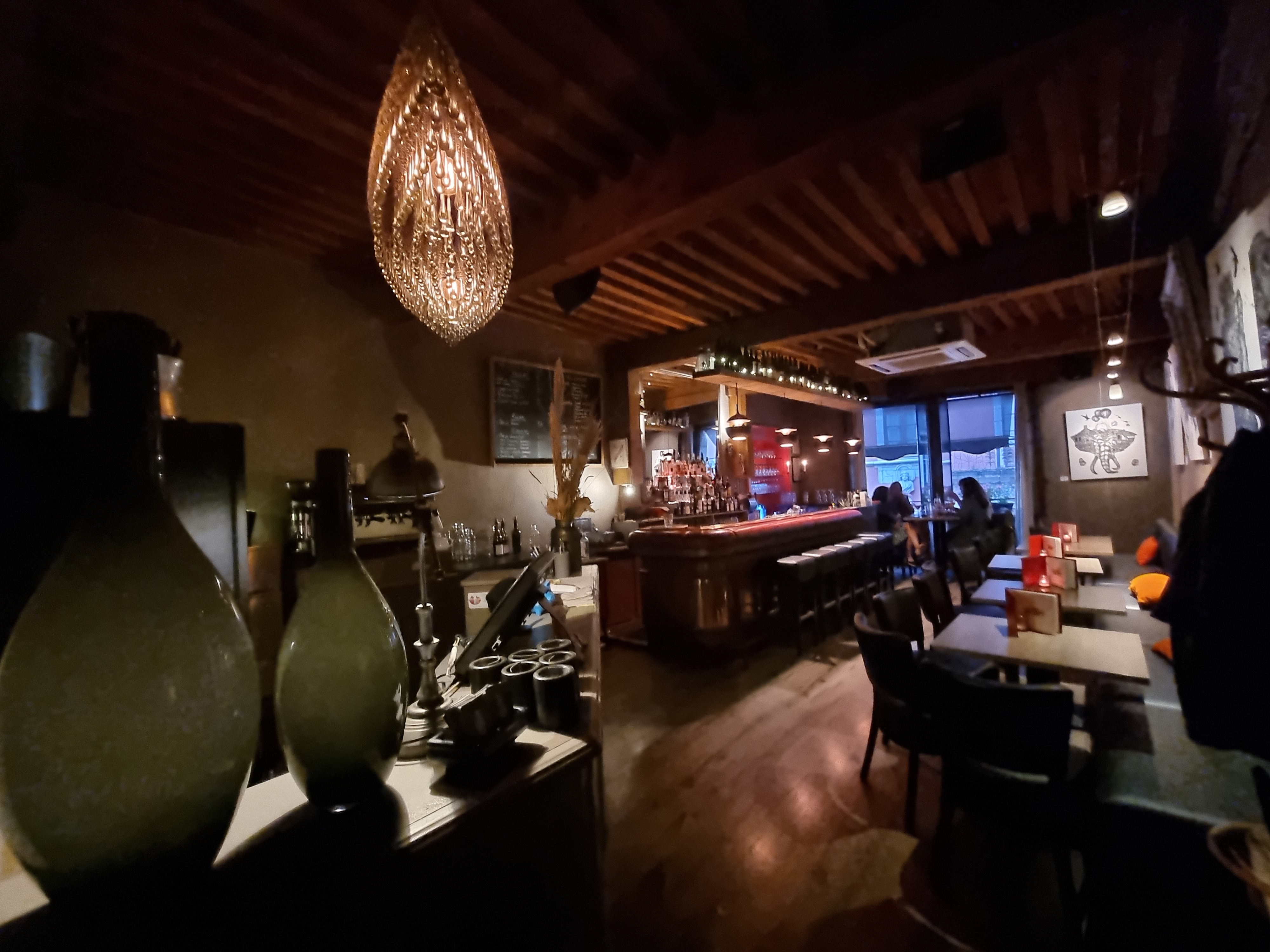 Je parlerai uniquement de la partie bar car nous n’avons pas mangé ici juste bu un verre. Endroit sympa et service également. Mais alors on a bu un seul verre et on est reparti à cause de la fumée qui vous prend au nez dès le moment où l’on pousse la porte d’entrée. On y voit direct la brume et l’odeur de la cuisine ouverte avec cuisson à la braise. Imaginez-vous faire un barbecue au charbon dans votre petite cuisine à la maison sans ventilation et sans vitres ouvertes !!! C’est étouffant et tous nos vêtements S sentaient la braise. Je plains vraiment les cuisiniers qui travaillent dans cette minuscule cuisine dans la fumée de cuisson sans aération appropriée. C’est vraiment dommage car l’endroit est sympa mais irrespirable je n’ai jamais vu ça et mes amies également et nous étions 6 à avoir le même avis concernant la fumée qui se propage partout dans la partie bar et entrée. Investissez dans une ventilation svp pour le bien de vos clients et du personnel. Mis à part ça les serveurs sont sympas et souriants ( force à eux dans ses conditions)