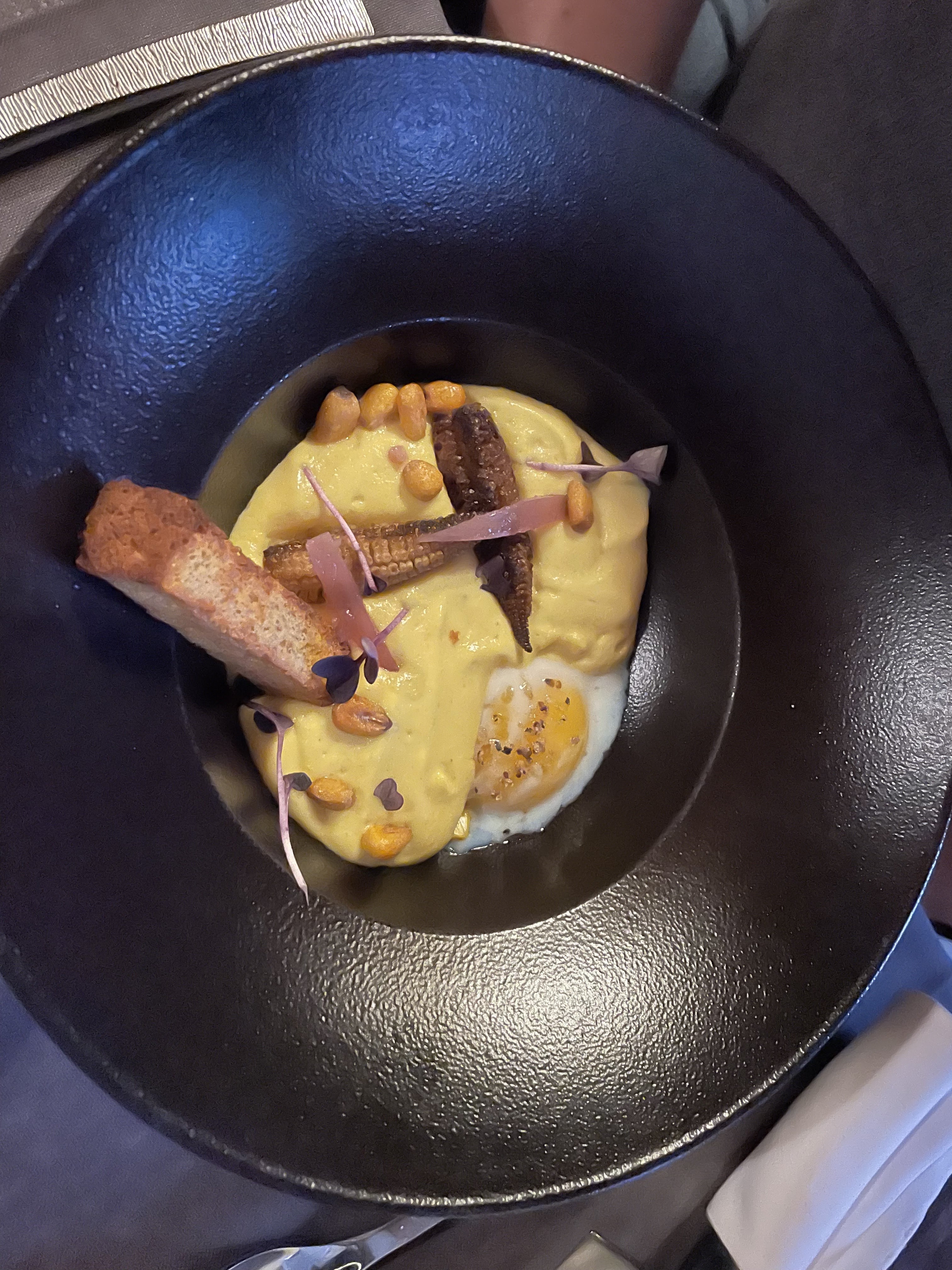 Nourriture exquise. Je crois que c'est de saison car le menu était petit. Cependant, chaque article est bien pensé et unique. Une carte des vins bien sélectionnée. Un ami local m'a recommandé l'endroit et je n'ai pas été déçu ! Une agréable surprise. L'endroit est au deuxième étage, pas directement au rez-de-chaussée.